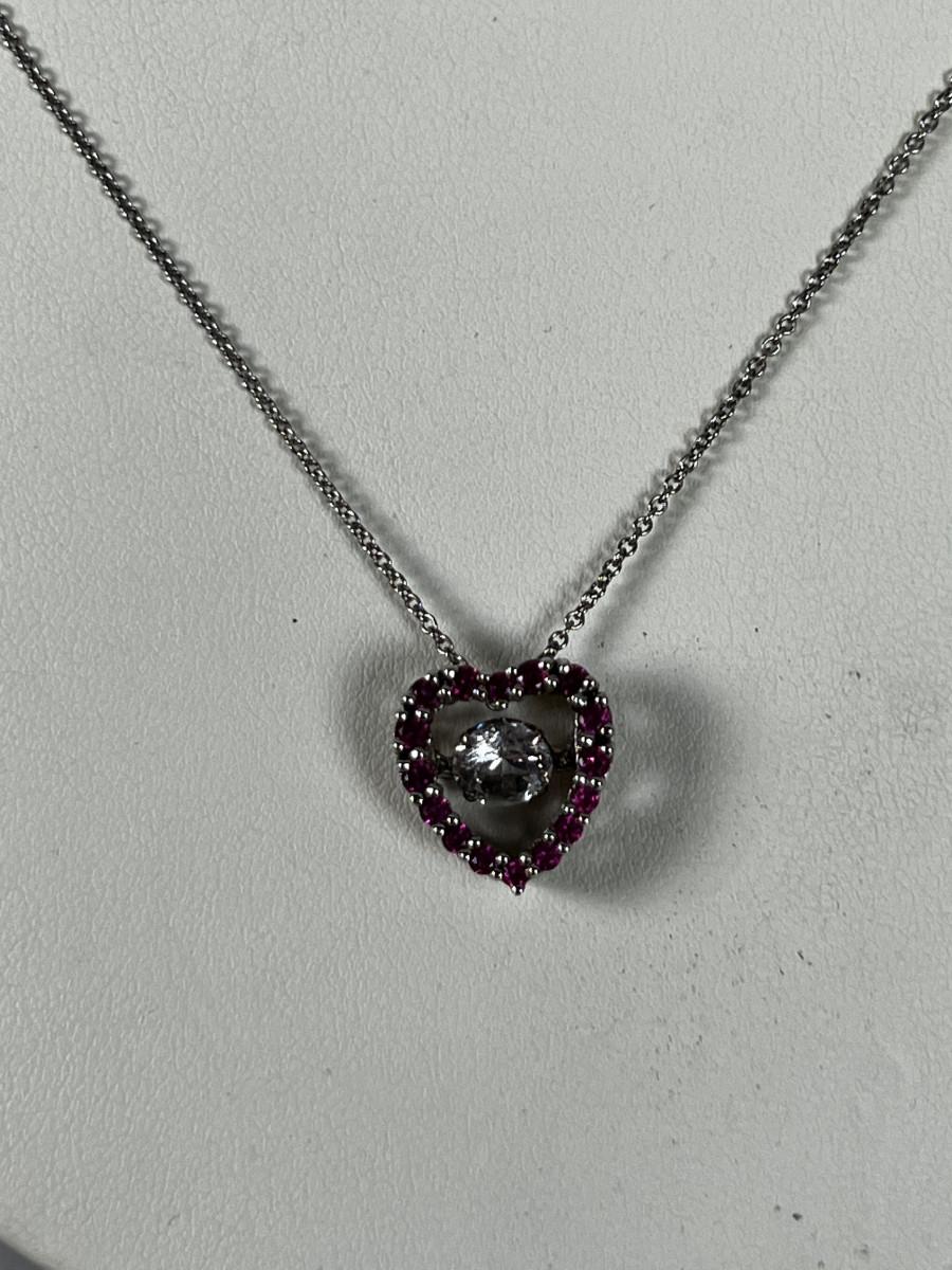 925 Heart Shaped Pendant Small Red (Ruby maybe?) stones