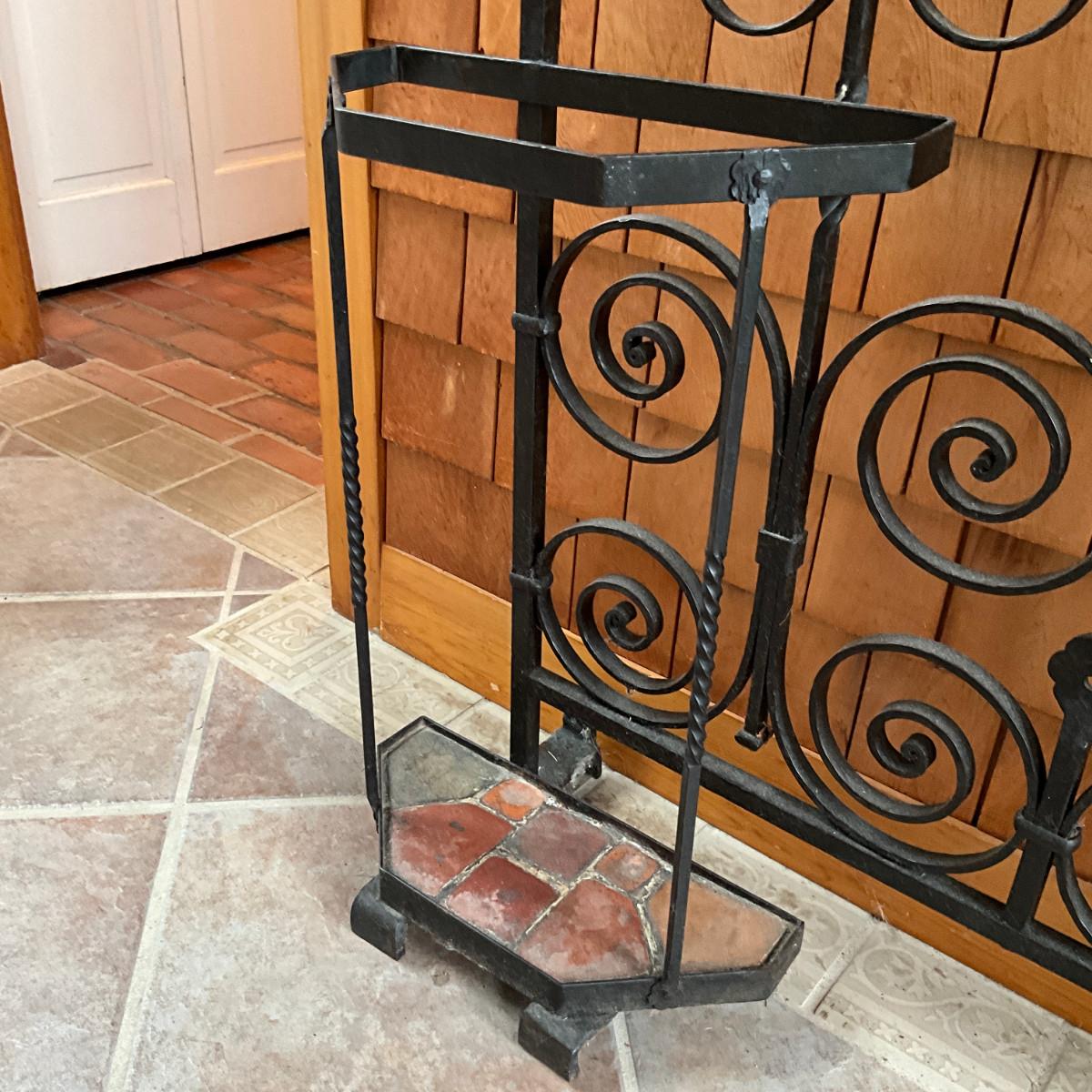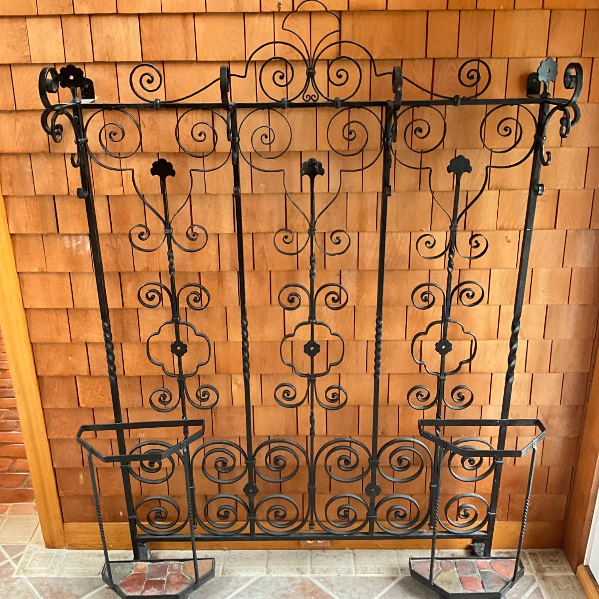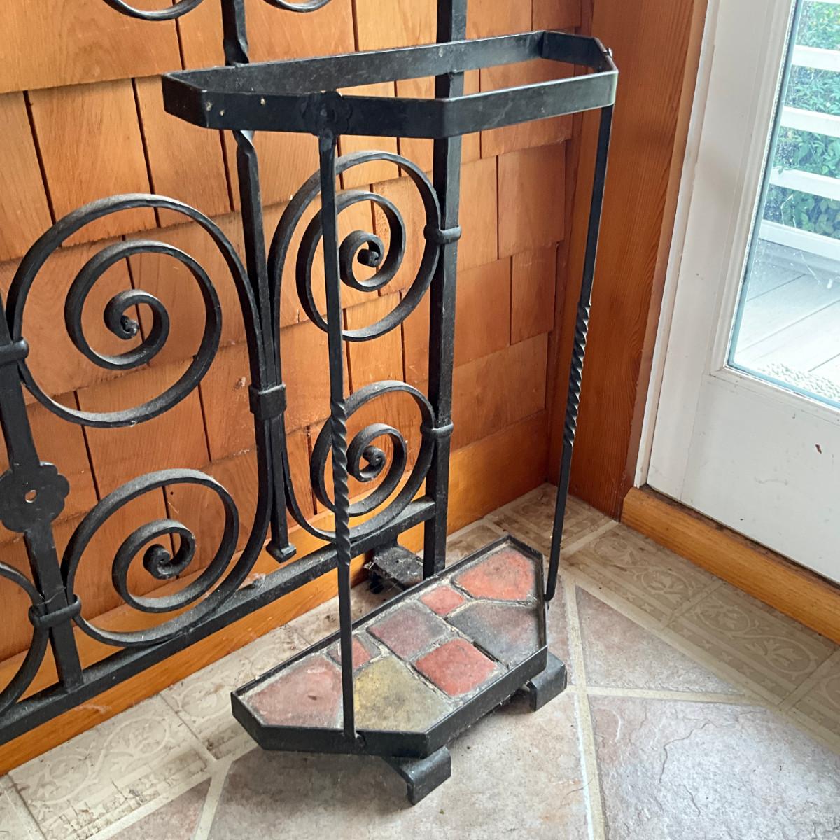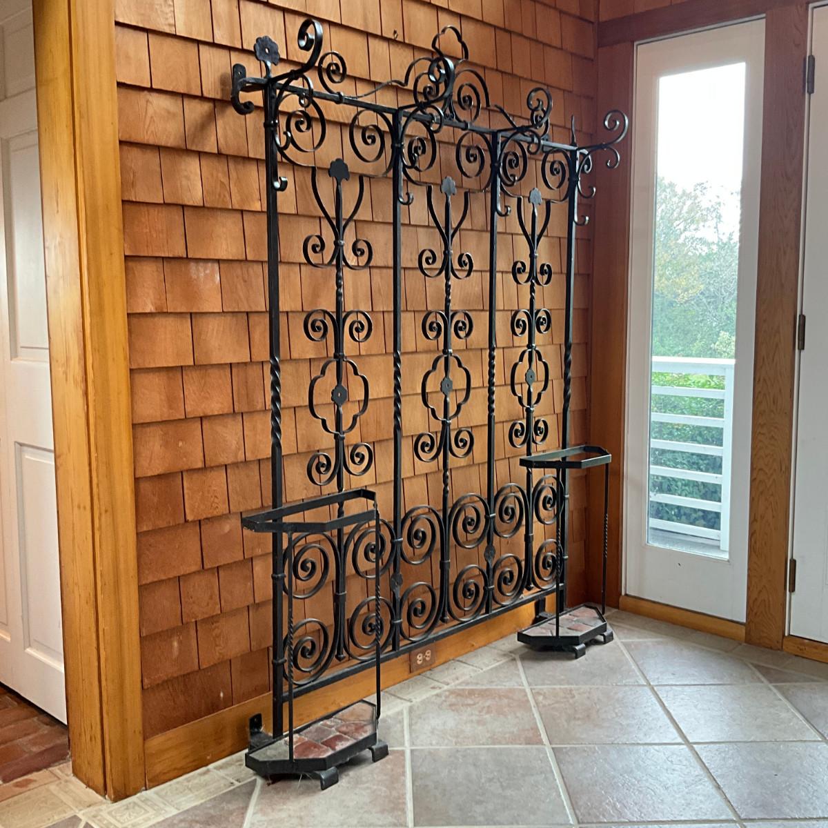 935 Large Antique Wrought Iron Hall Tree Coat Rack