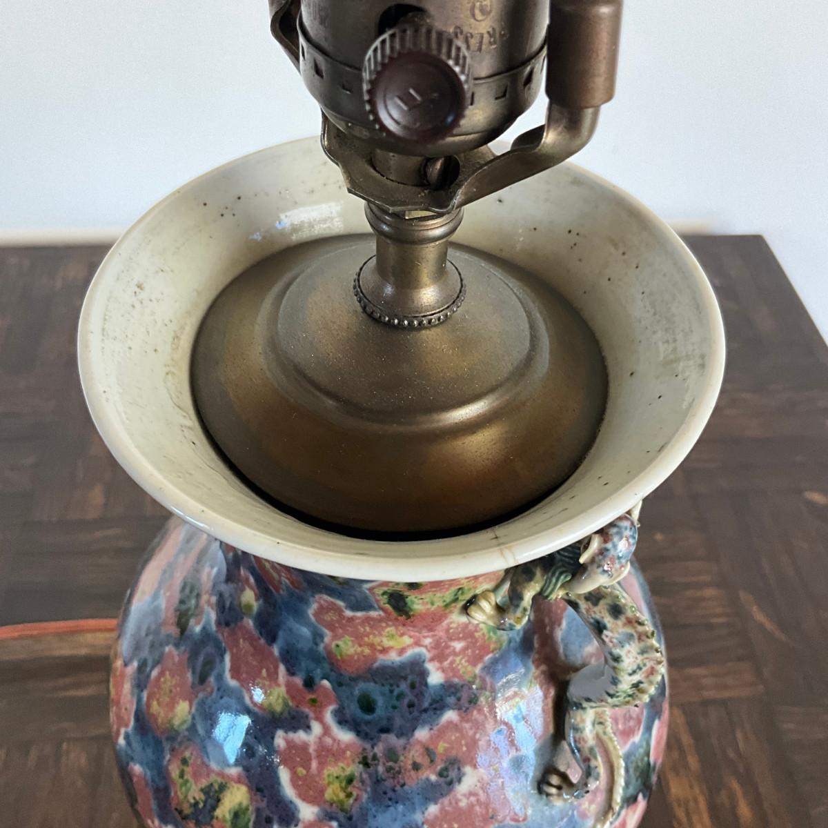 956 Vintage Japanese Satuma Table Lamp With Dragon Handles