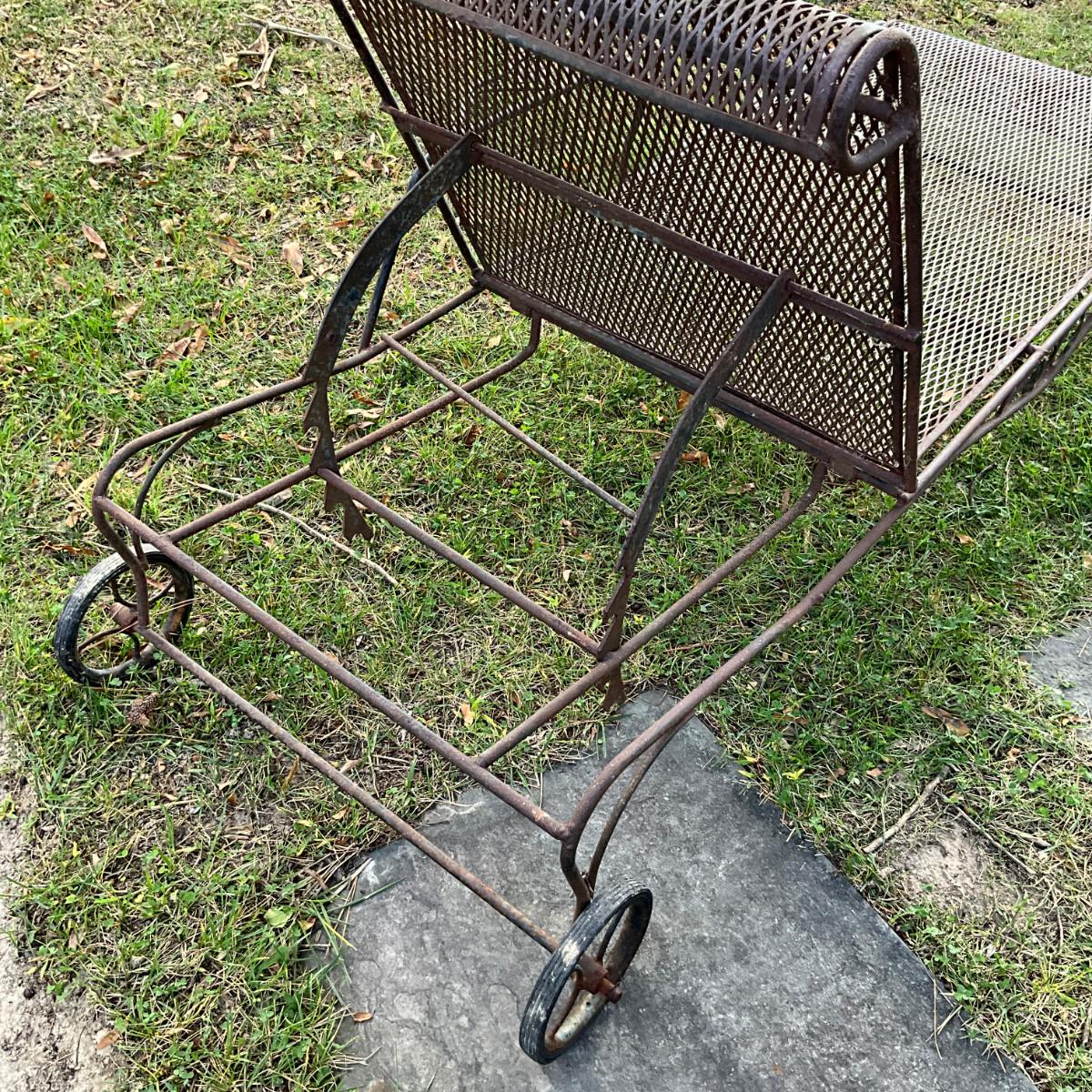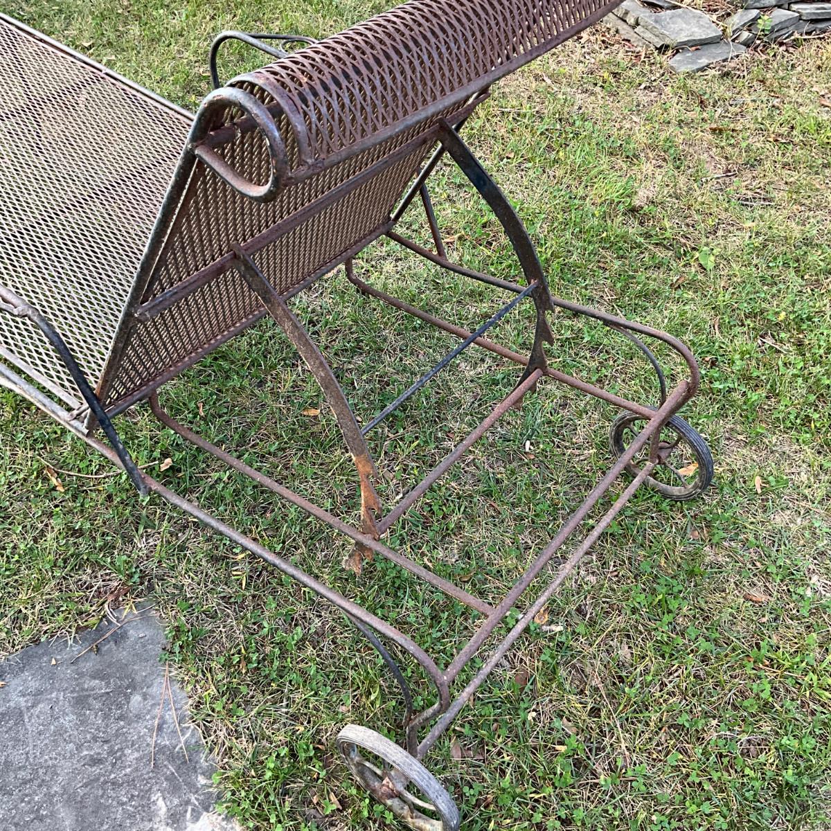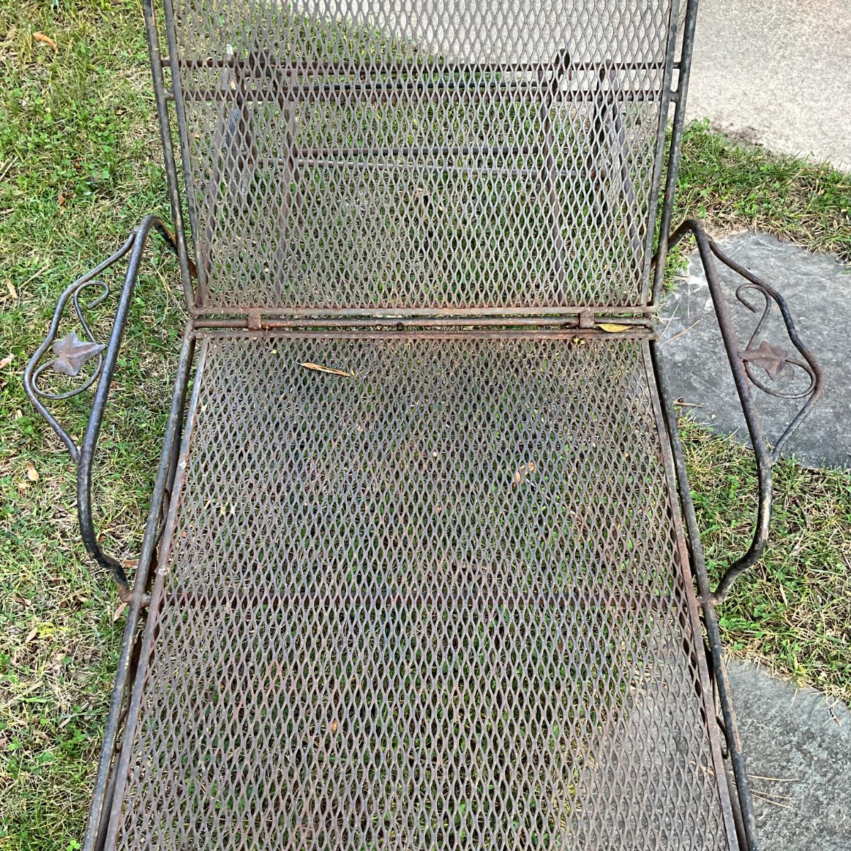 986 Pair Of Vintage Woodard Wrought Iron Chaise Lounge Chairs With Green Cushions