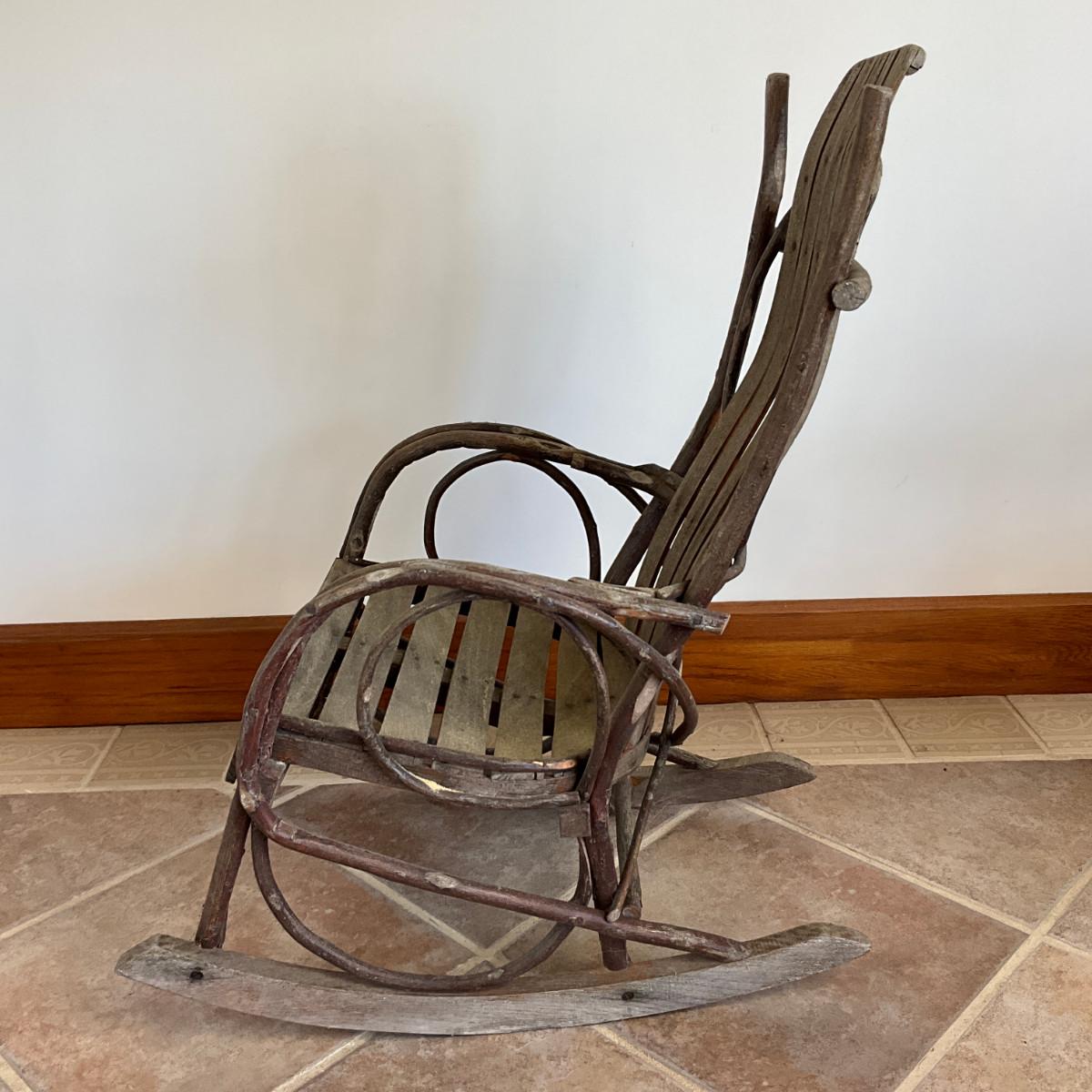 988 Antique Childs Wooden Adirondack Rocking Chair