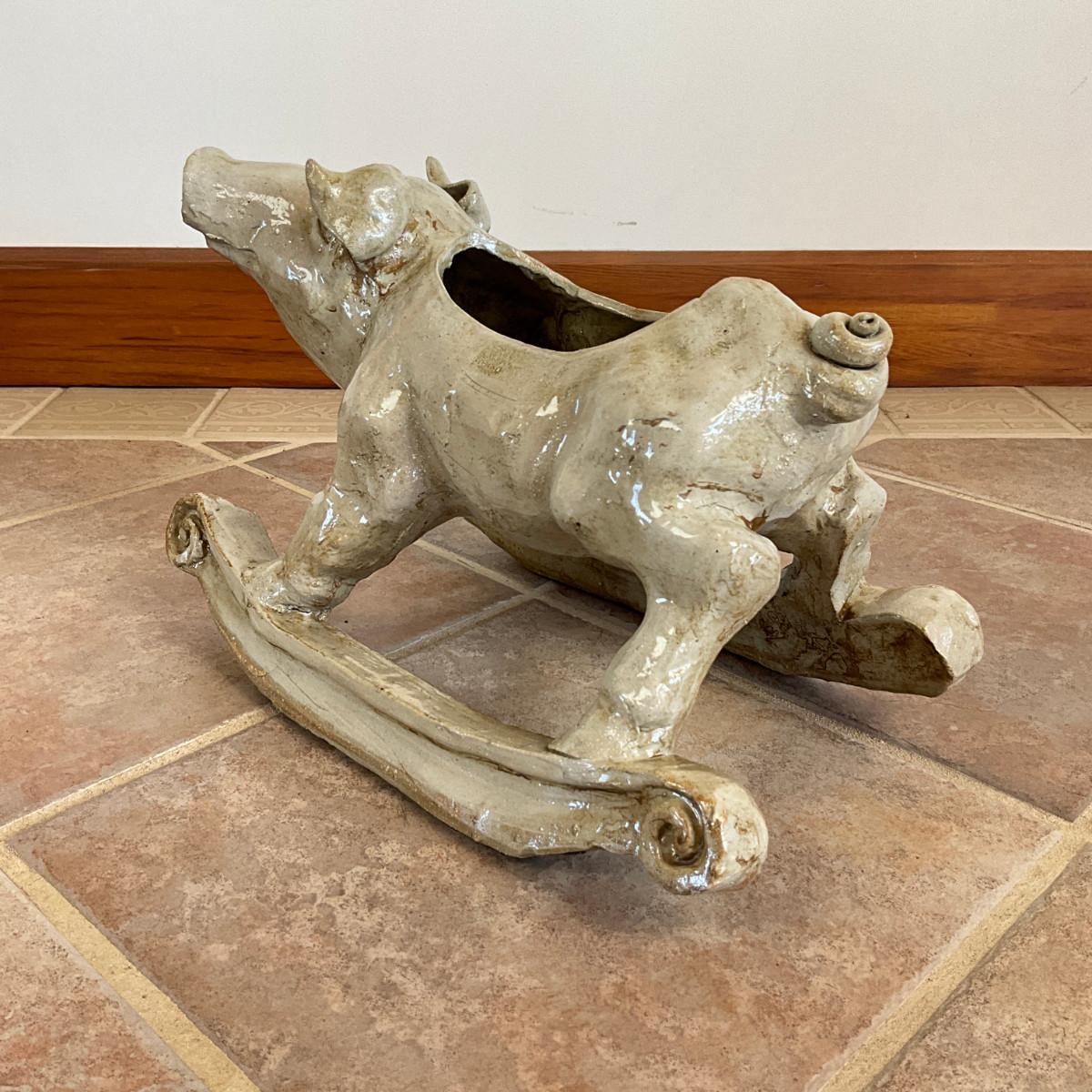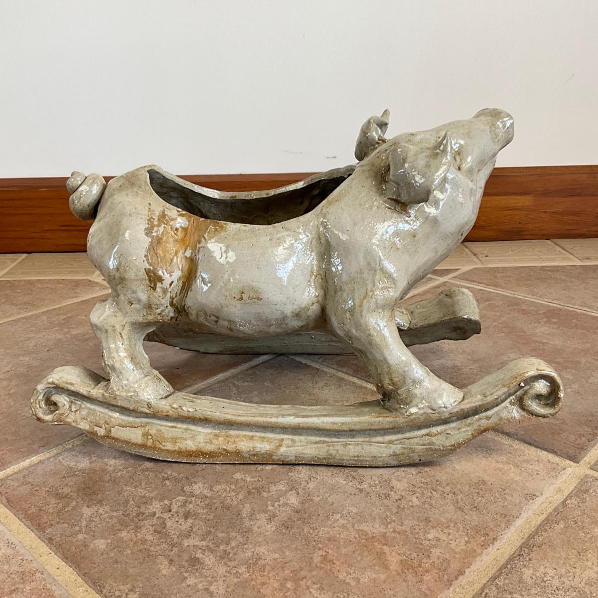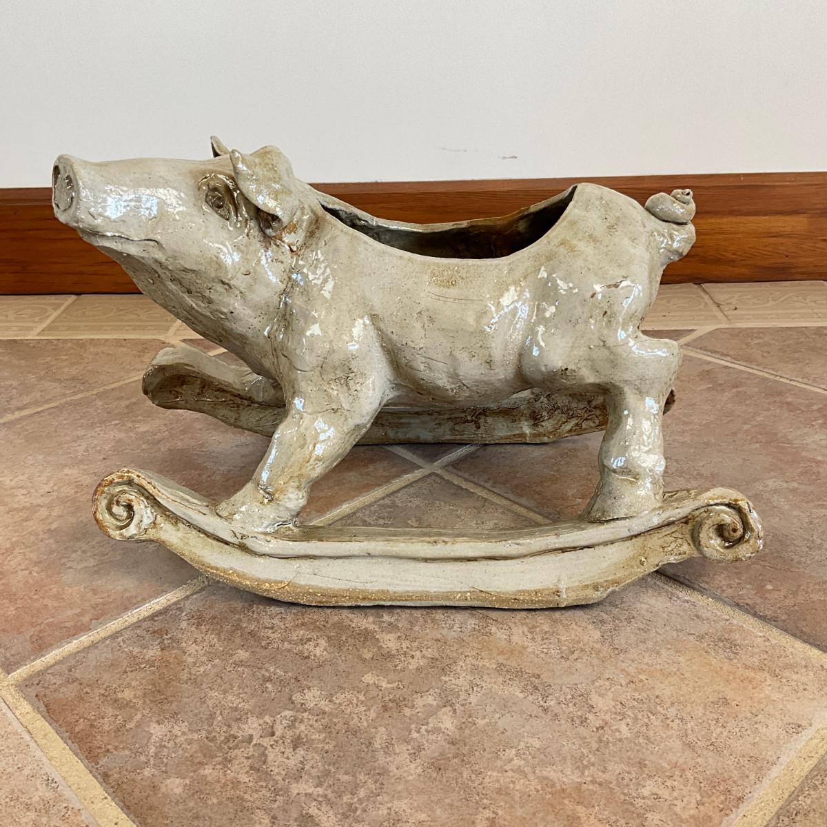 992 Jon Carlos Lopez 1976 Signed Ceramic Sculpture Rocking Pig Planter