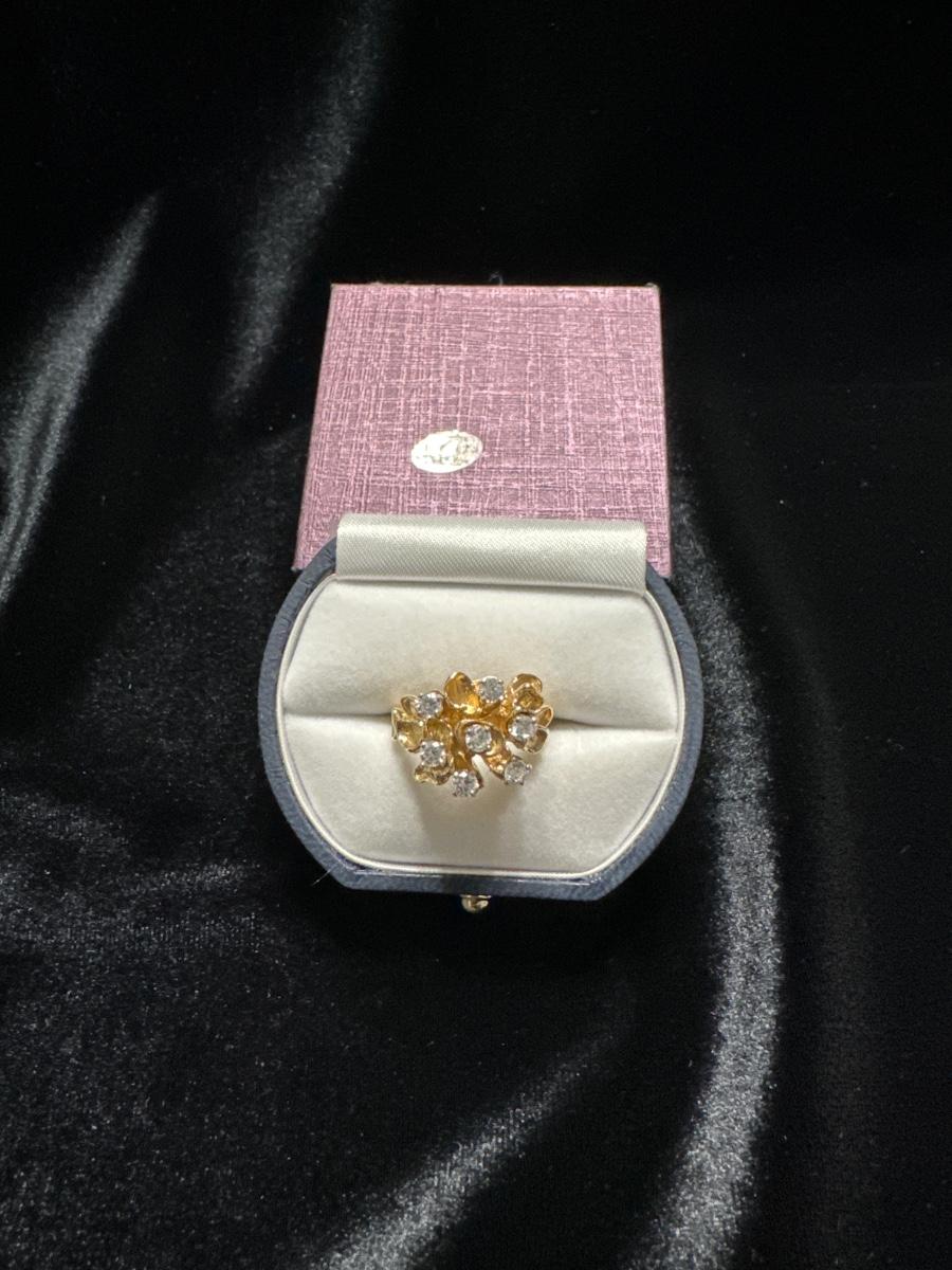 A ladies ring,cocktail style in 14kt gold. Set in the head are 7 full diamonds w/ the total weight of .75 carat.