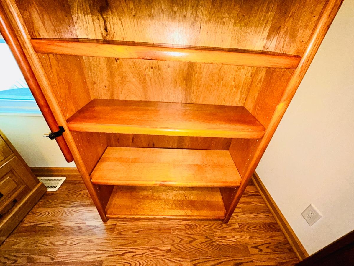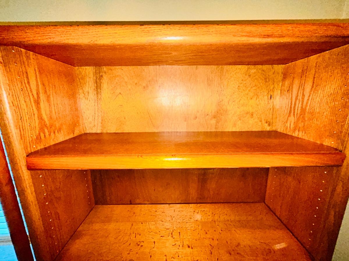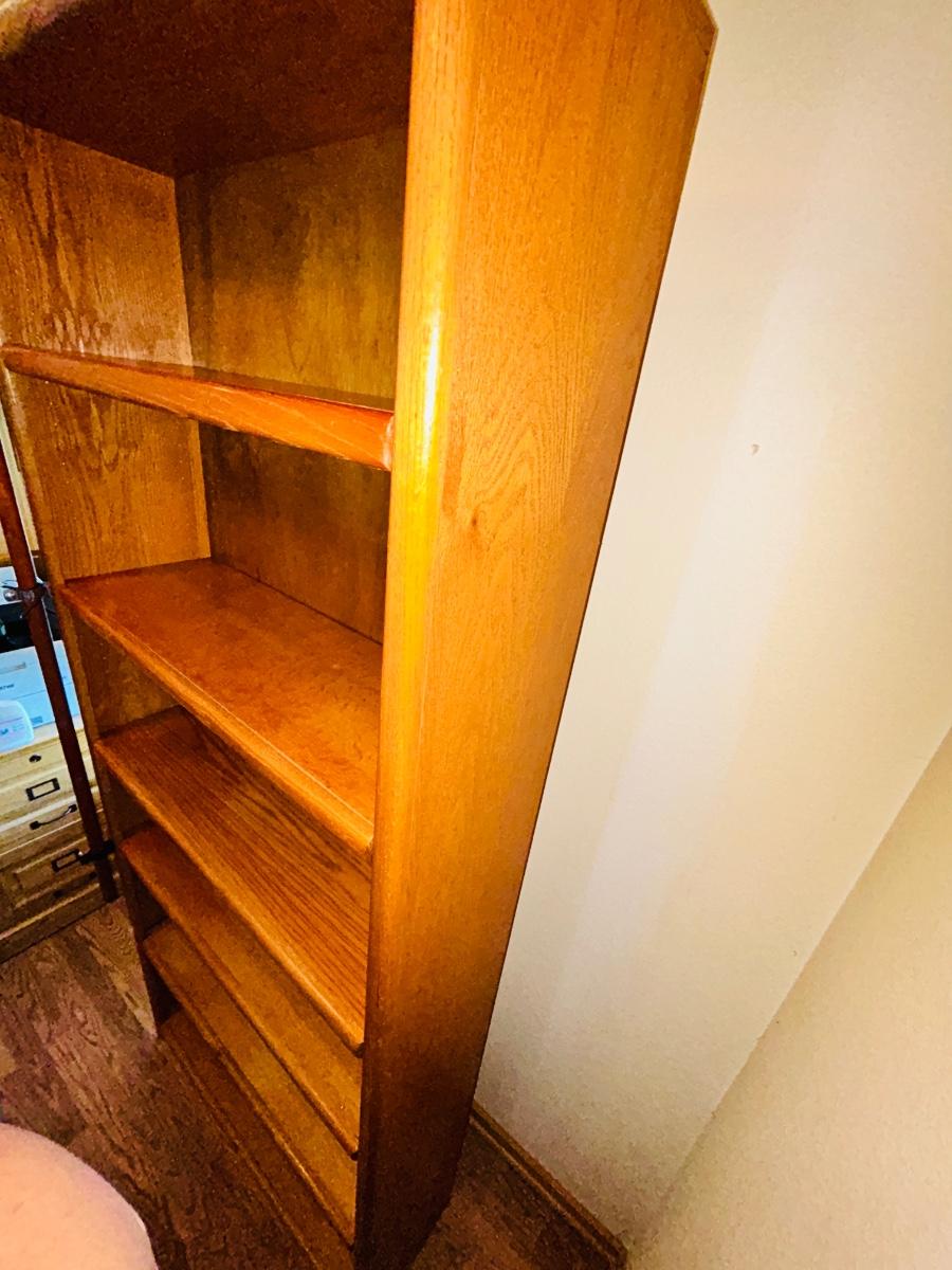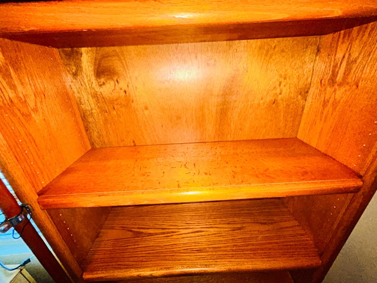 A LARGE OAK BOOKCASE WITH FLAG POLE