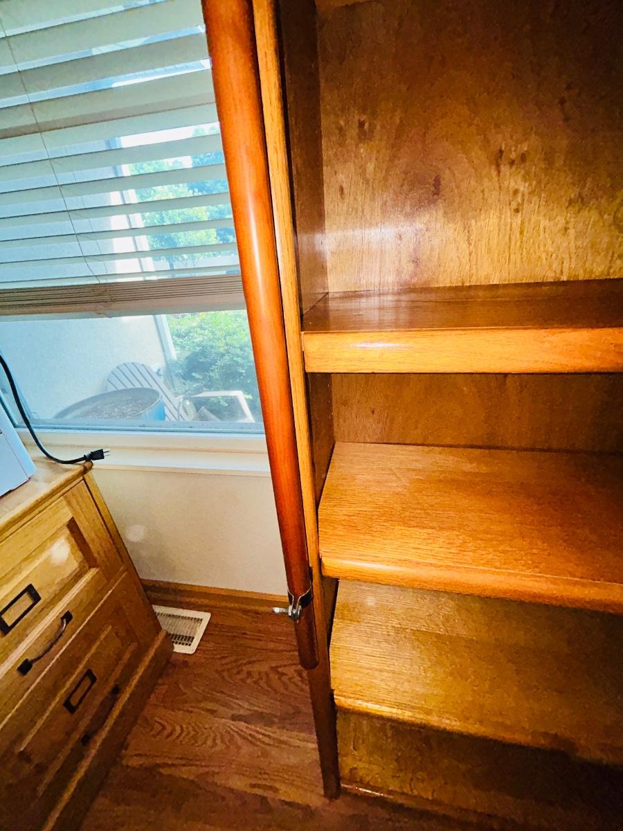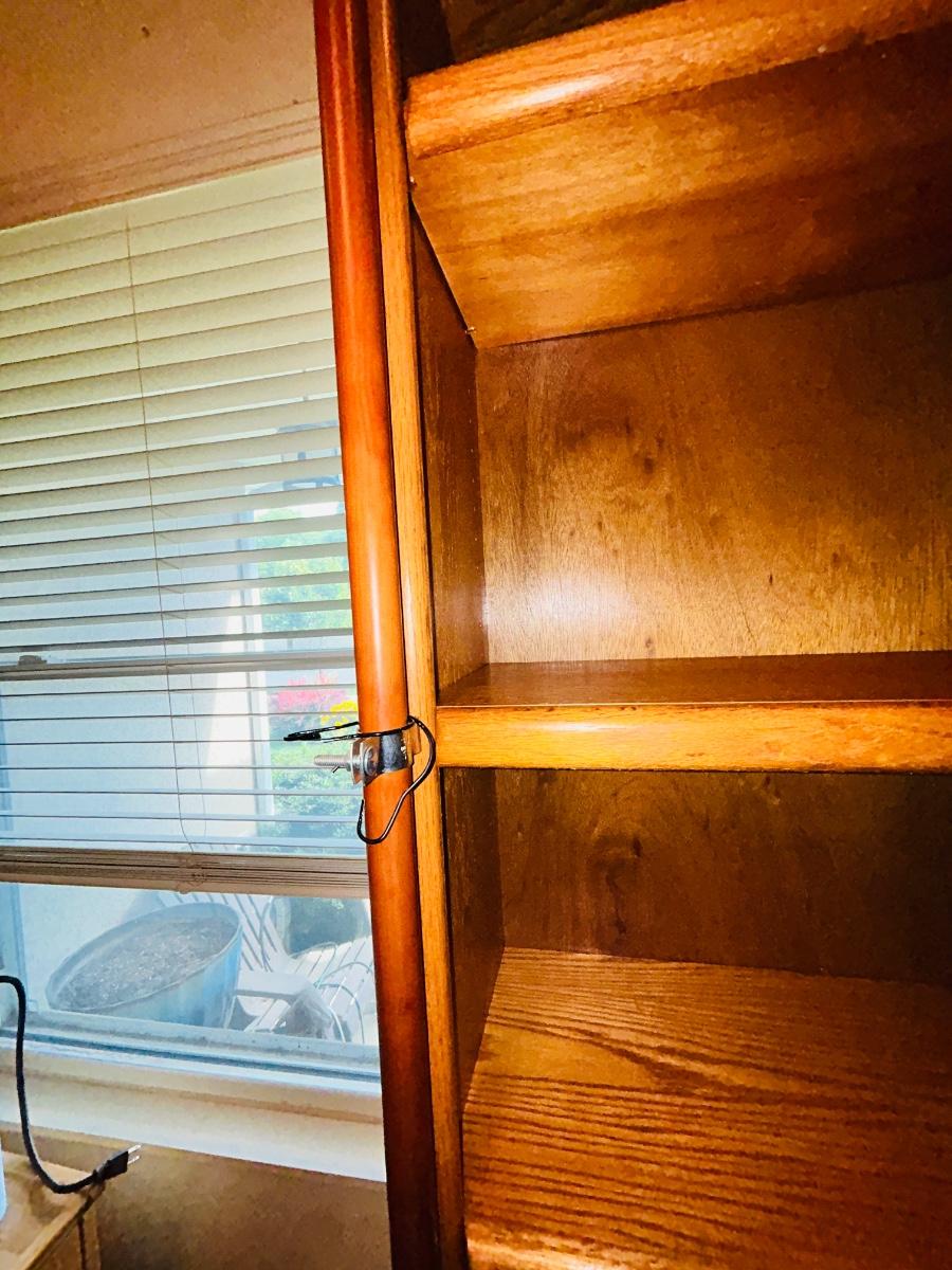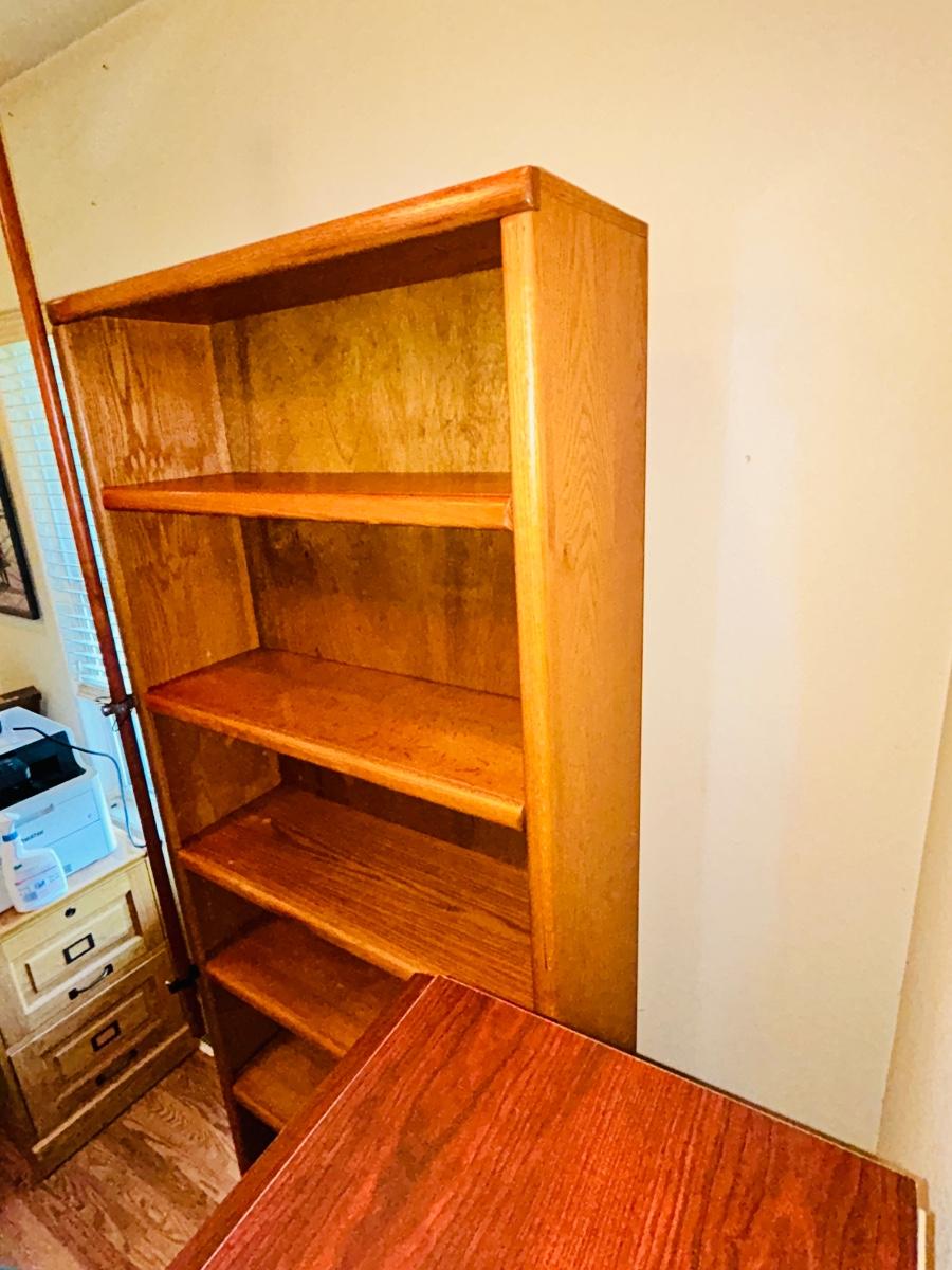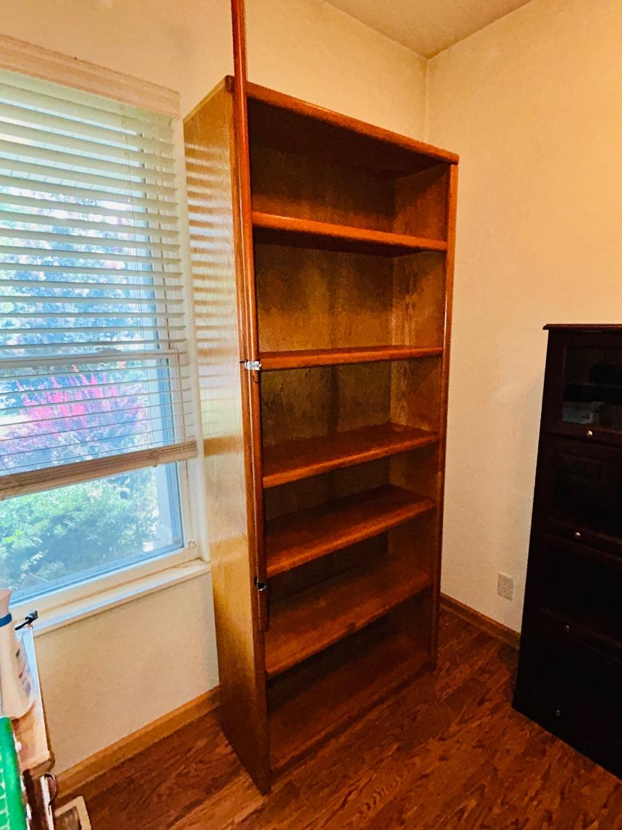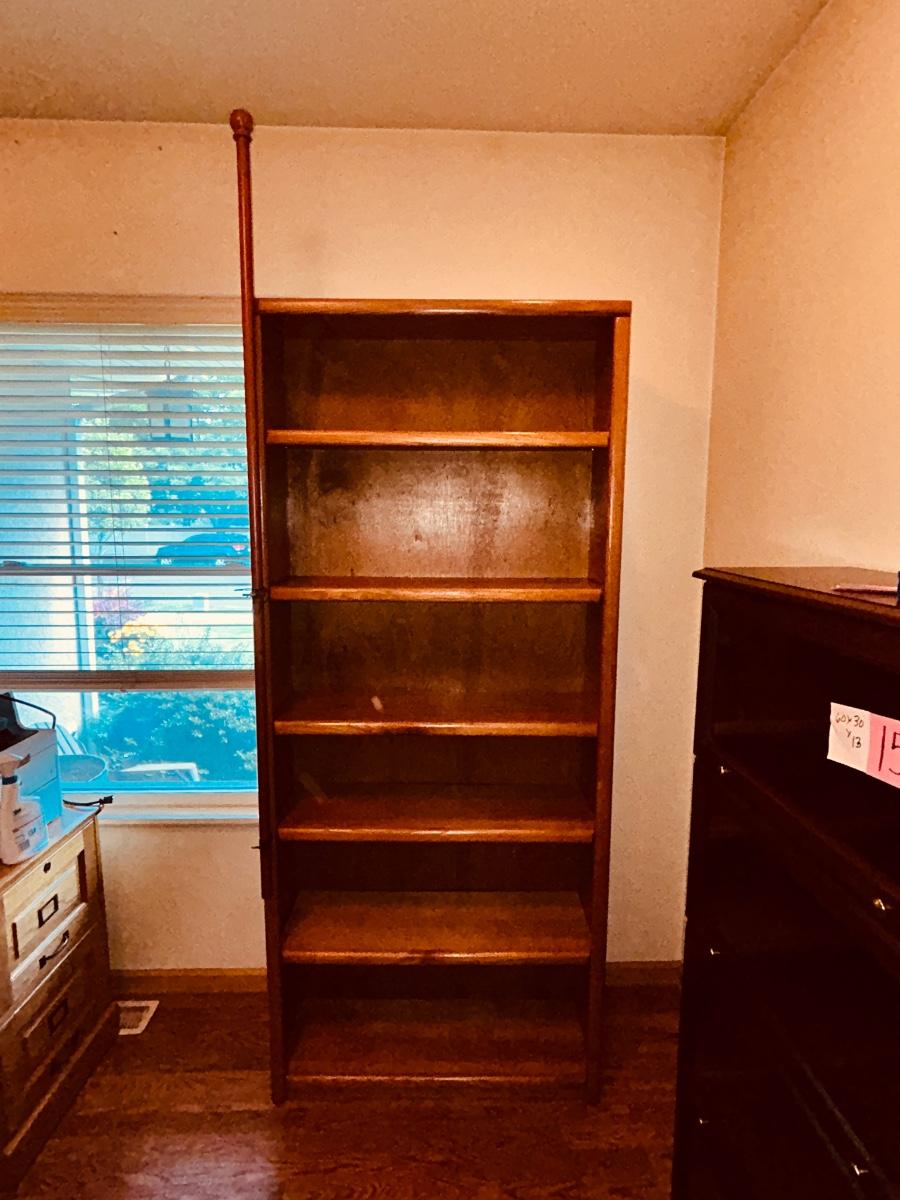 A LARGE OAK BOOKCASE WITH FLAG POLE