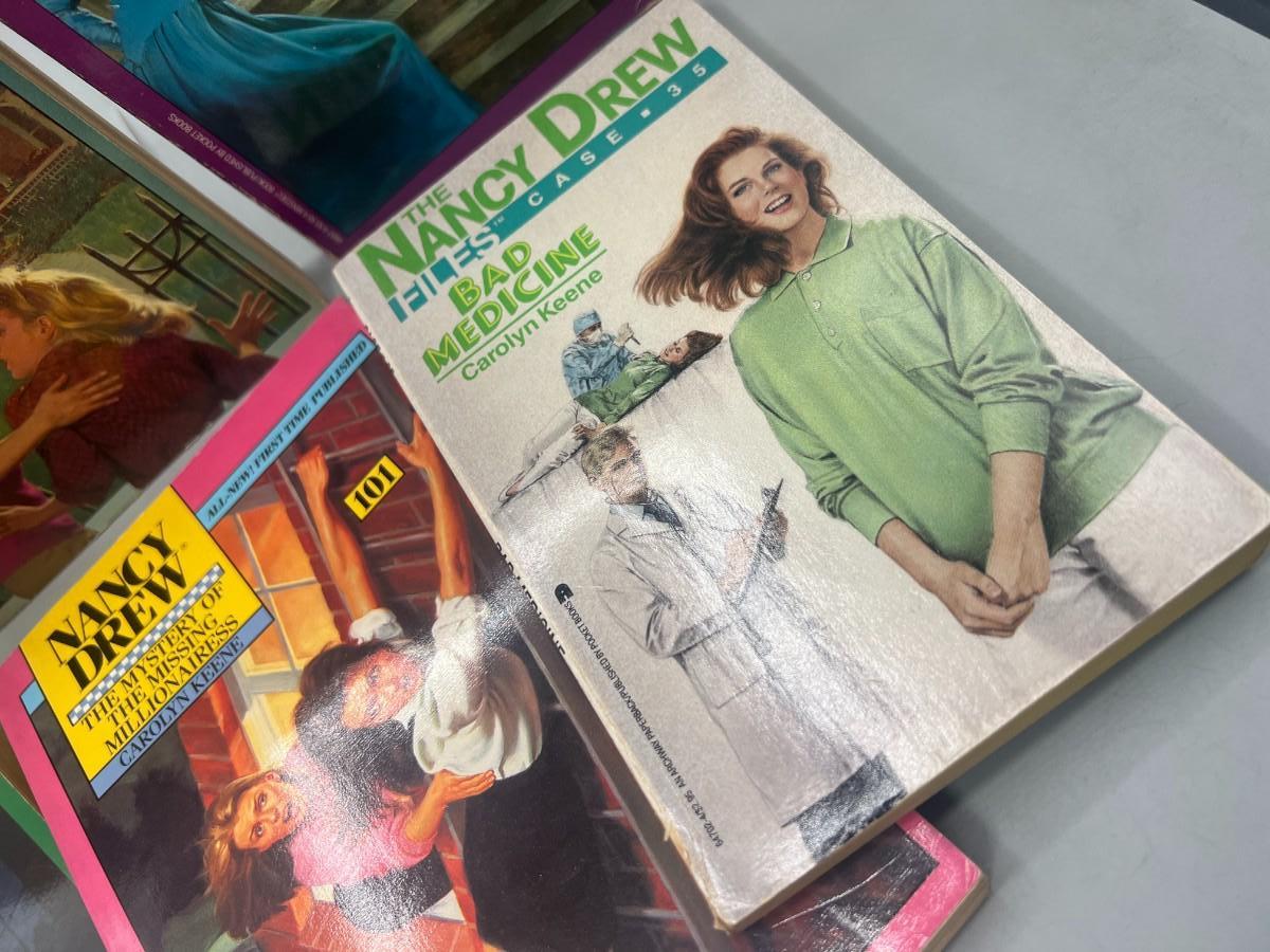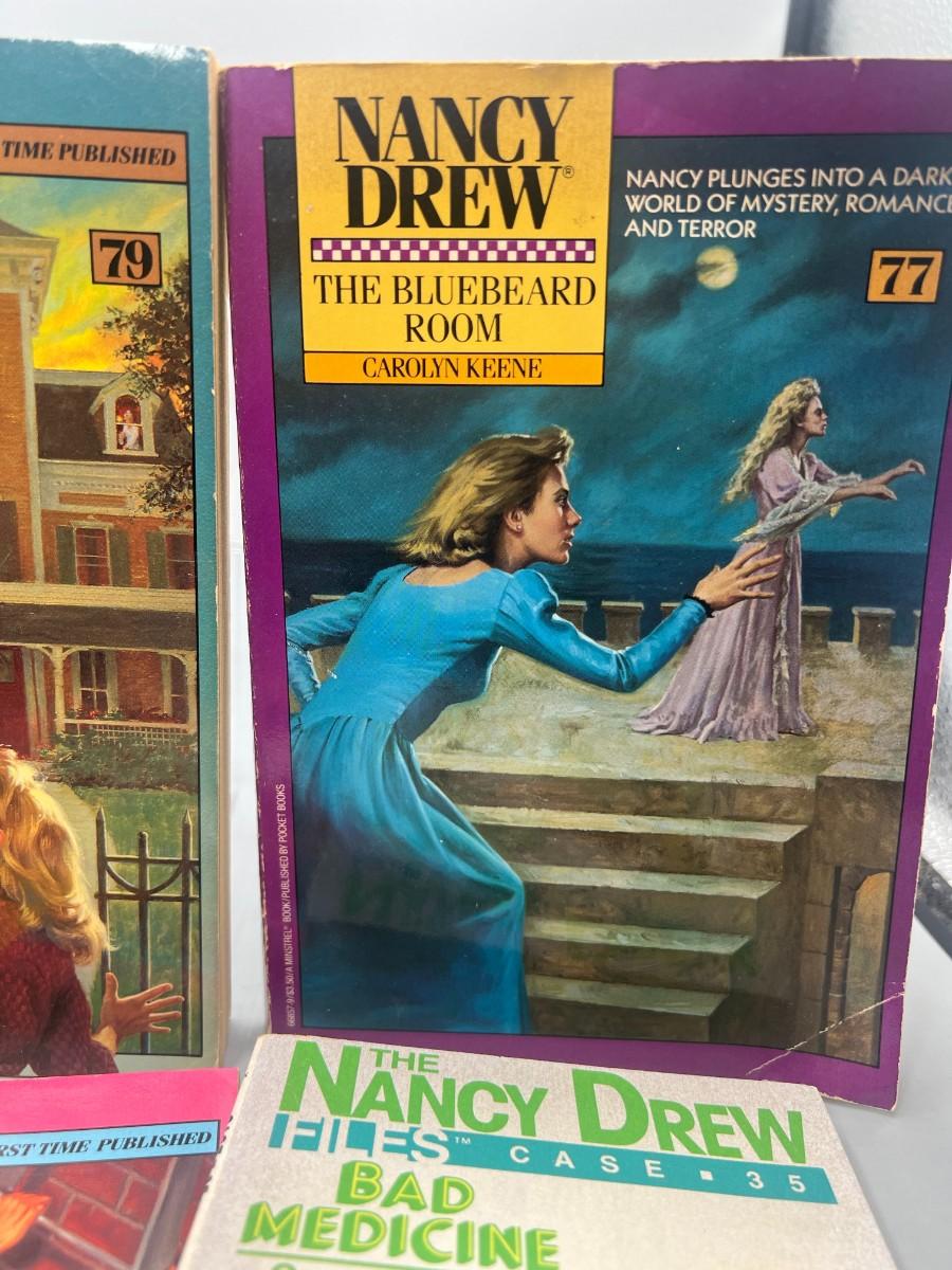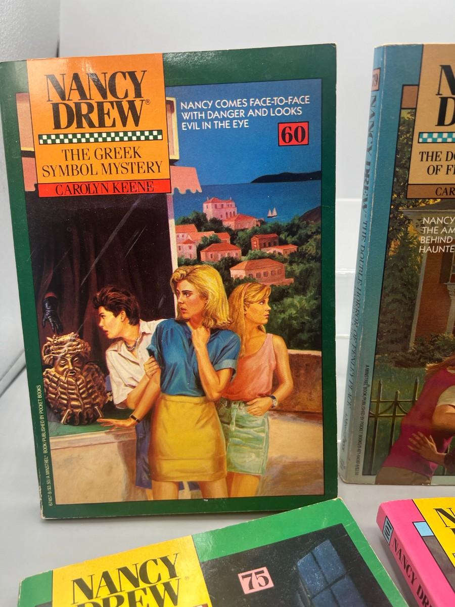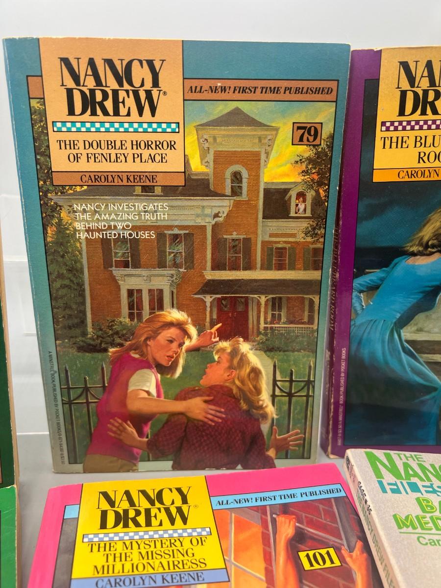 Set of 6 Nancy Drew Mysteries Young Adult Paperback Novel Books. Good previously read condition.