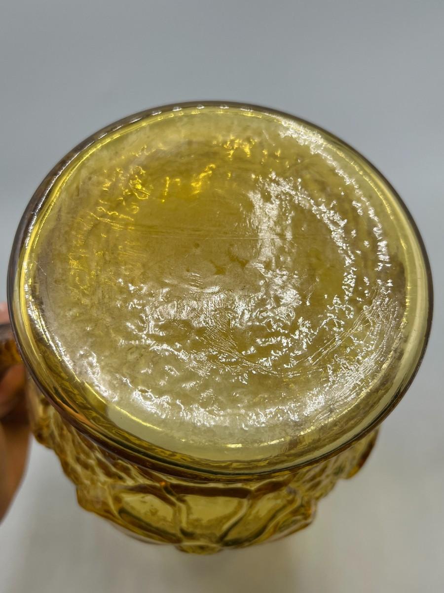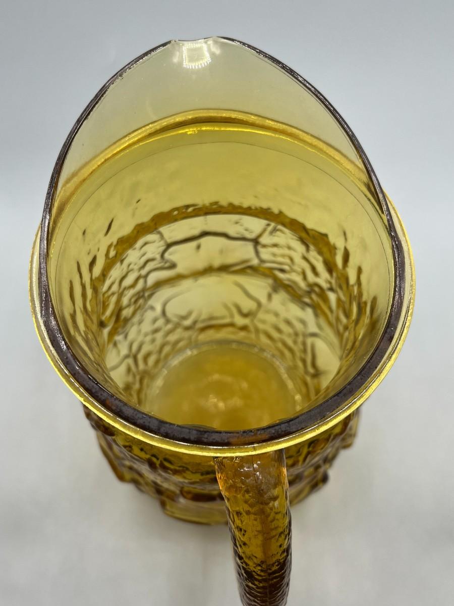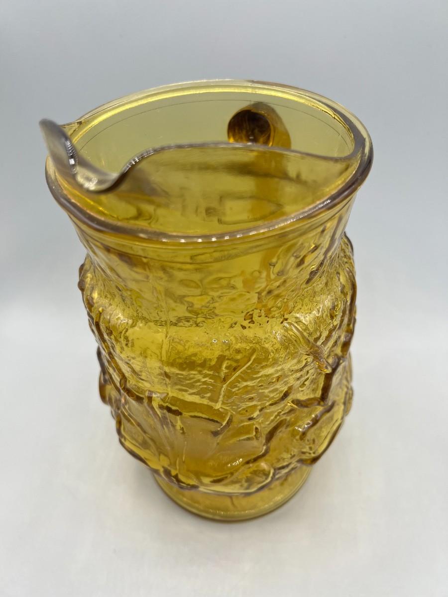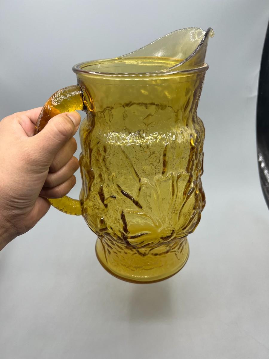 Vintage Retro Anchor Hocking Rainflower Gold Yellow Flower Embossed Glass Water Iced Tea Pitcher. In good condition.