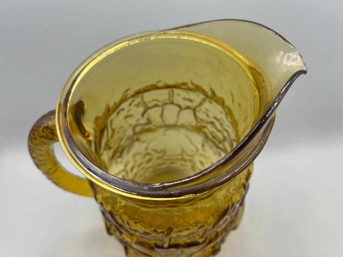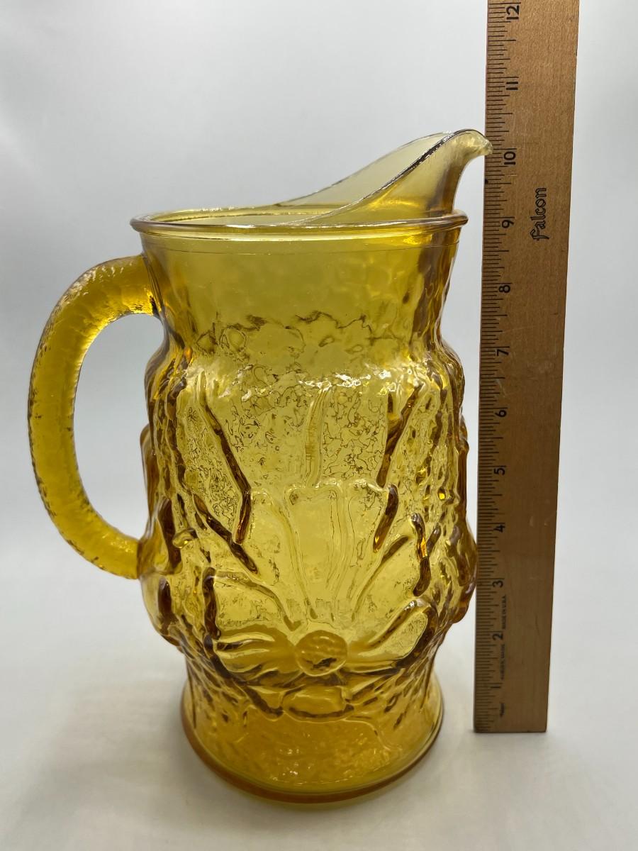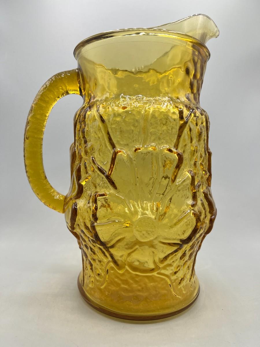 Vintage Retro Anchor Hocking Rainflower Gold Yellow Flower Embossed Glass Water Iced Tea Pitcher