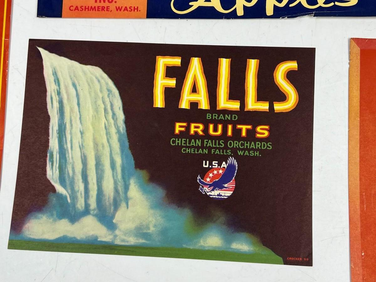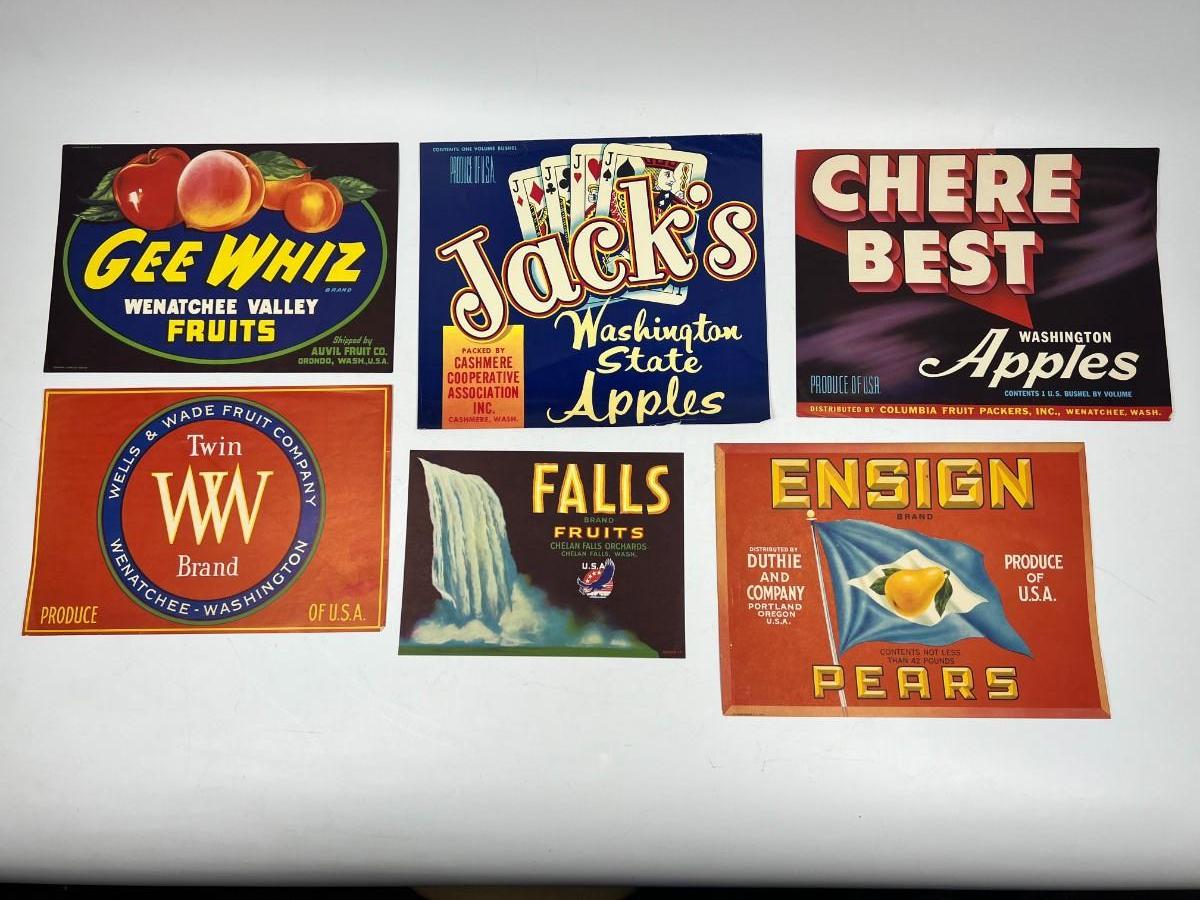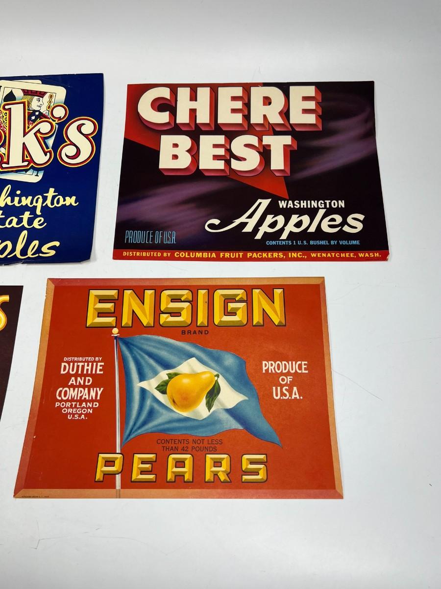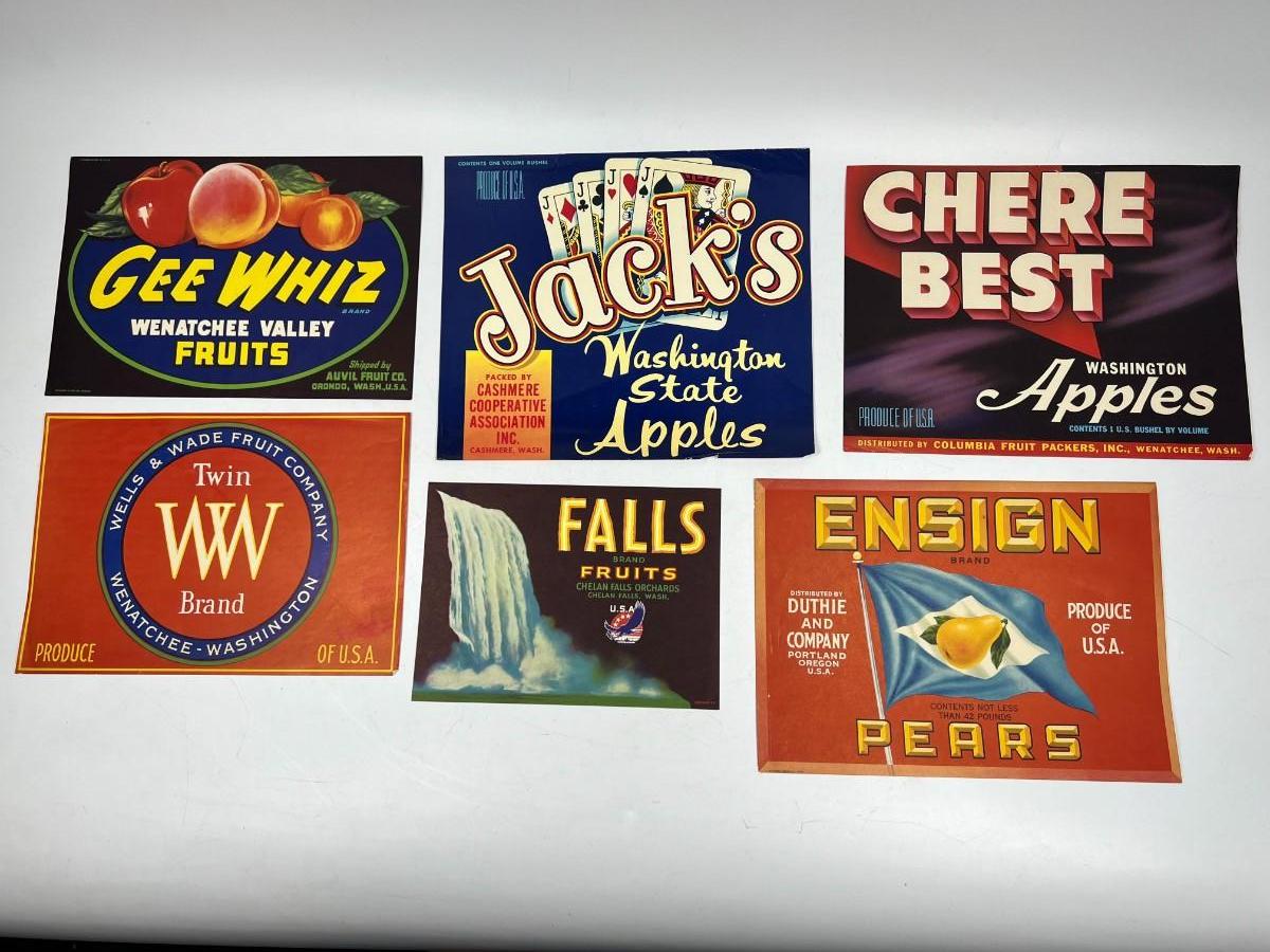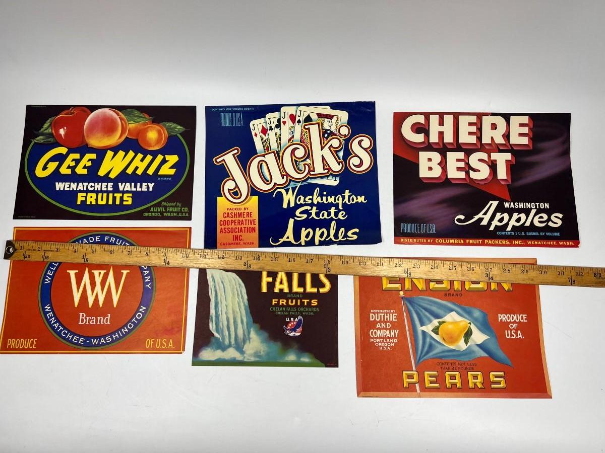 Lot of 6 Vintage Fruit Crate Box Paper Labels Apples Pears Fruits