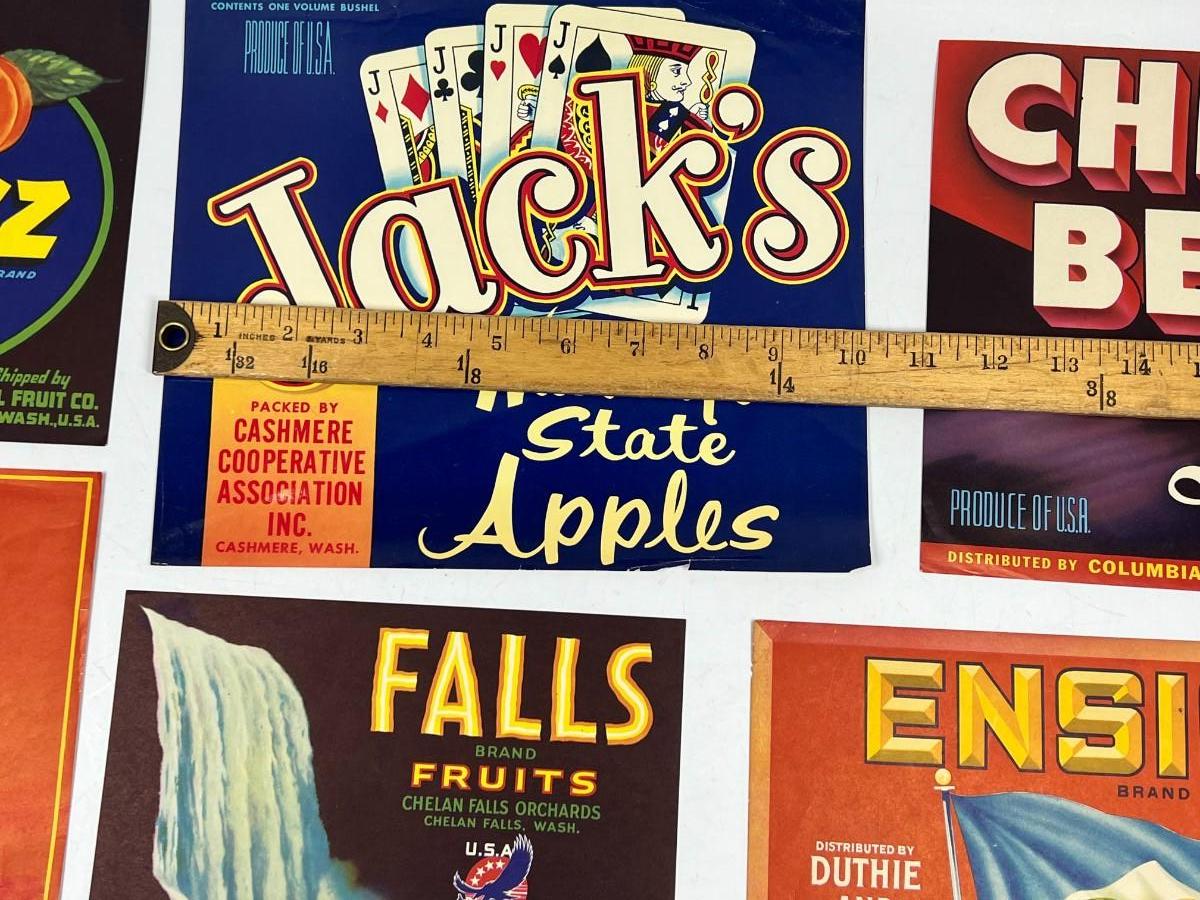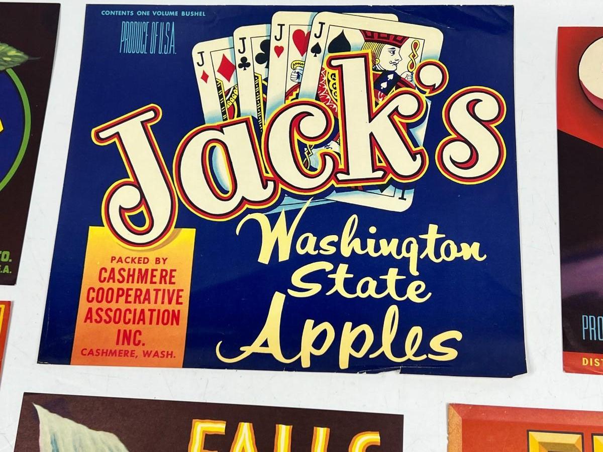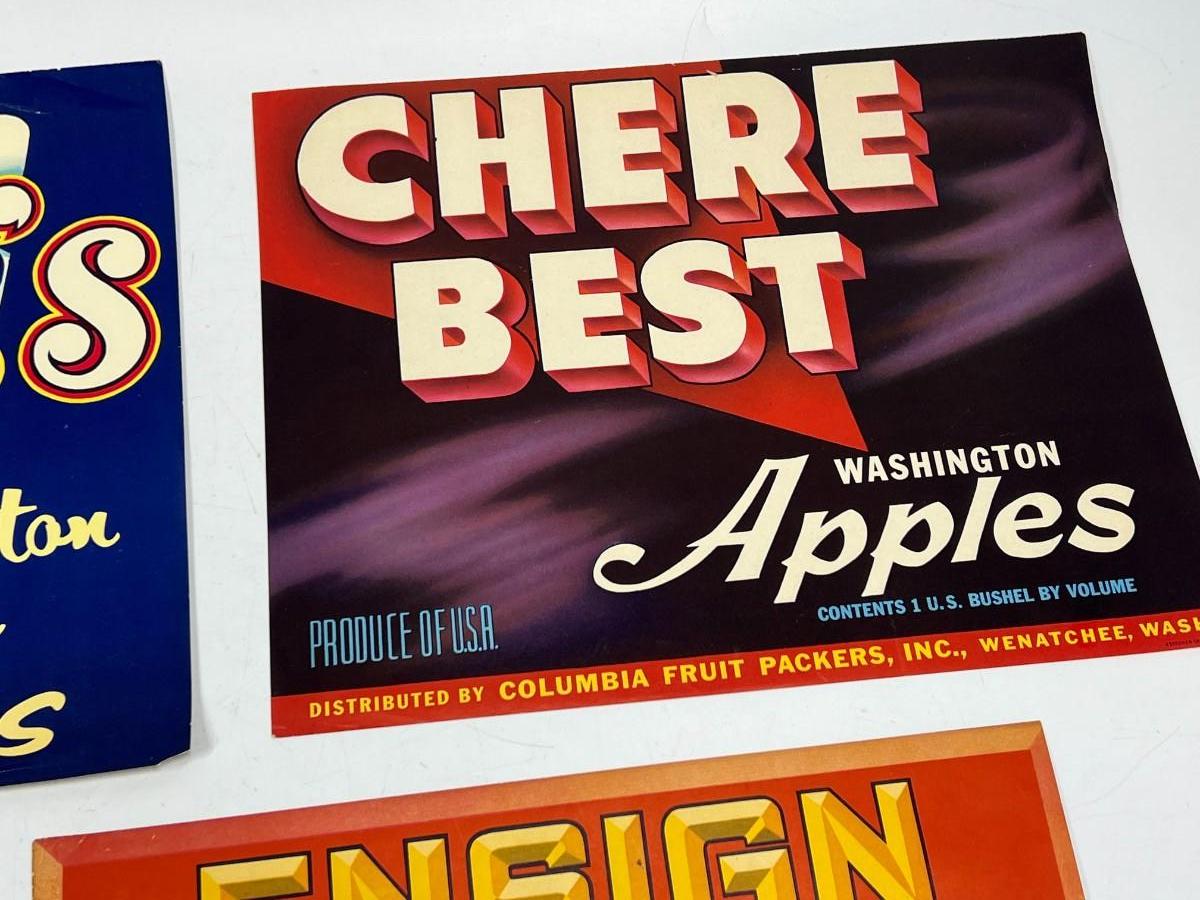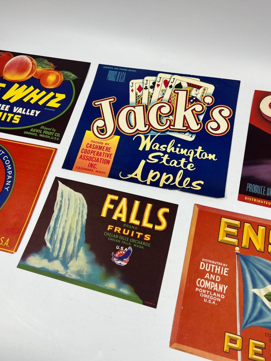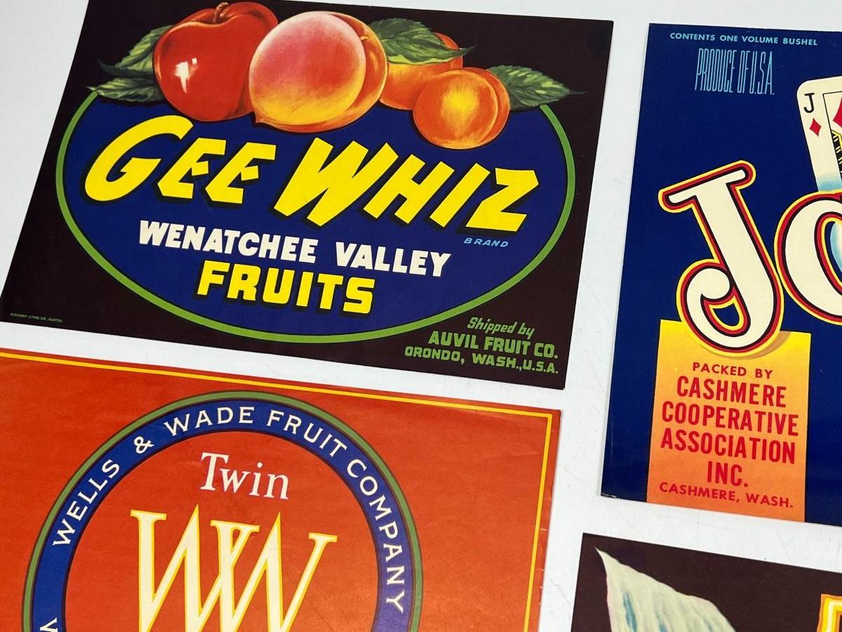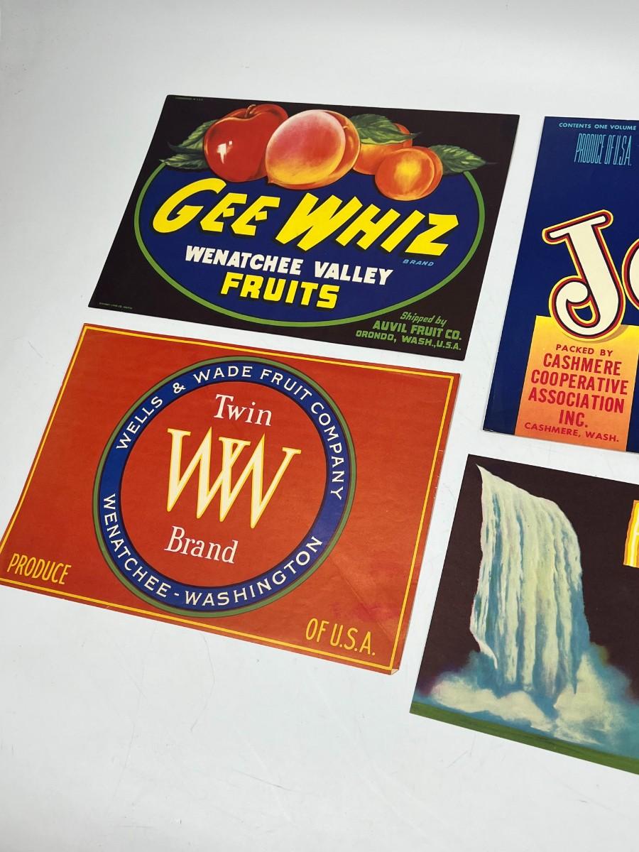Lot of 6 Vintage Fruit Crate Box Paper Labels Apples Pears Fruits