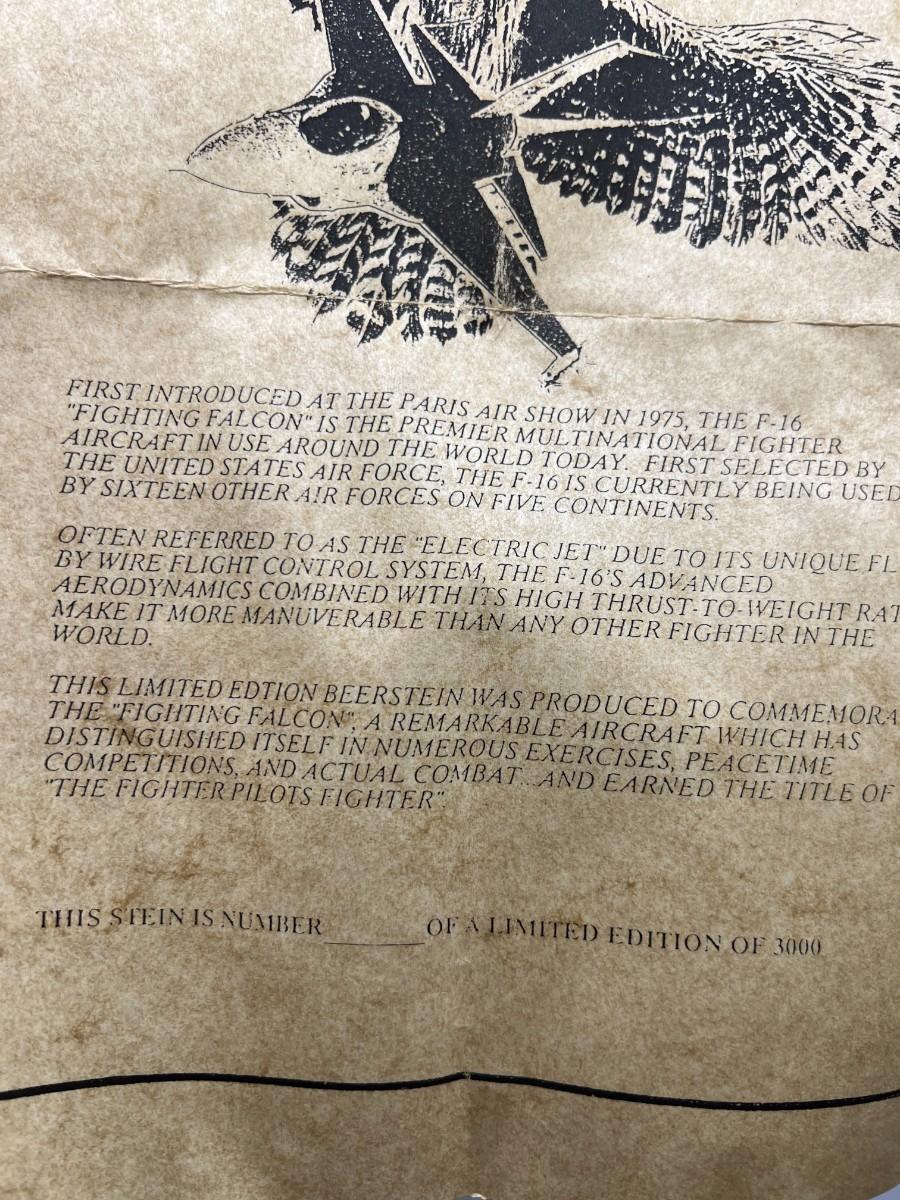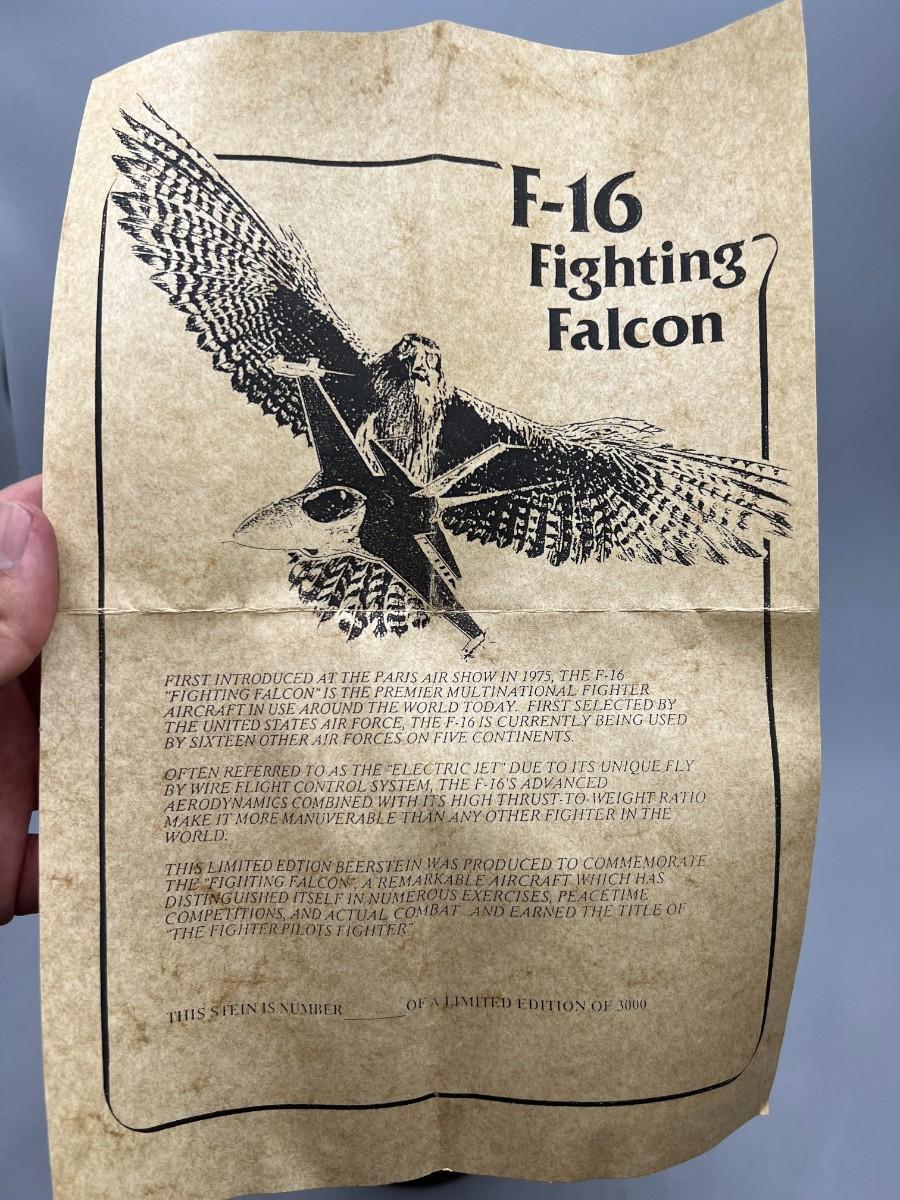 Collectible Military F-16 Fighting Falcon Fighter Jet Patriotic Commemorative Beer Stein
