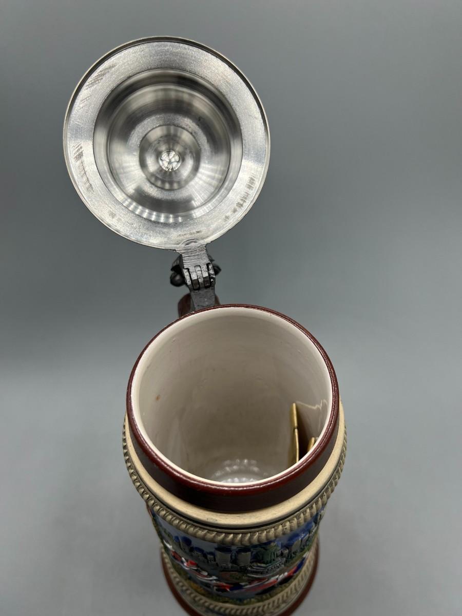 There is no damage to the beer stein and is in good collectible or displayable condition. Check pictures for more details.