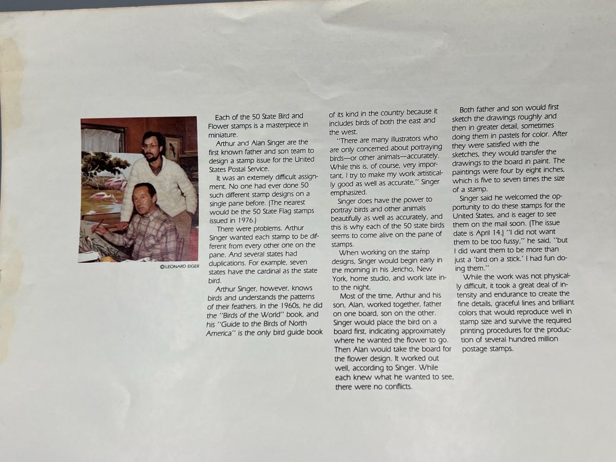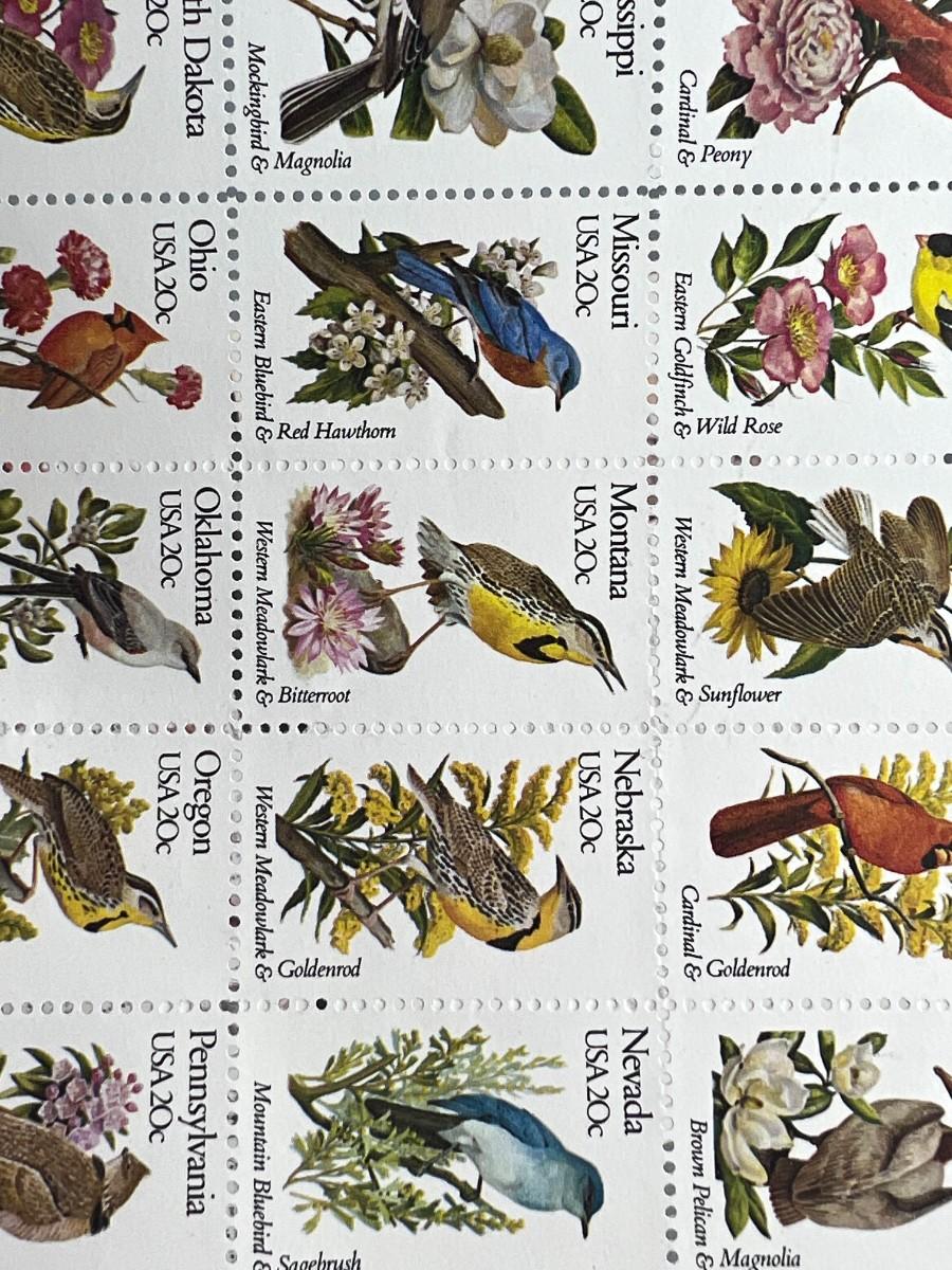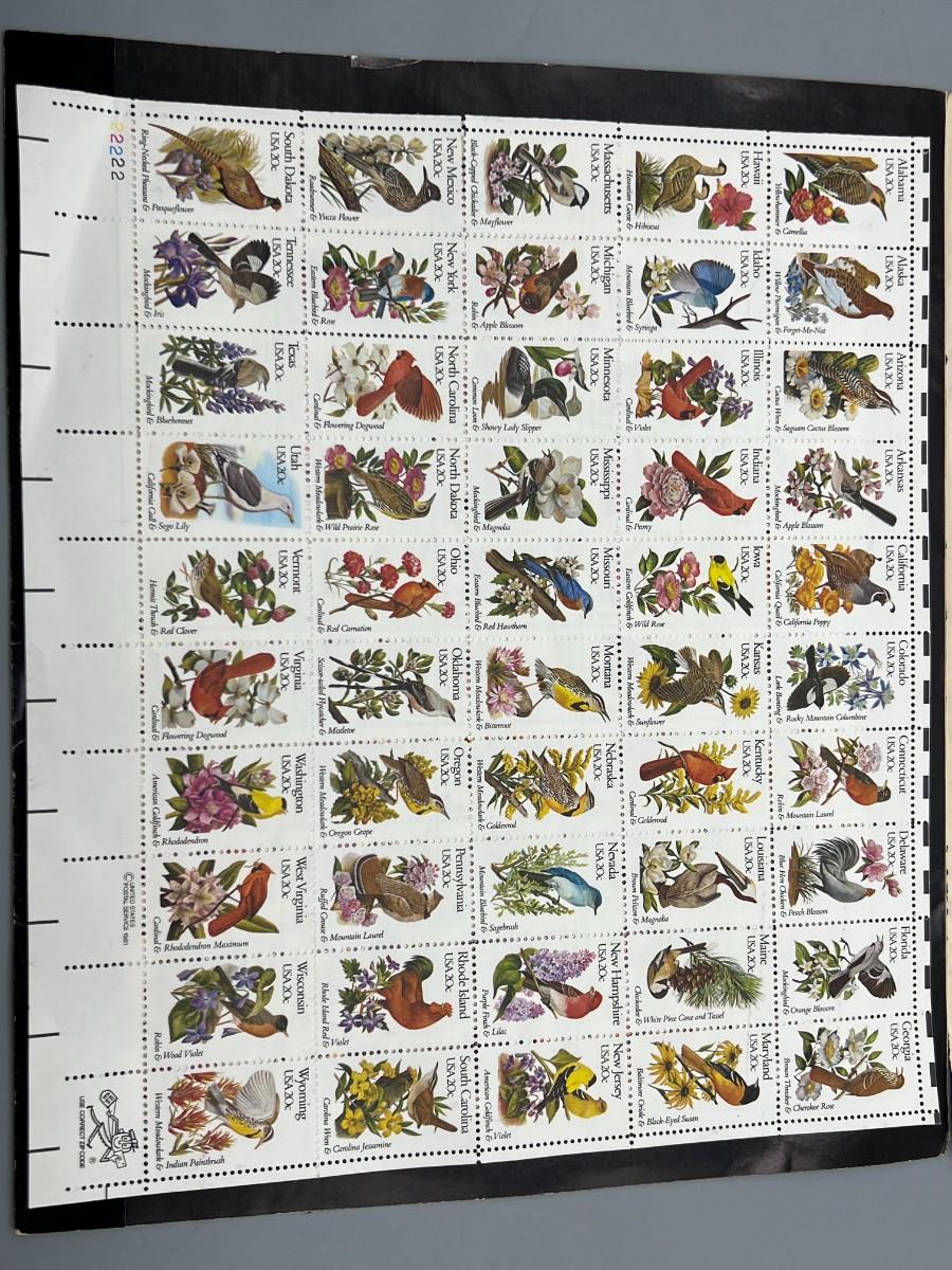 Complete Sheet United States State Bird USPS Postage Stamp Collector Set Page