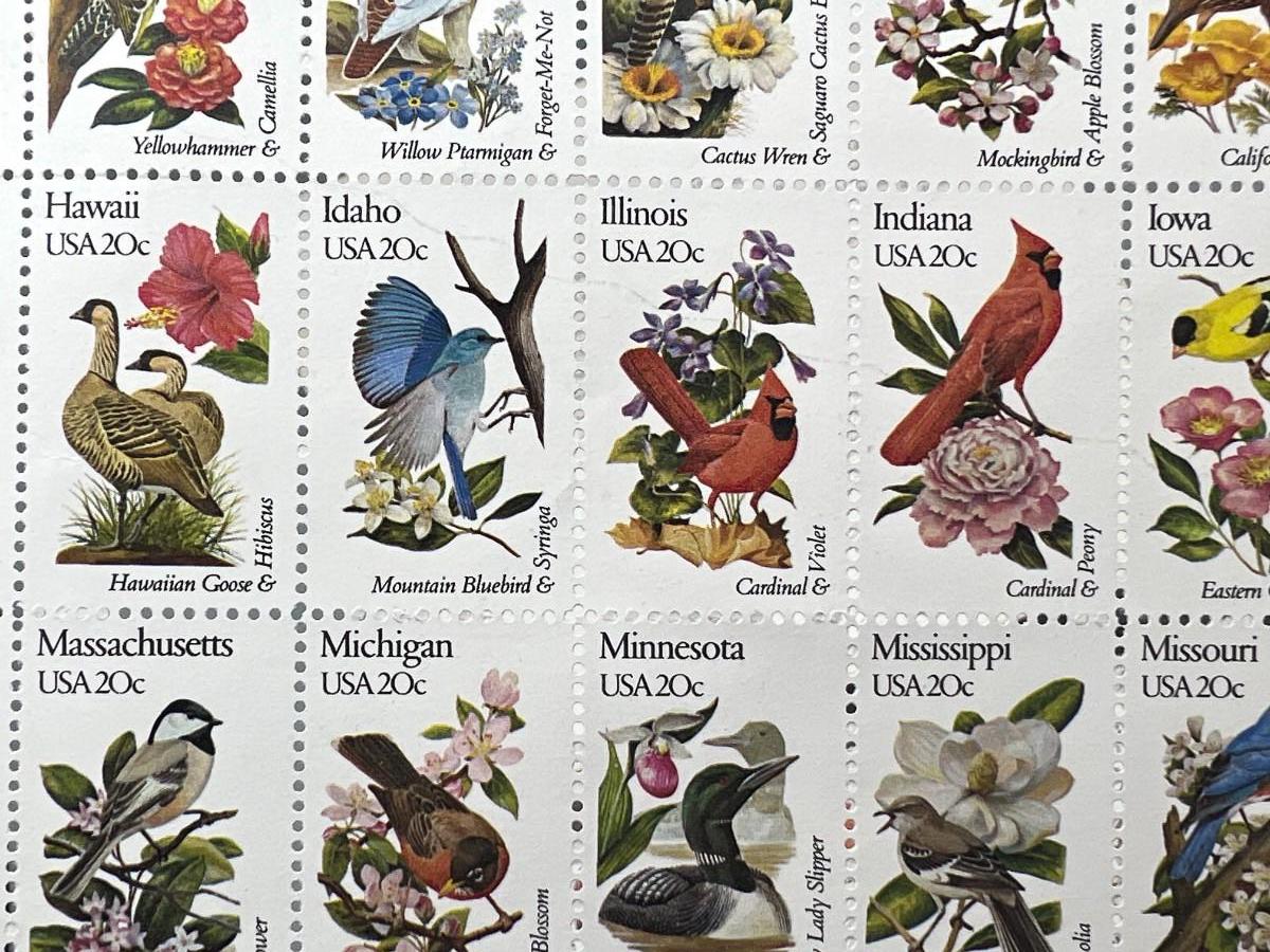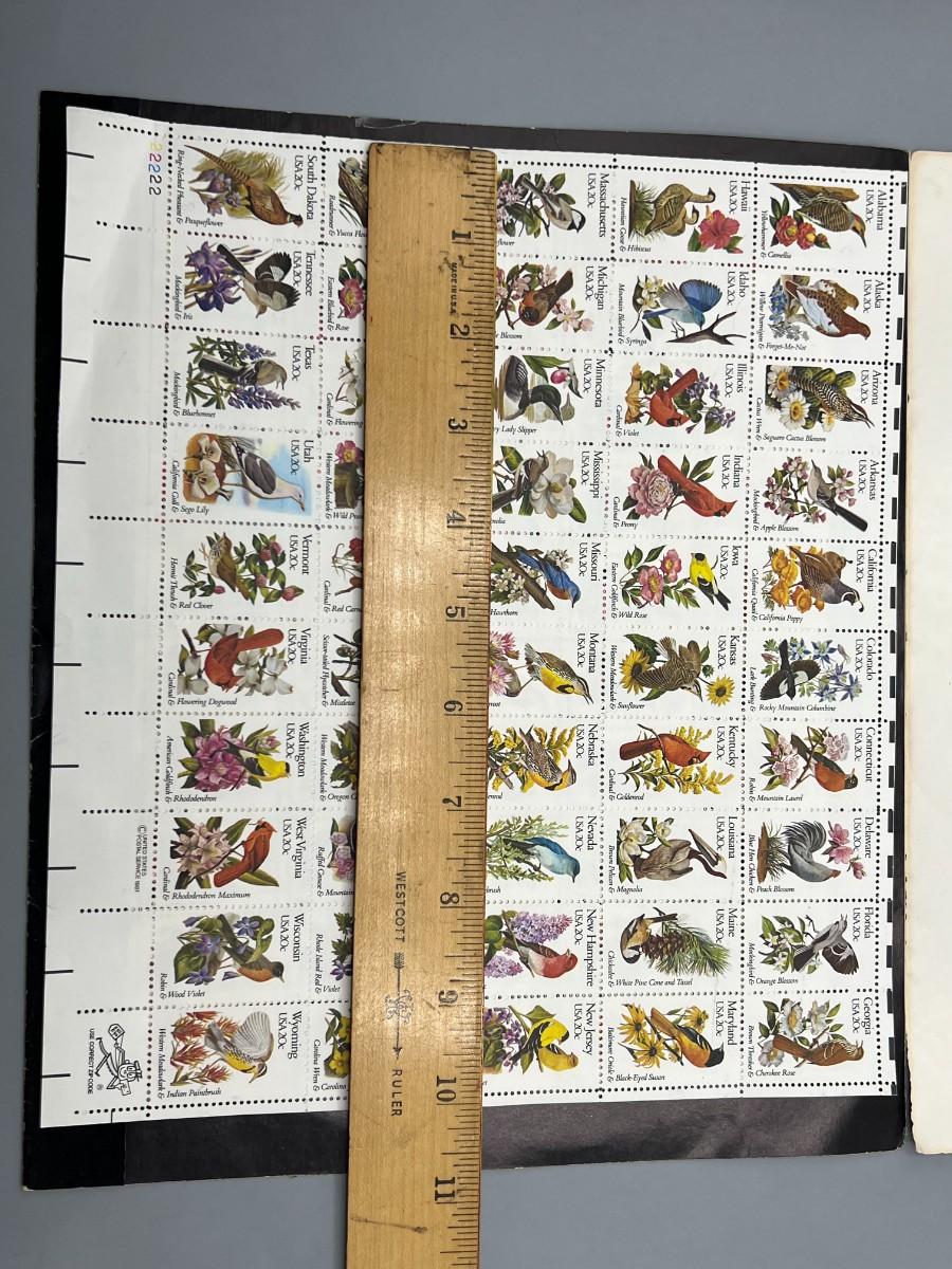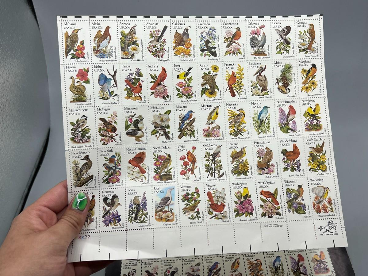 Complete Sheet United States State Bird USPS Postage Stamp Collector Set Page. In good condition. One for each of the 50 states.
