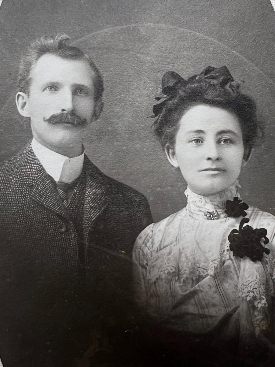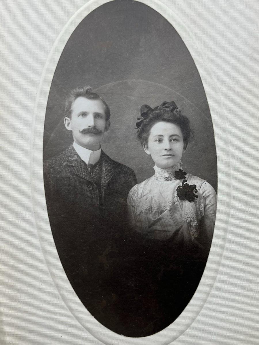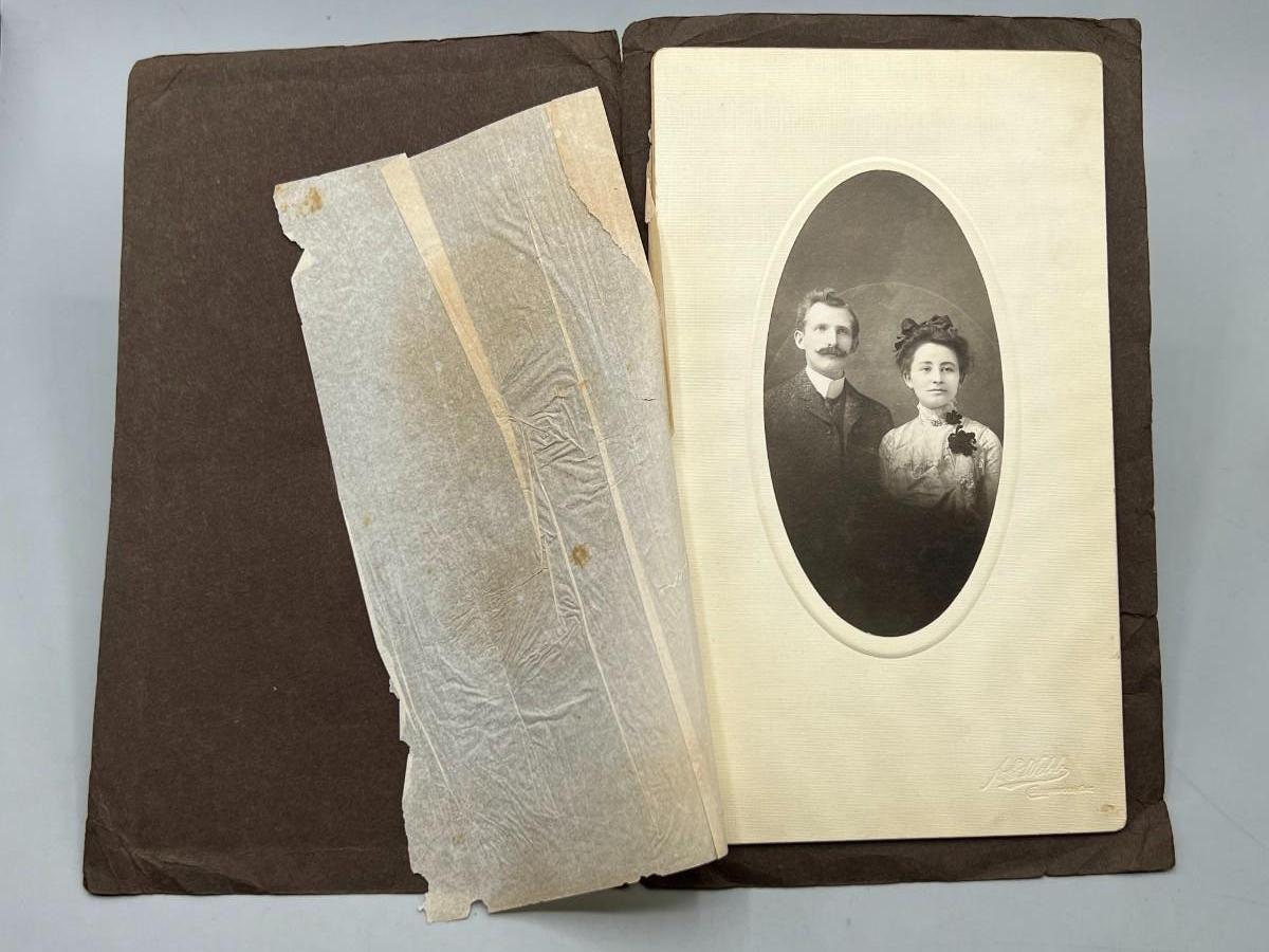 Antique Victorian Couple Black & White Cabinet Card. Good condition.