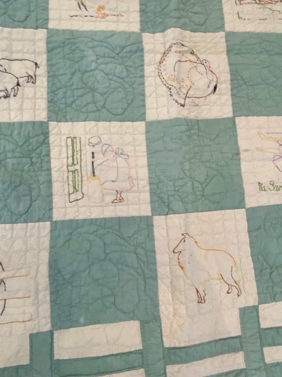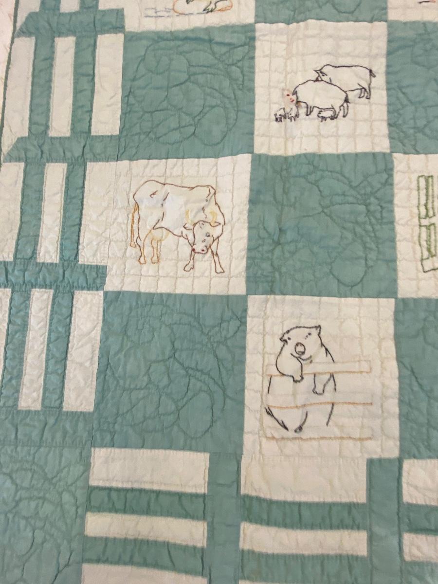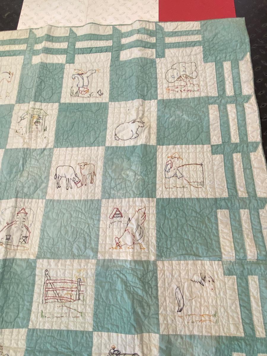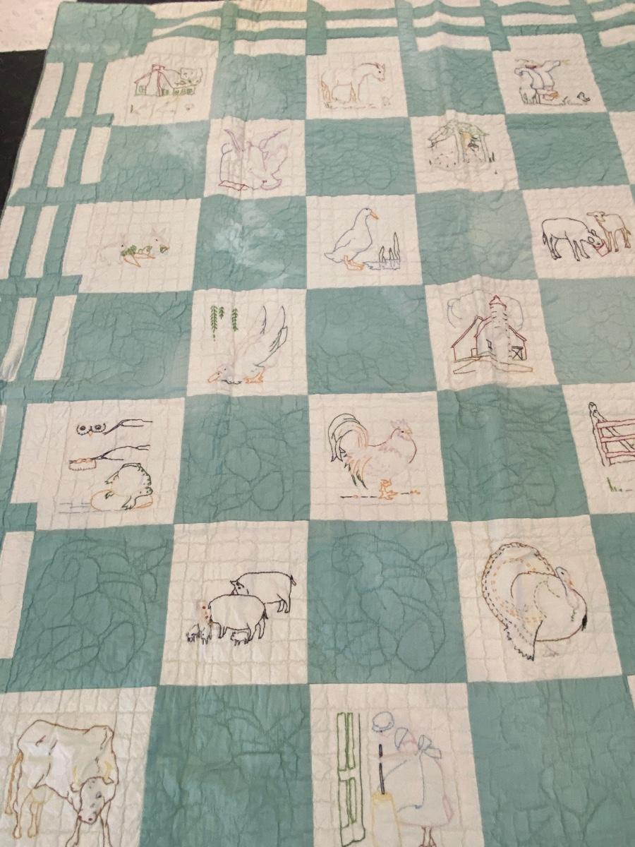 ADORABLE BARNYARD HANDMADE EMBROIDERED QUILT