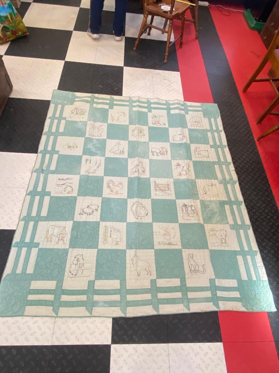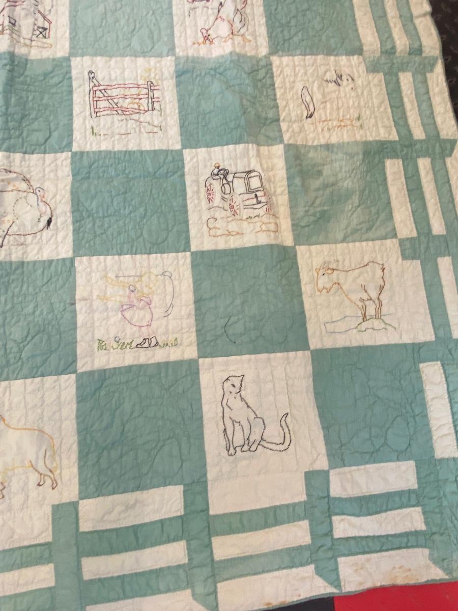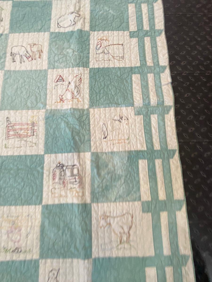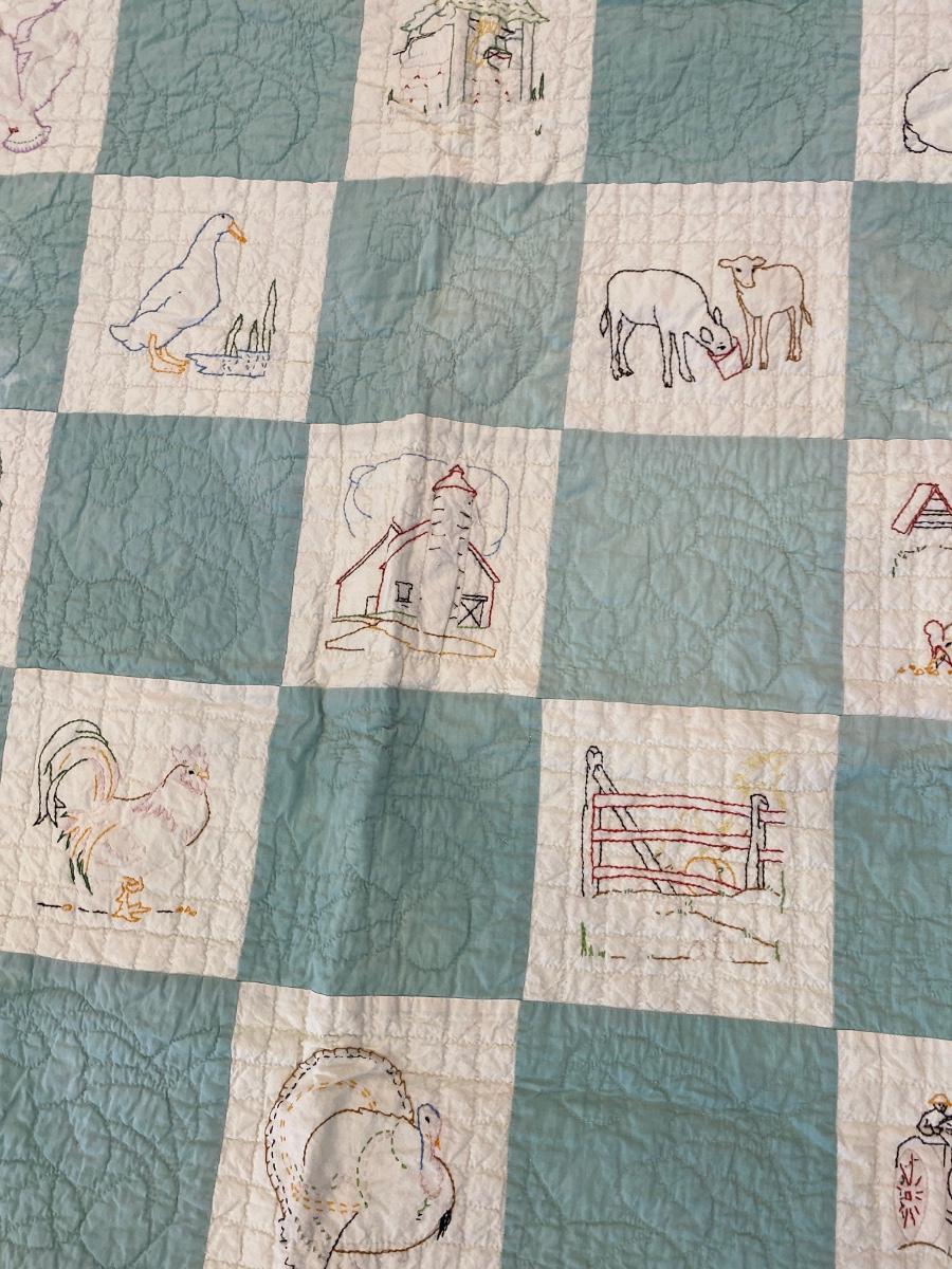 ADORABLE BARNYARD HANDMADE EMBROIDERED QUILT