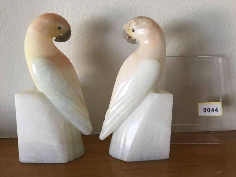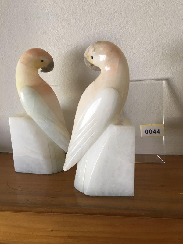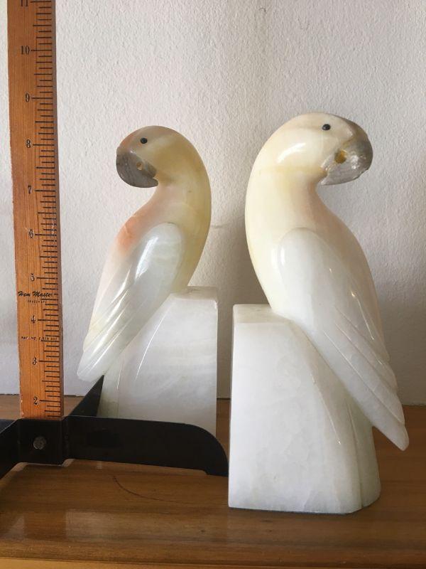 A pair of Alabaster Parrot bookends. Super charming. Good condition.