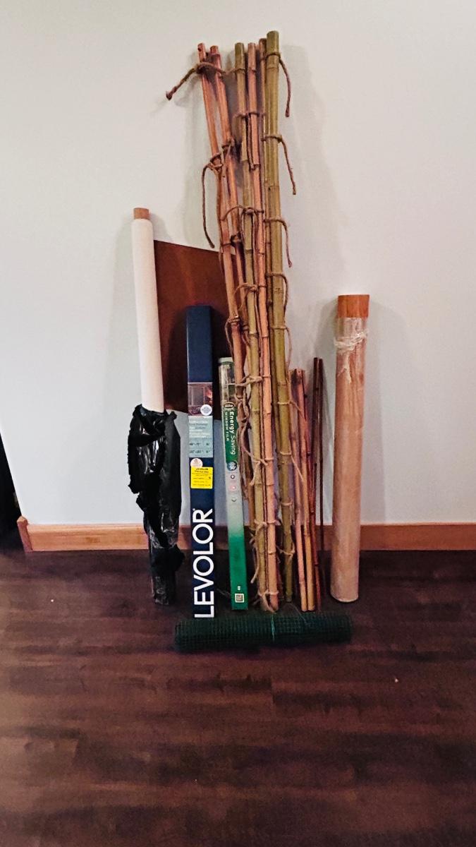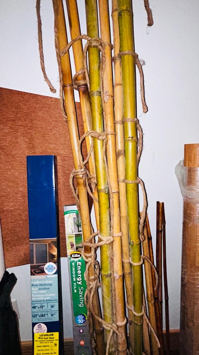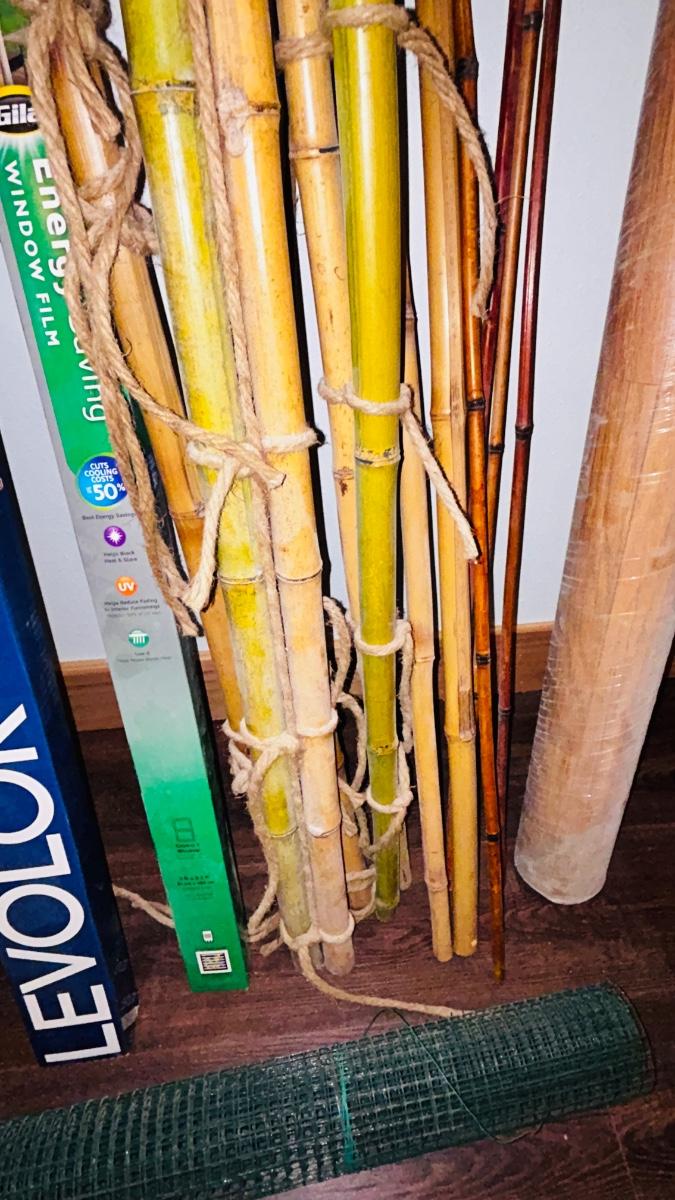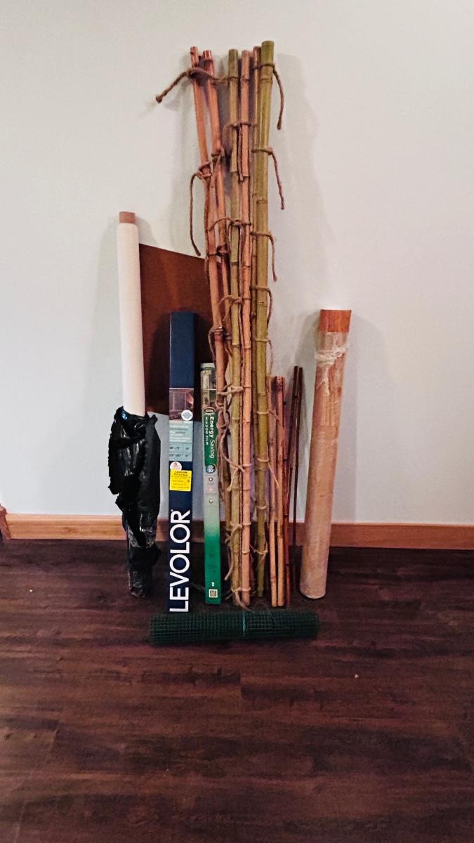 BAMBOO STICKS, NEW LEVELOR BLIND, TWO KINDS OF VINYL FLOORING AND A UPHOLSTERY VINYL PLUS MORE!
