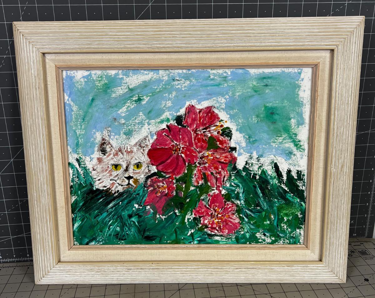 Amateur Painting of Cat on Board