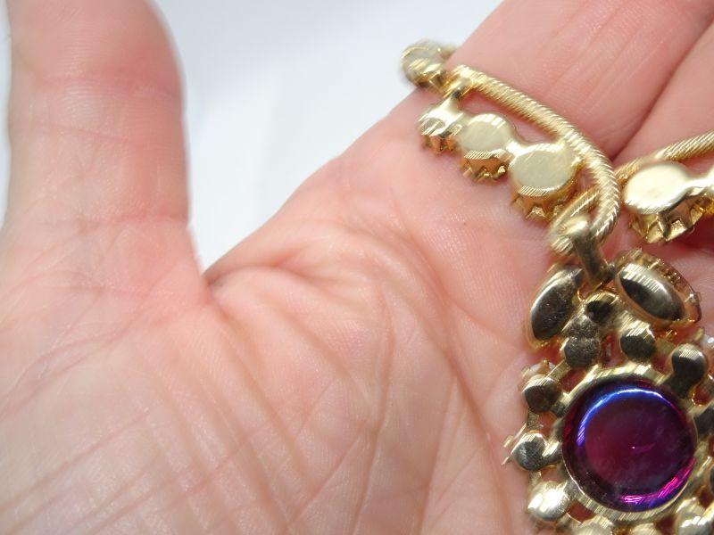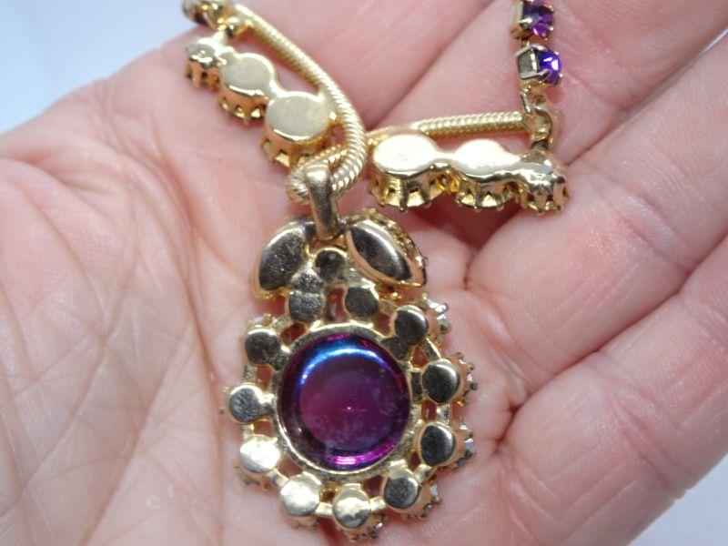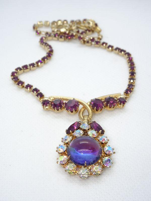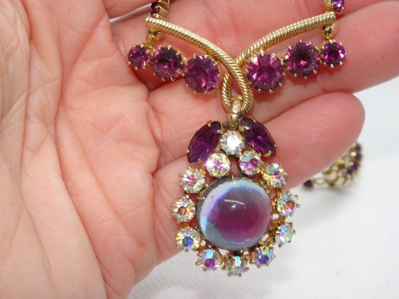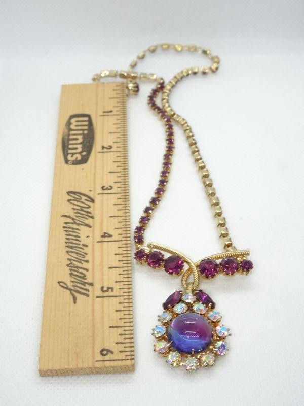 Amazing Mid Century Modern Pink Rhinestone Pendant Necklace, Opalescent Pendant