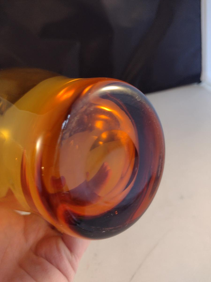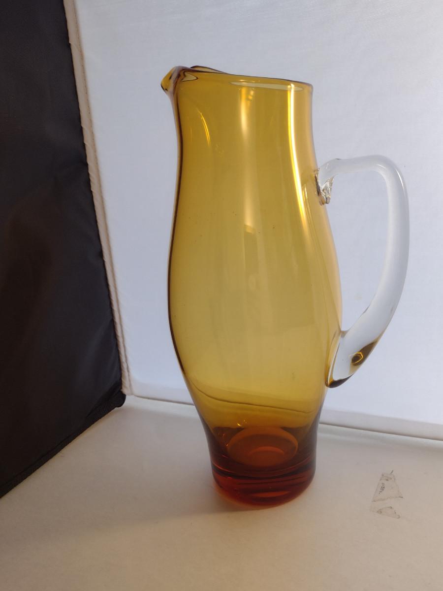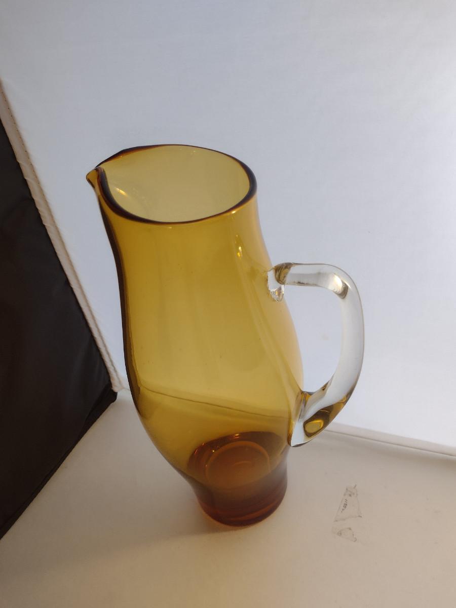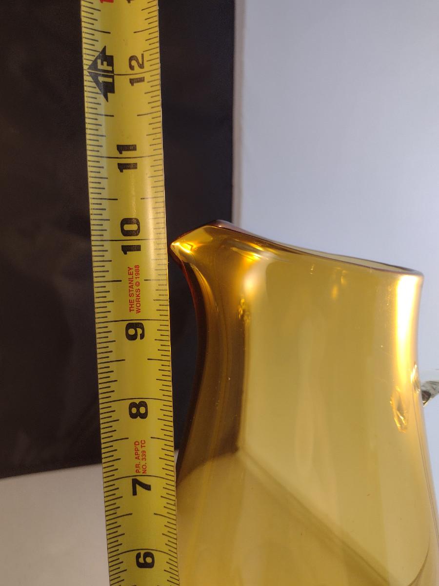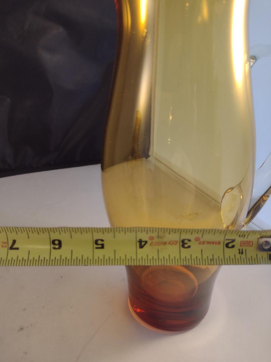Amber Art Glass Pitcher with Applied Clear Glass Handle- Approx 10" Tall