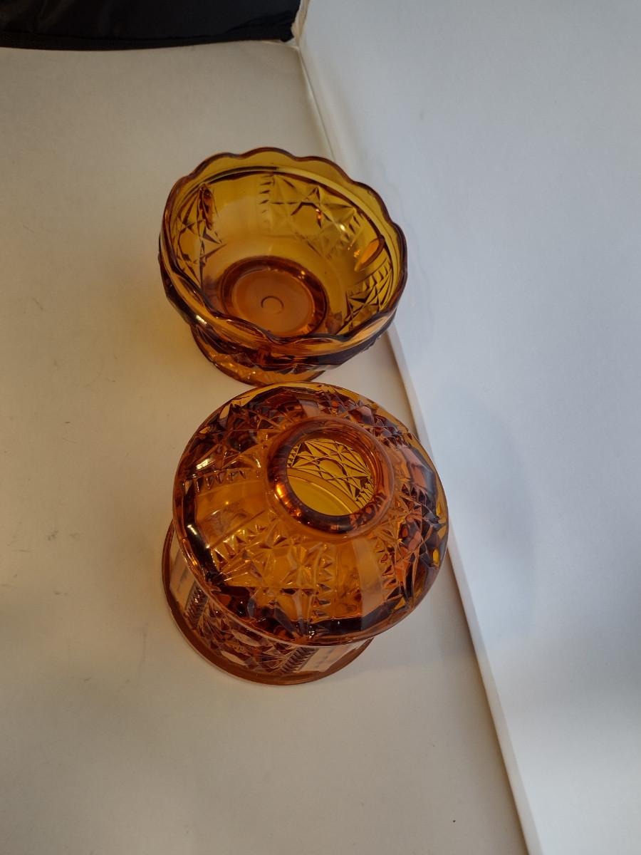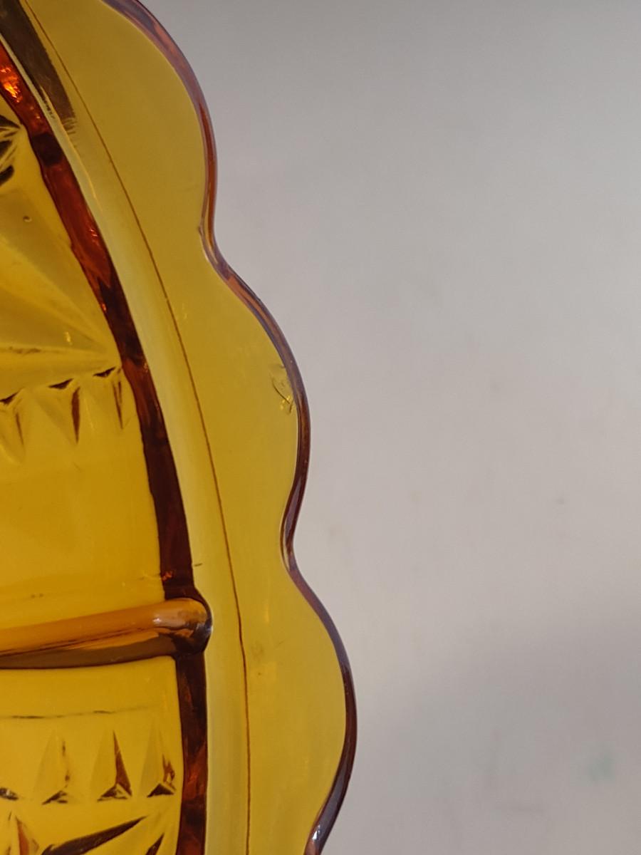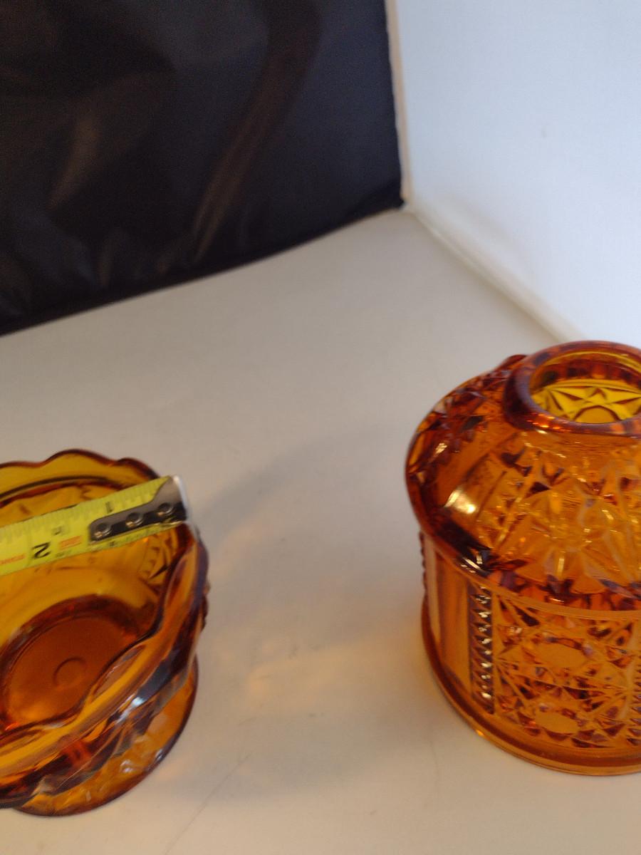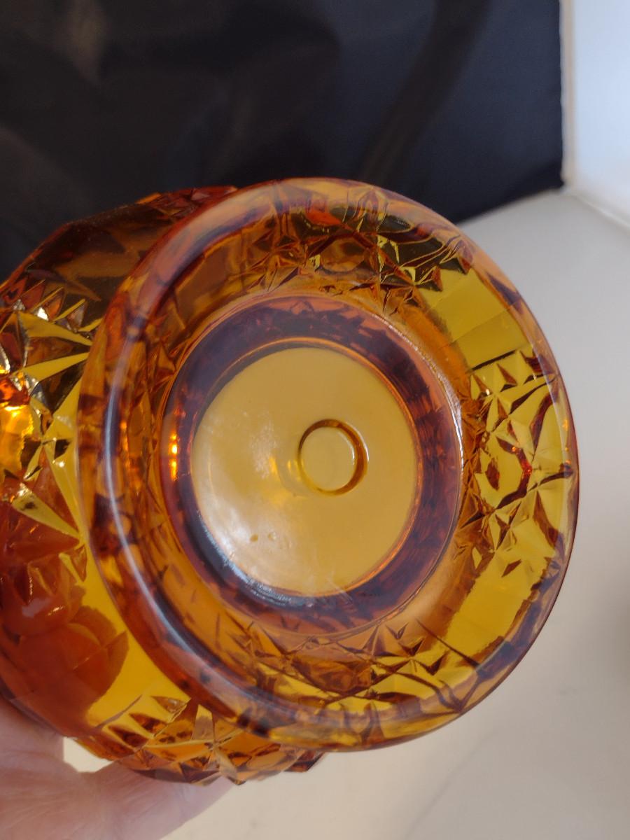 Amber Glass Fairy Lamp- Approx 6 1/4" Tall. Item has a couple of small chips.
