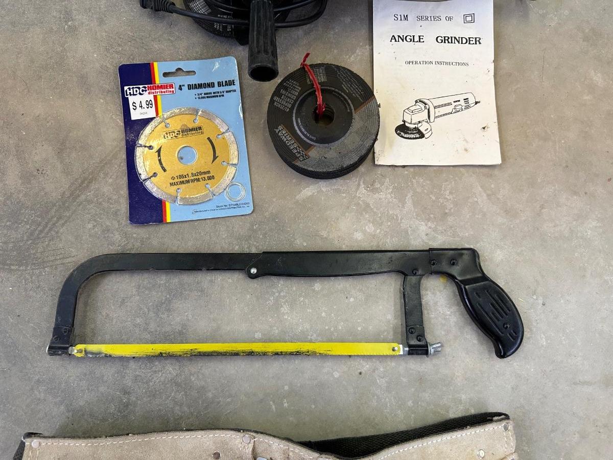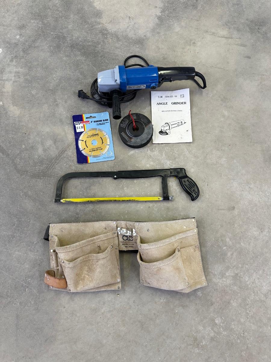 ANGLE GRINDER, TOOL BELT, HAND SAW & MORE