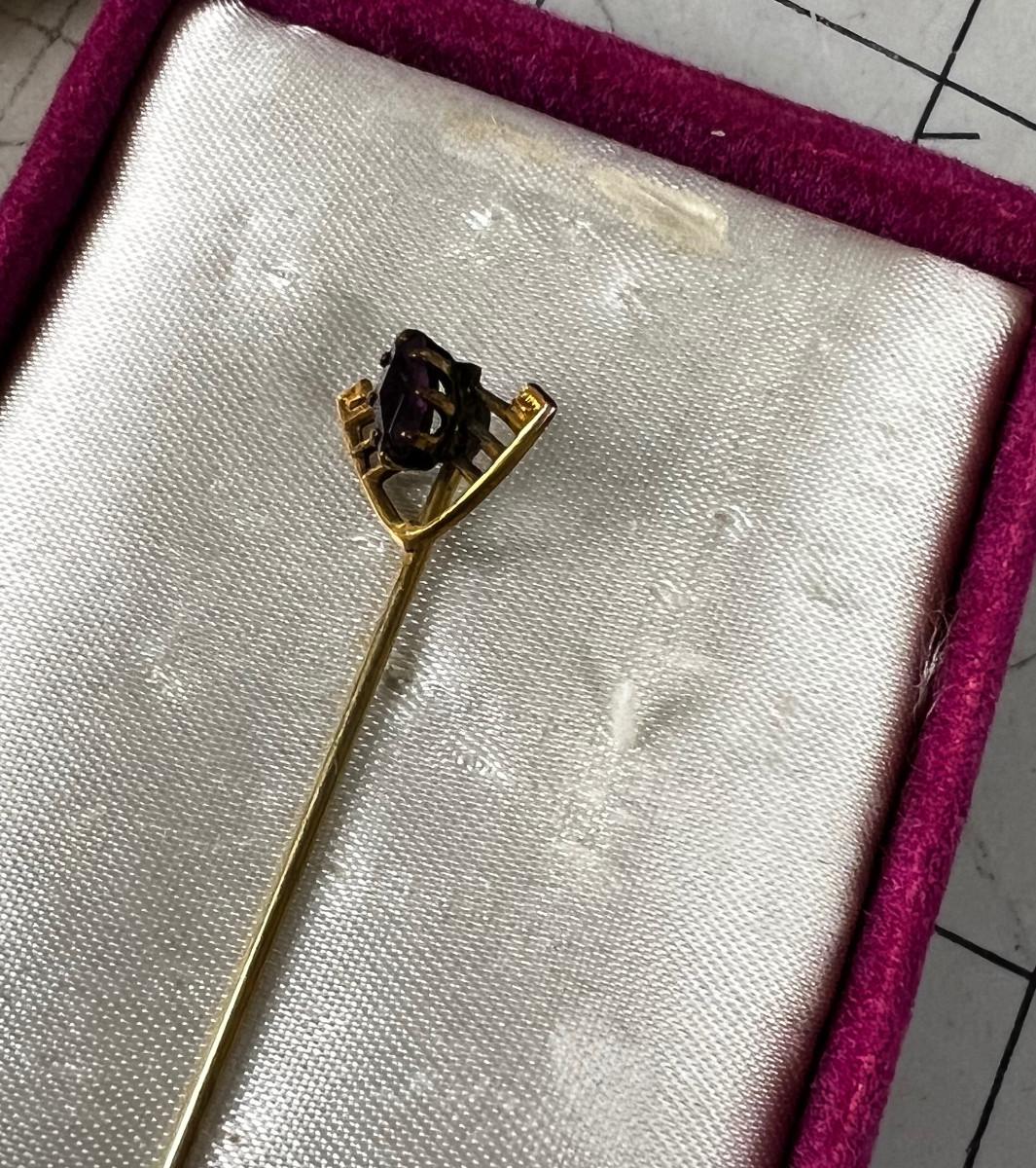 Antique Gold Stick Pin NOT Marked Oval Amethyst