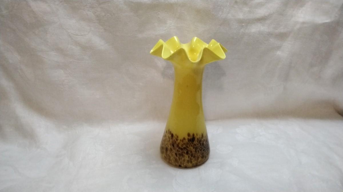 Spatter glass, also known as splatter glass, end-of-day glass or splashed glass, is a technique that has been used for several centuries, and dates right back to the Romans. A few countries have produced spatter glass, the most commonly found spatter glass these days being of Czech / Bohemian origin, as shown in the pictures below. Spatter glass is produced by rolling hot blown glass over small pieces or chips of coloured glass. 6" height 2.5" base