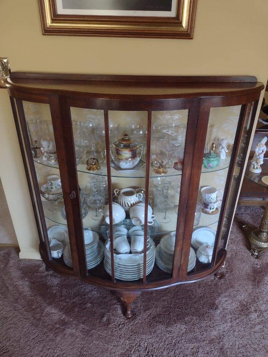 Antique Mahogany Bowfront Curio Display Cabinet with Glass Shelves (No Contents)