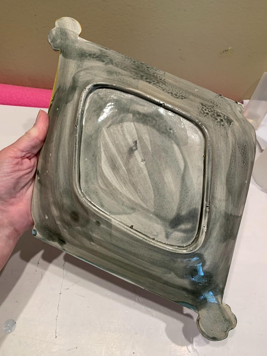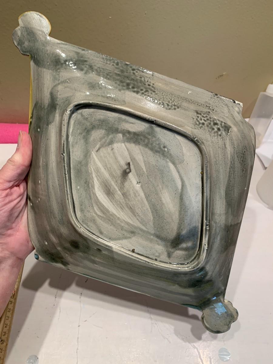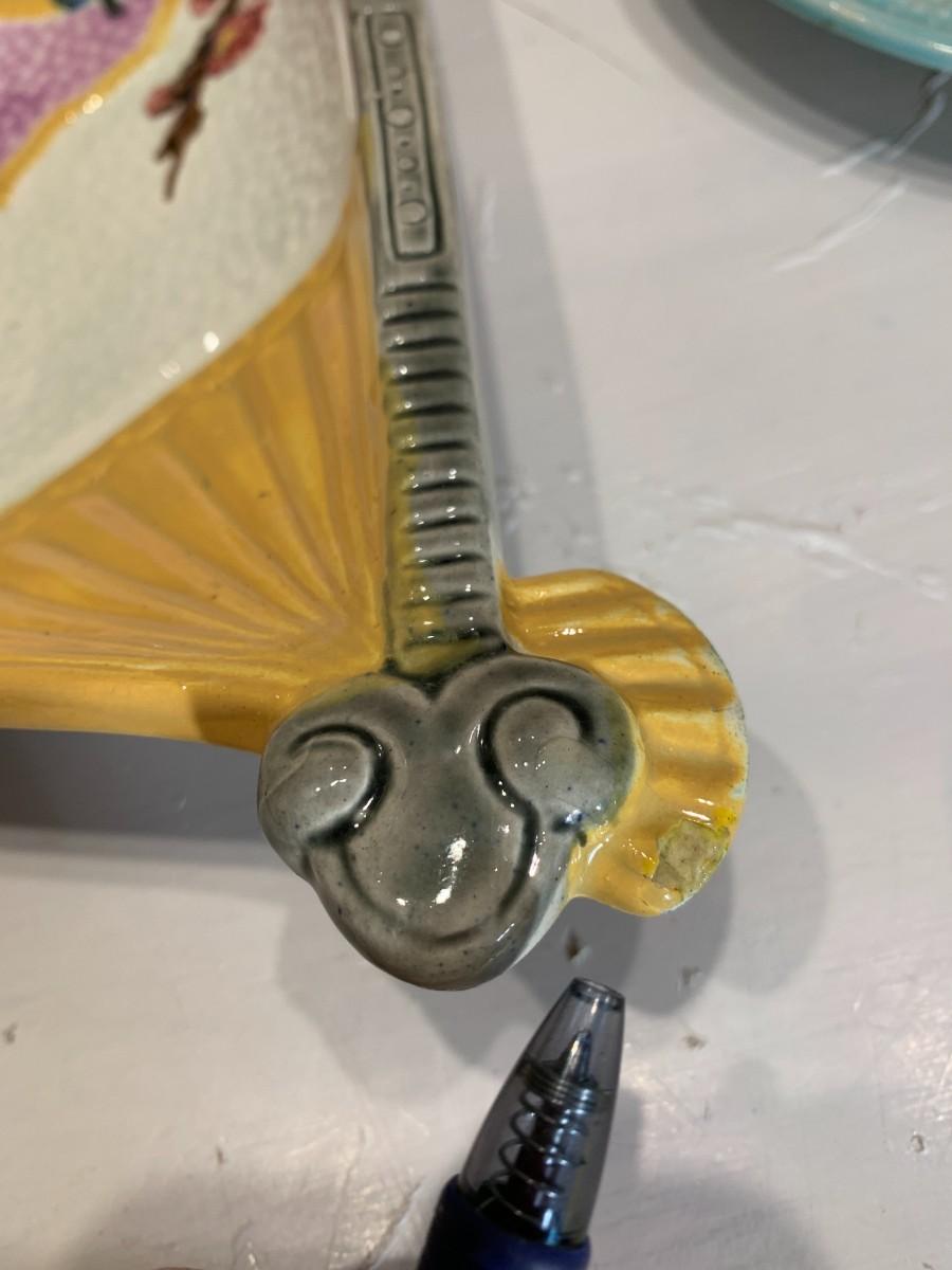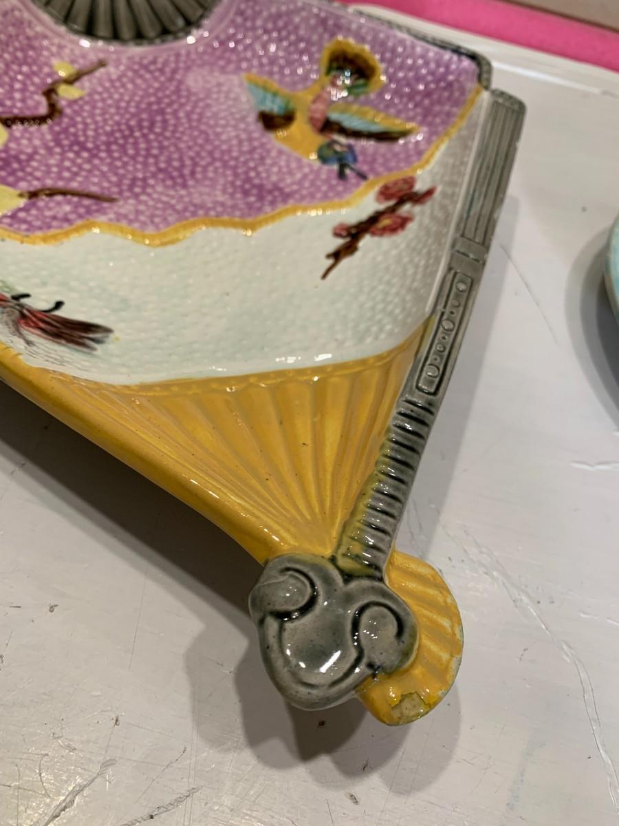 Antique Majolica 2 Fans Platter with Bird and Dragonfly c. 1800's