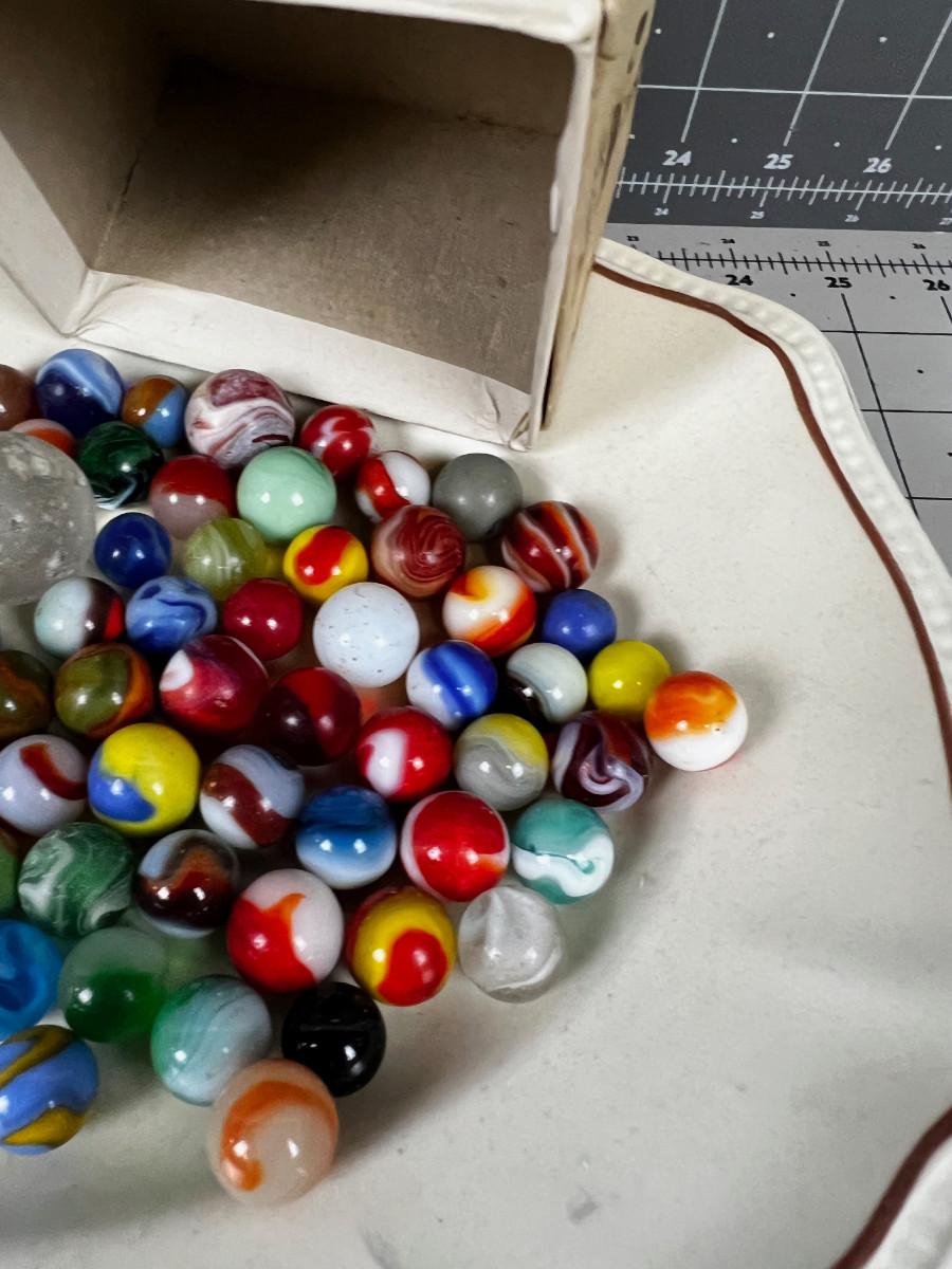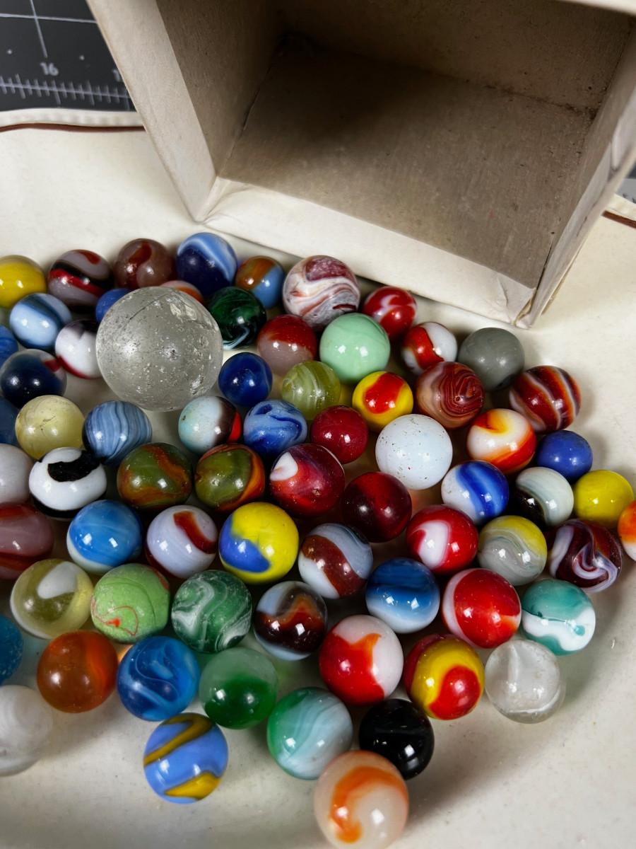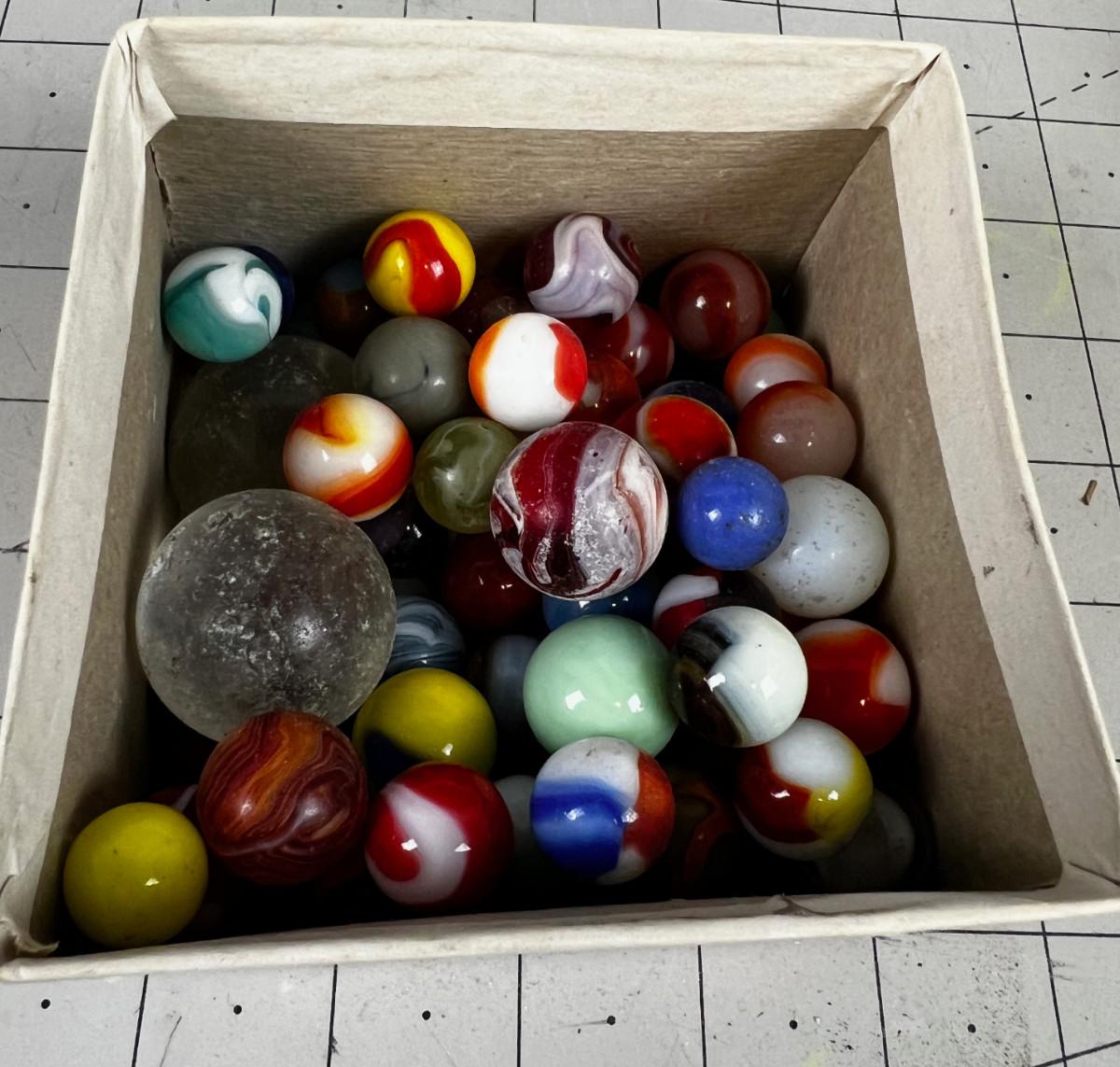 Antique Marbles in Cool old Baby shoe box