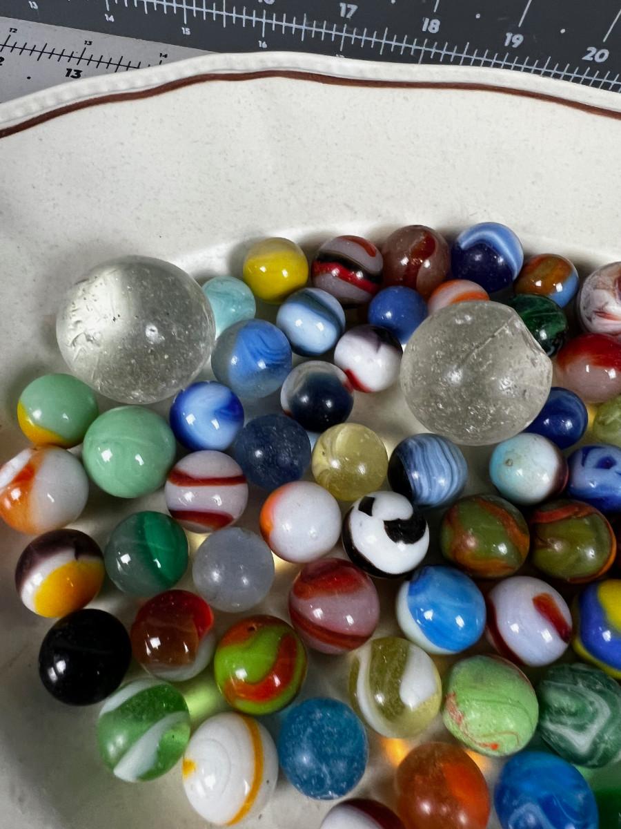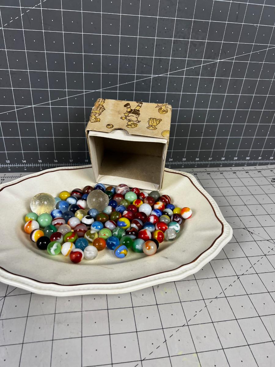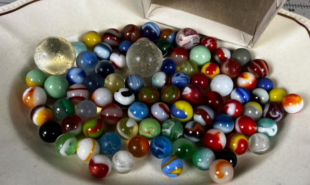 Antique Marbles in Cool old Baby shoe box
