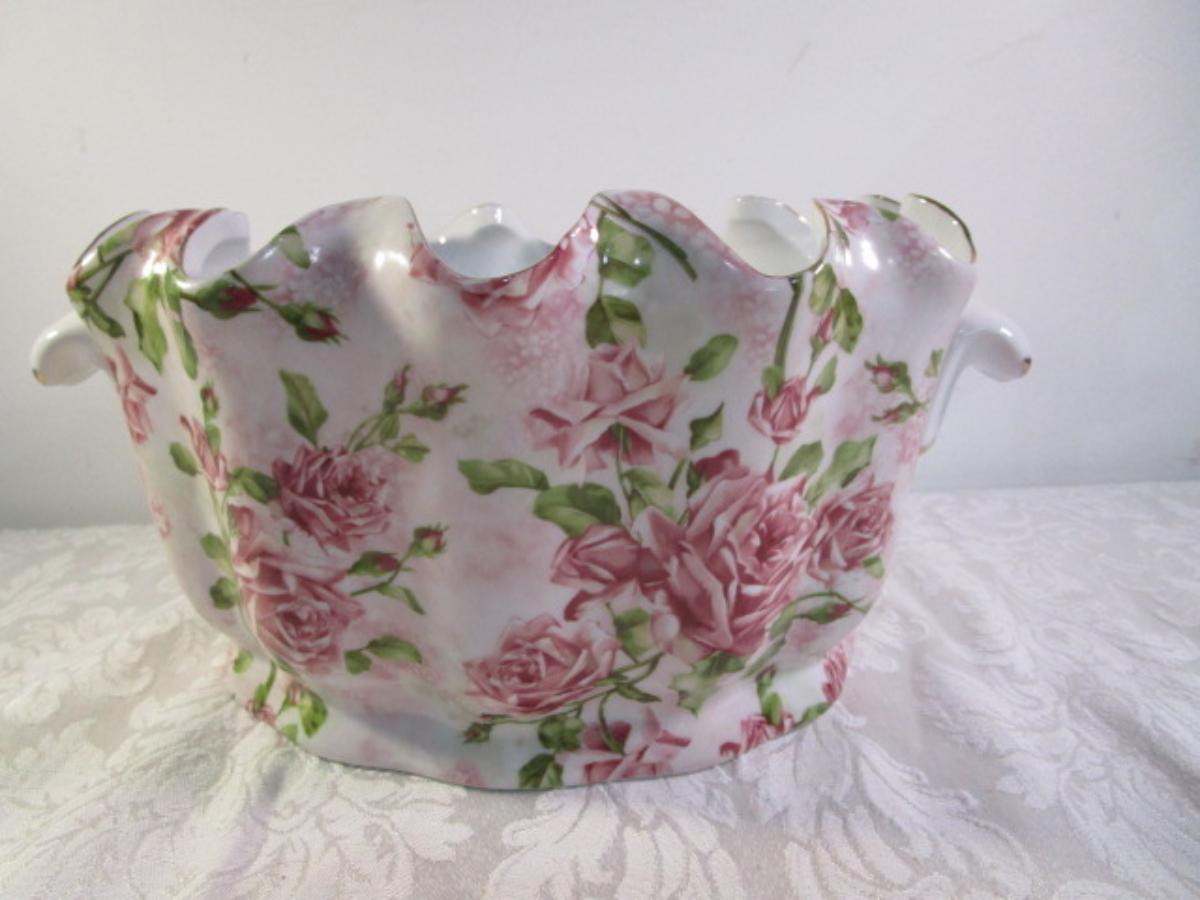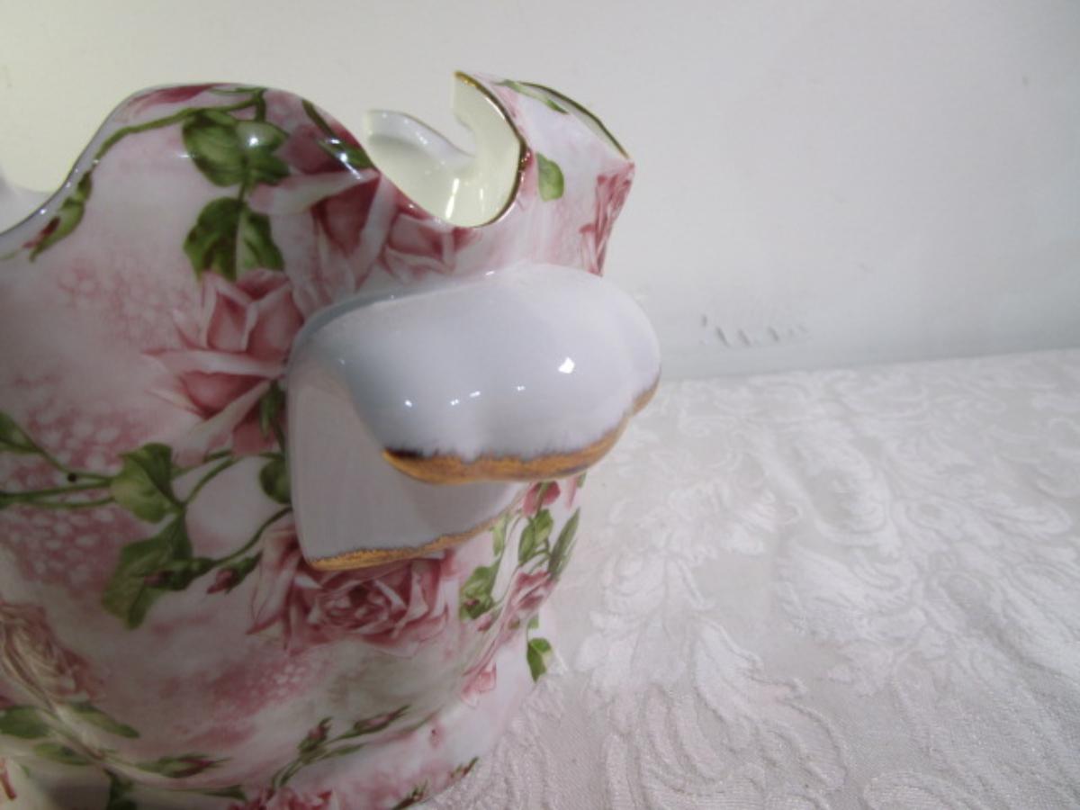 Antique Reflections by J. Godinger & Co. porcelain fluted bowl, rose painted