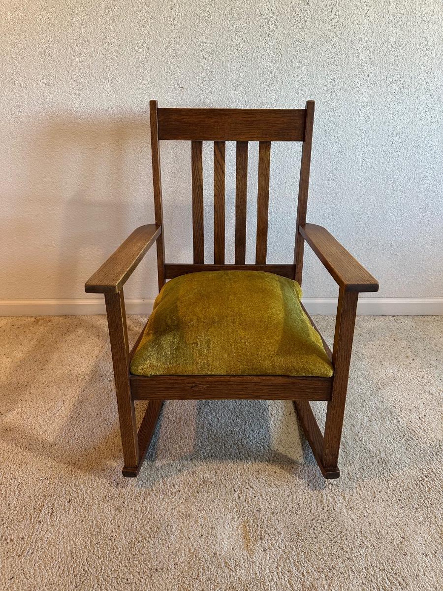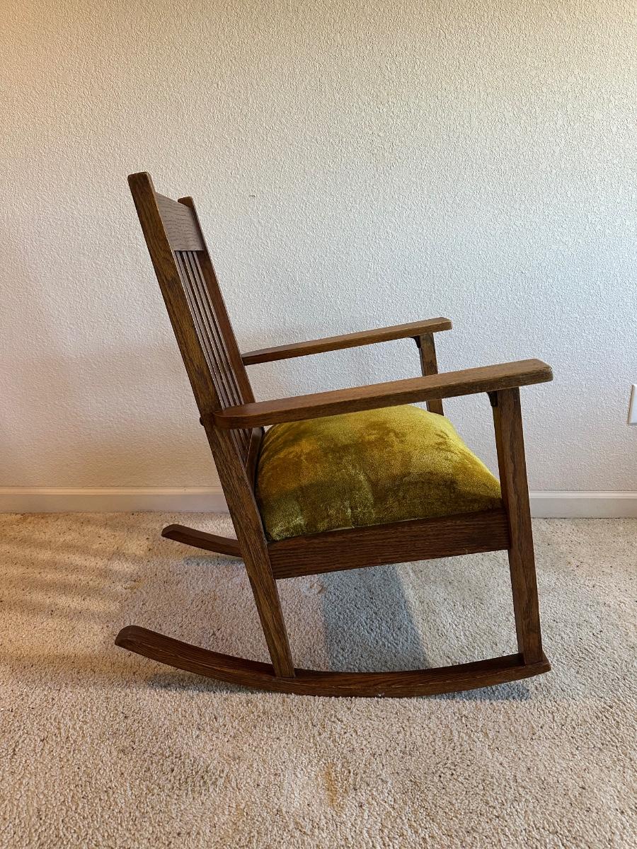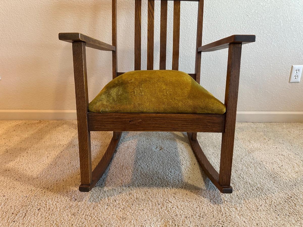ANTIQUE ROCKING CHAIR WITH VELVET UPHOLSTERED SEAT