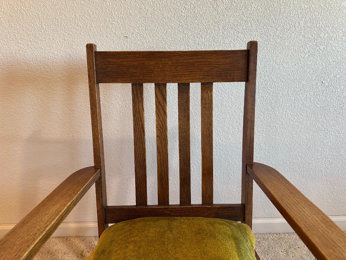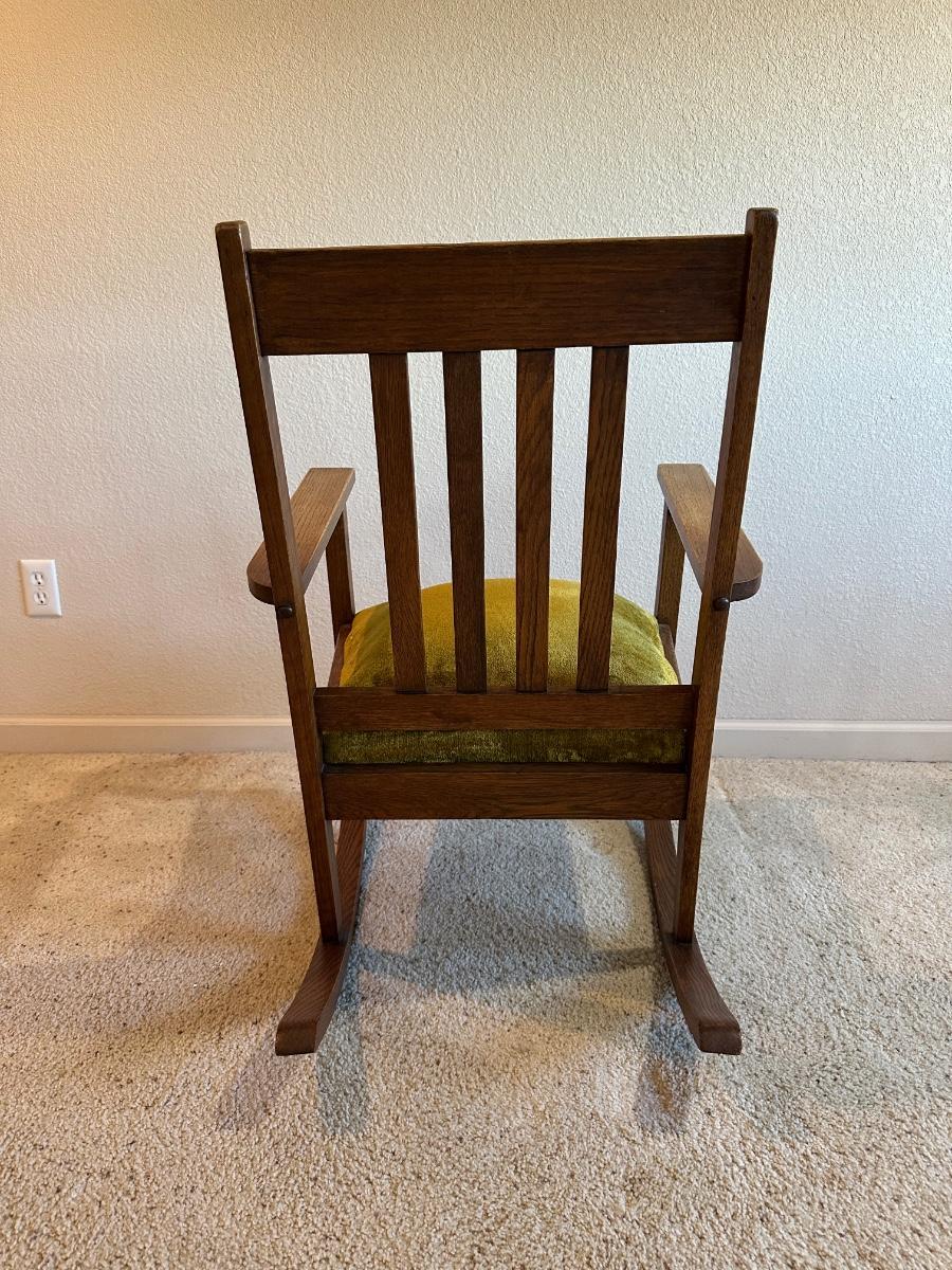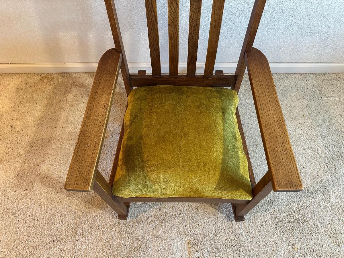 ANTIQUE ROCKING CHAIR WITH VELVET UPHOLSTERED SEAT