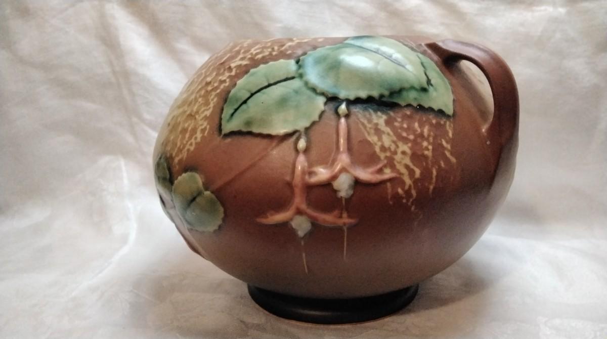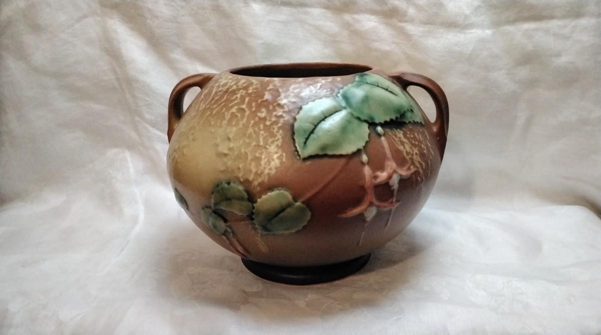 Antique Roseville Brown Fuchsia Green Jardinière 347-6 Circa 1936