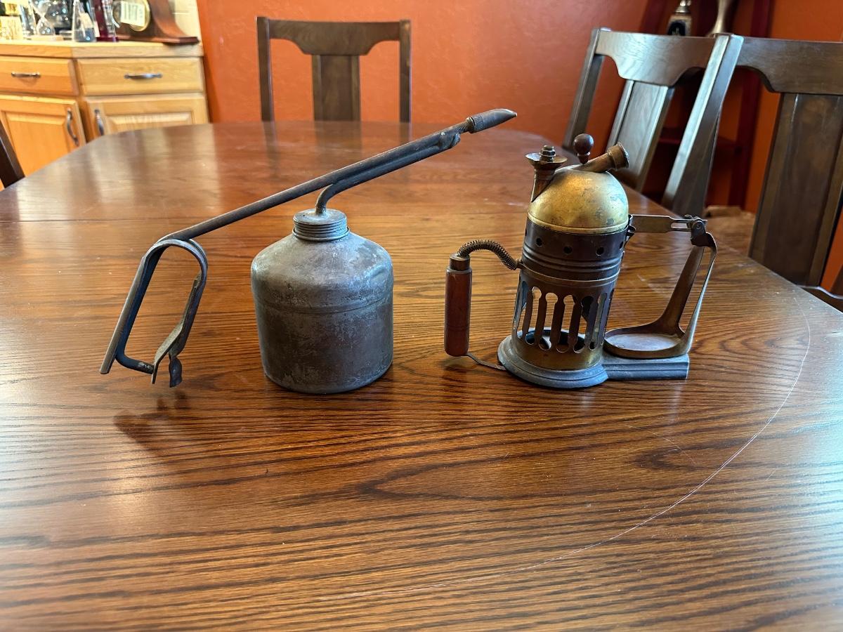 ANTIQUE STEAM ATOMIZER AND A VINTAGE PUMP OIL CAN