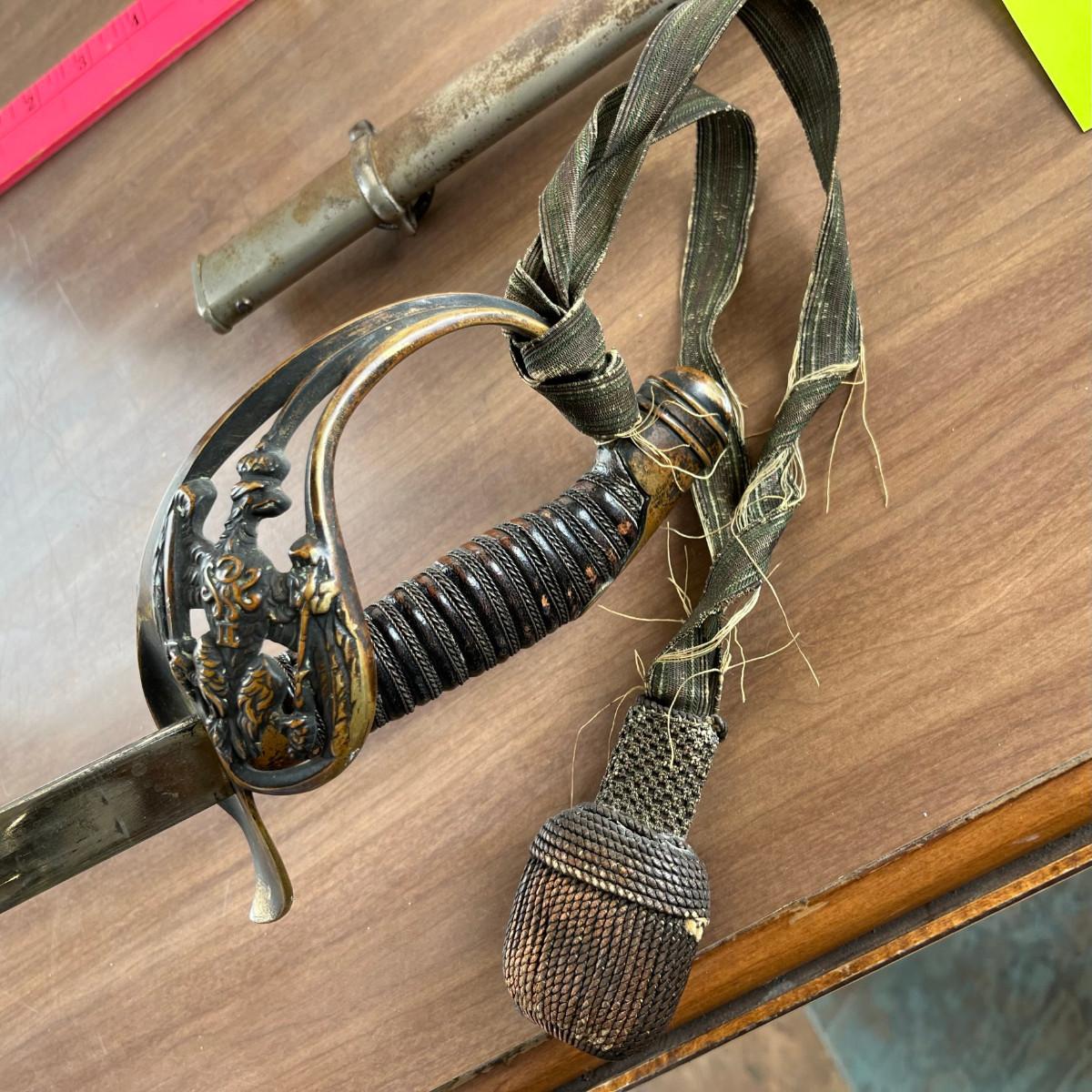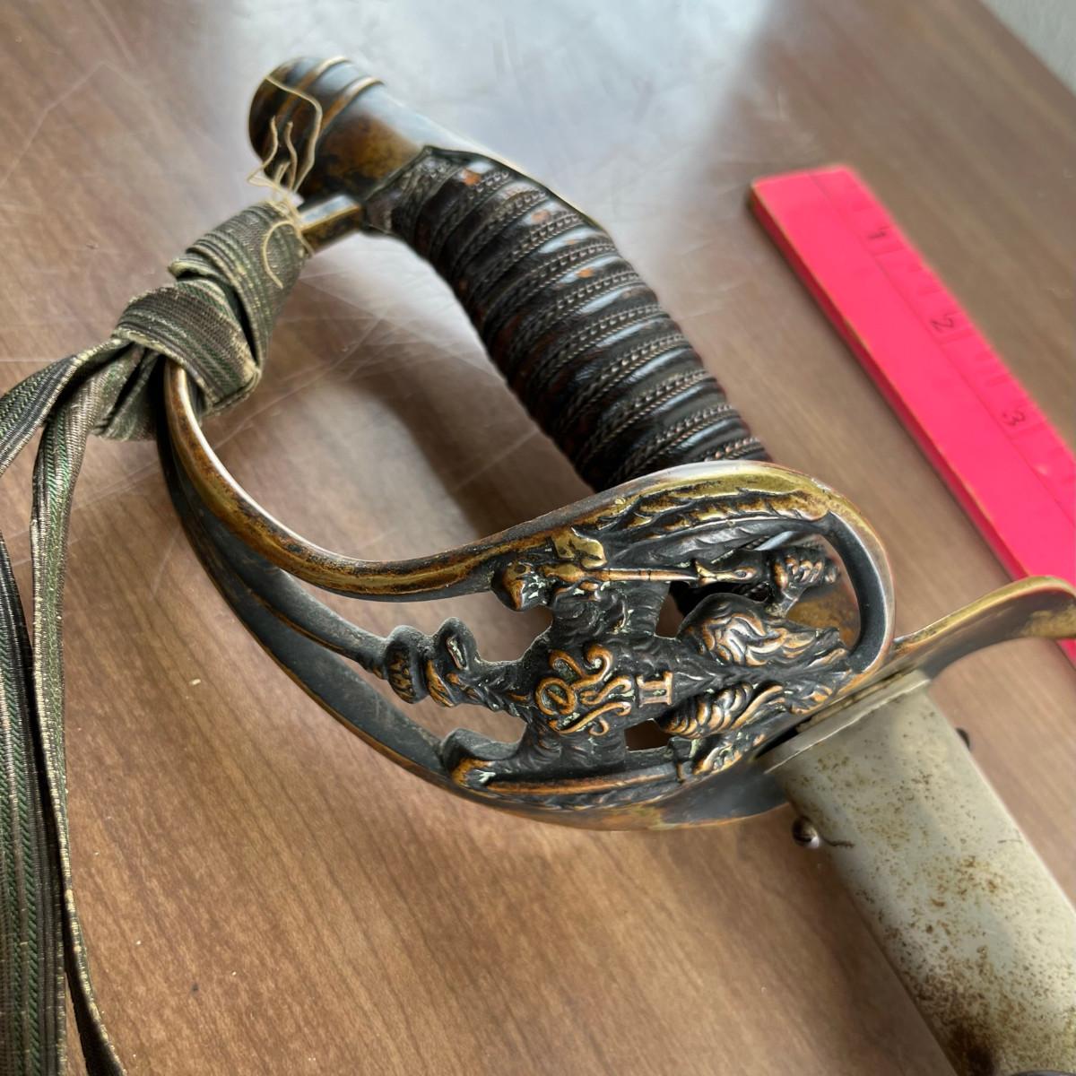This is an officer's sword. It is a Prussian / German. The double fisted eagle is on the hand guard.