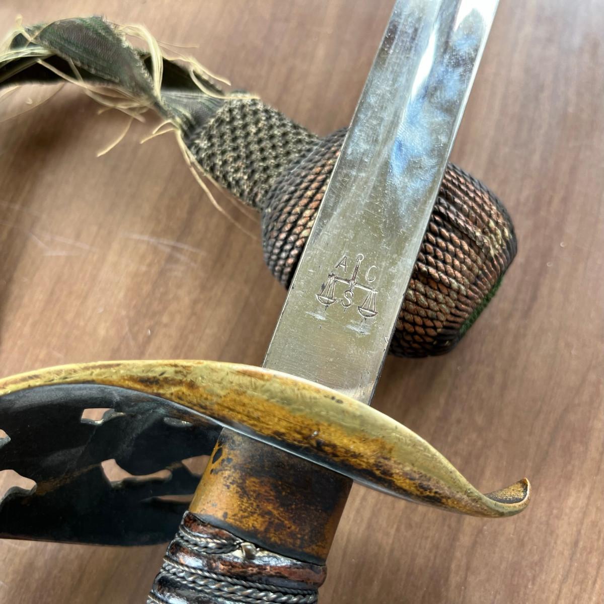 were mostly damaged. This one is in good shape. The scabbard has some rust/ wear. The sword and portepee are in very nice condition.
