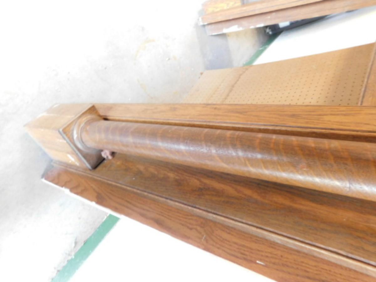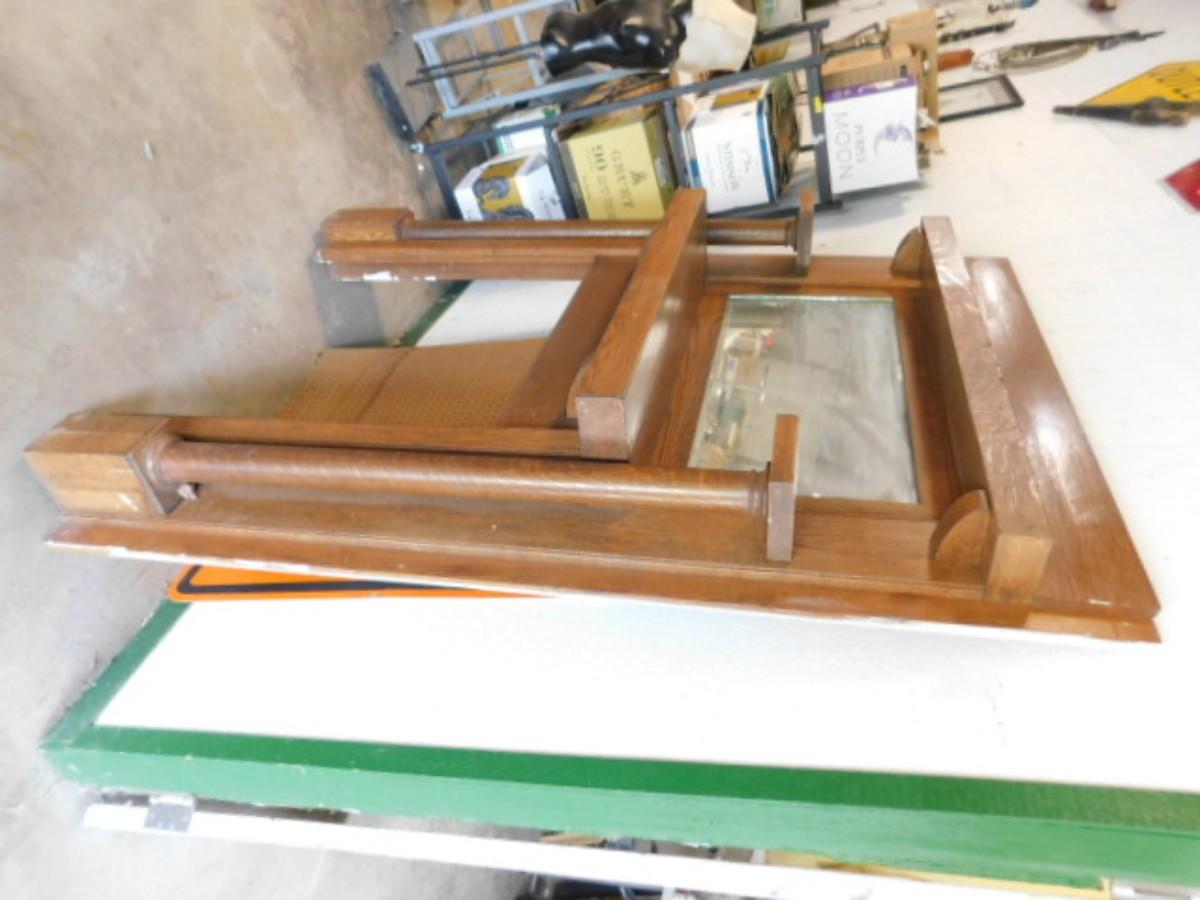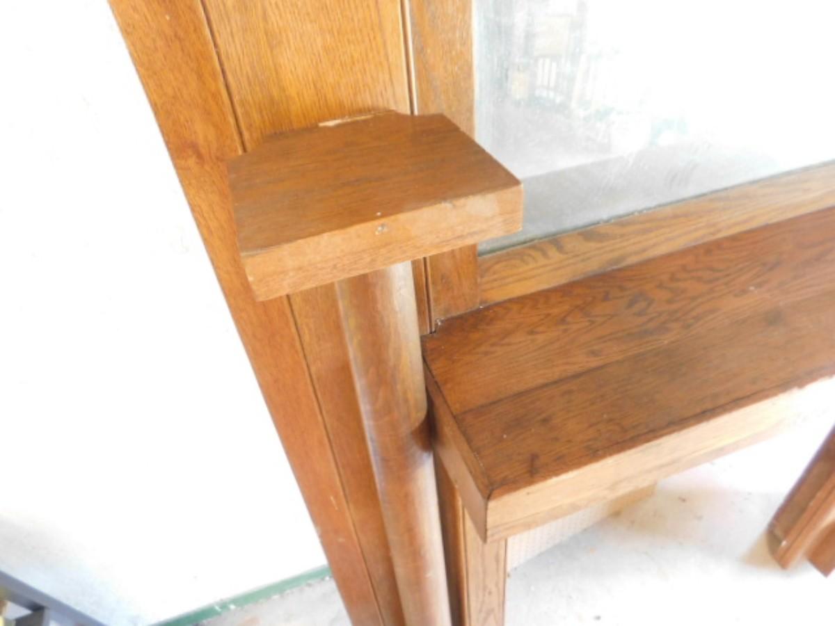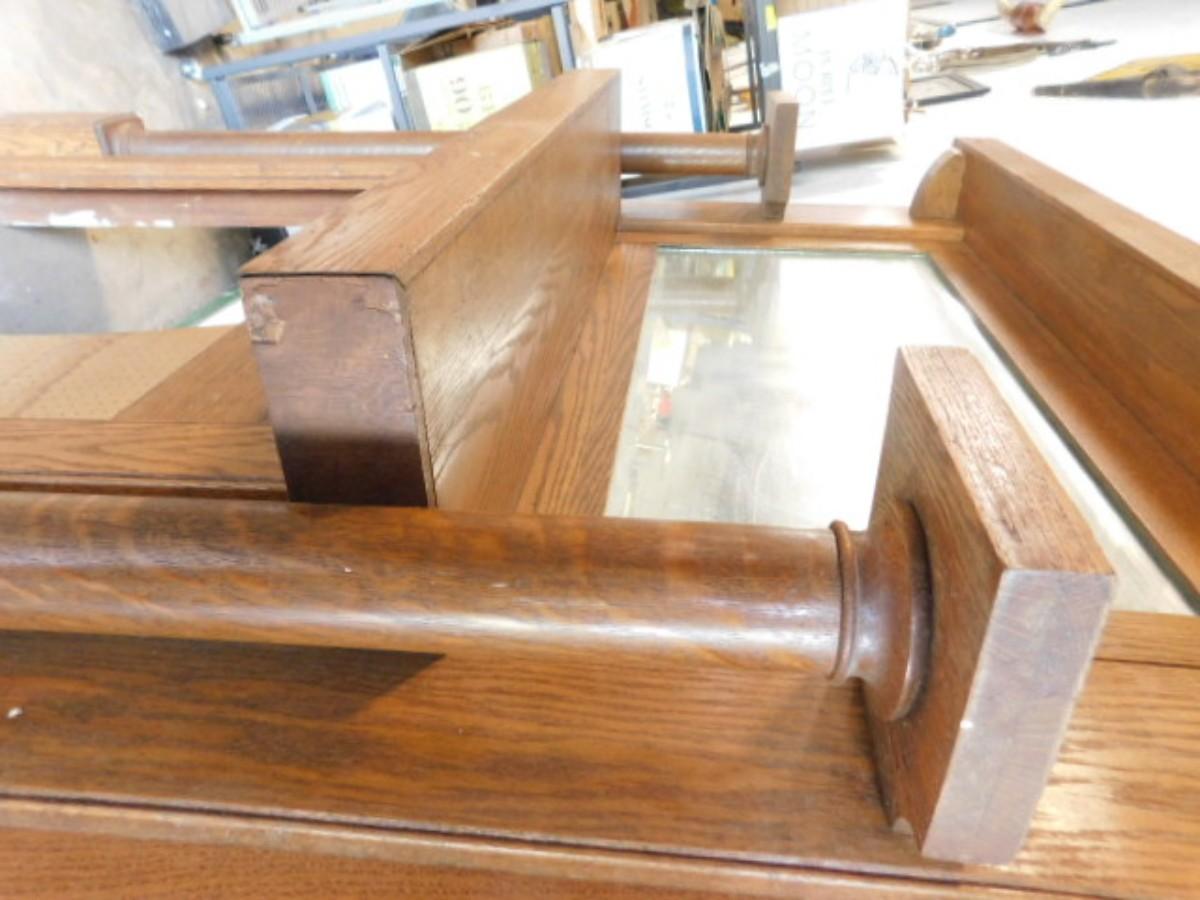 Antique Tiger Oak Mantle with Mirror has age-appropriate wear and scratches.