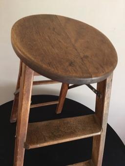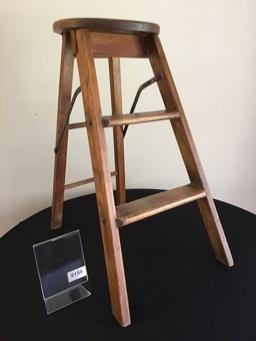 Antique Wooden Folding Step Stool/Ladder. One side has stripped the screws loose and will need a small repair. See pics