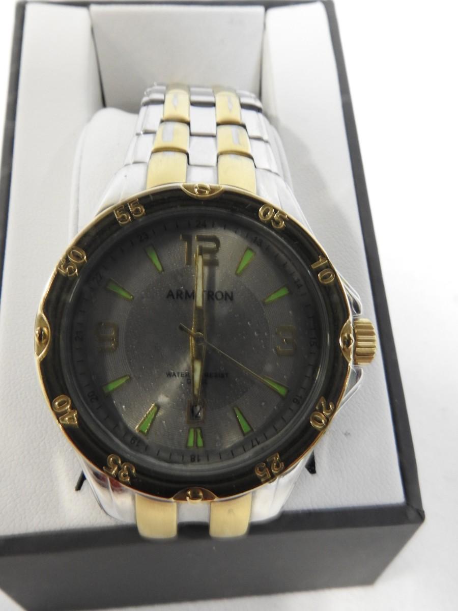 Armitron Mens Two-Tone Watch, Band Pin Is Missing, Appears To Have Moisture Inside-Untested