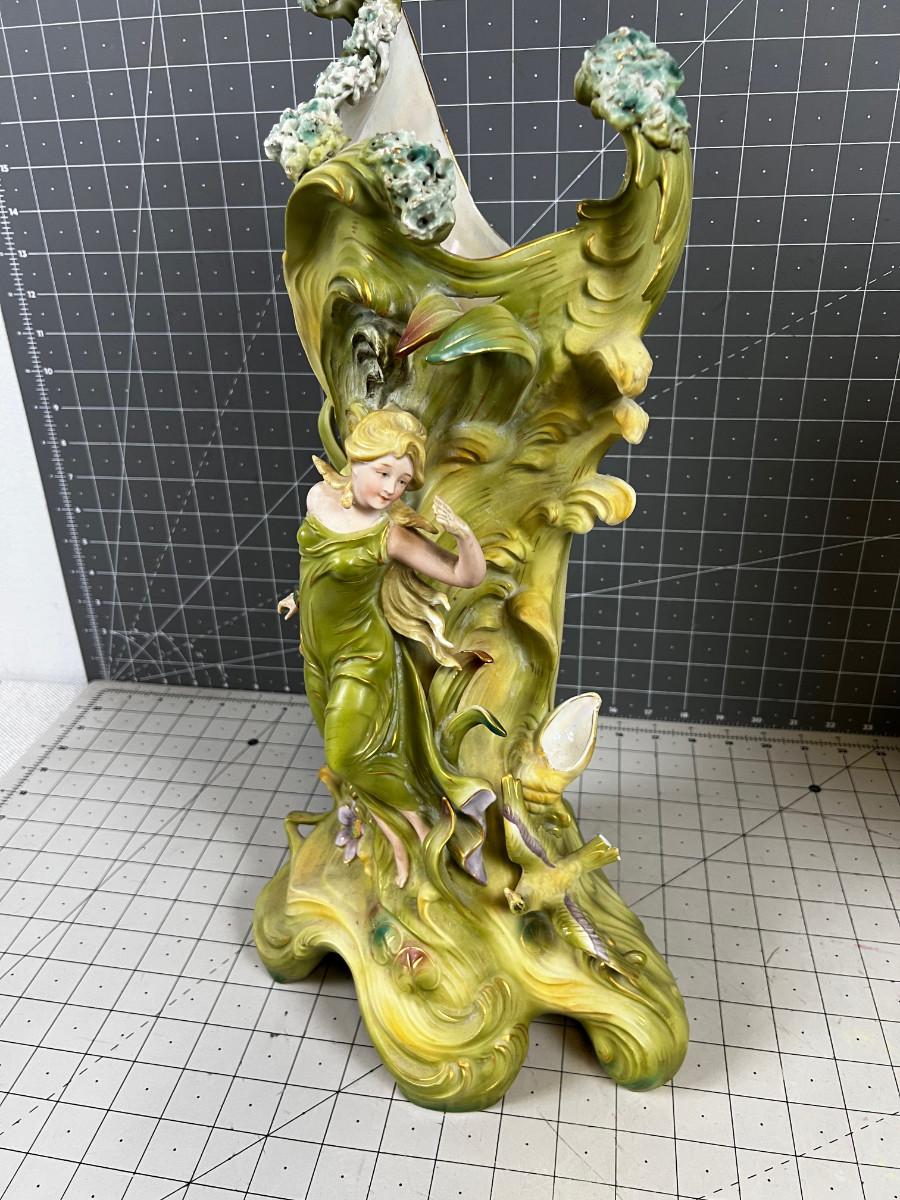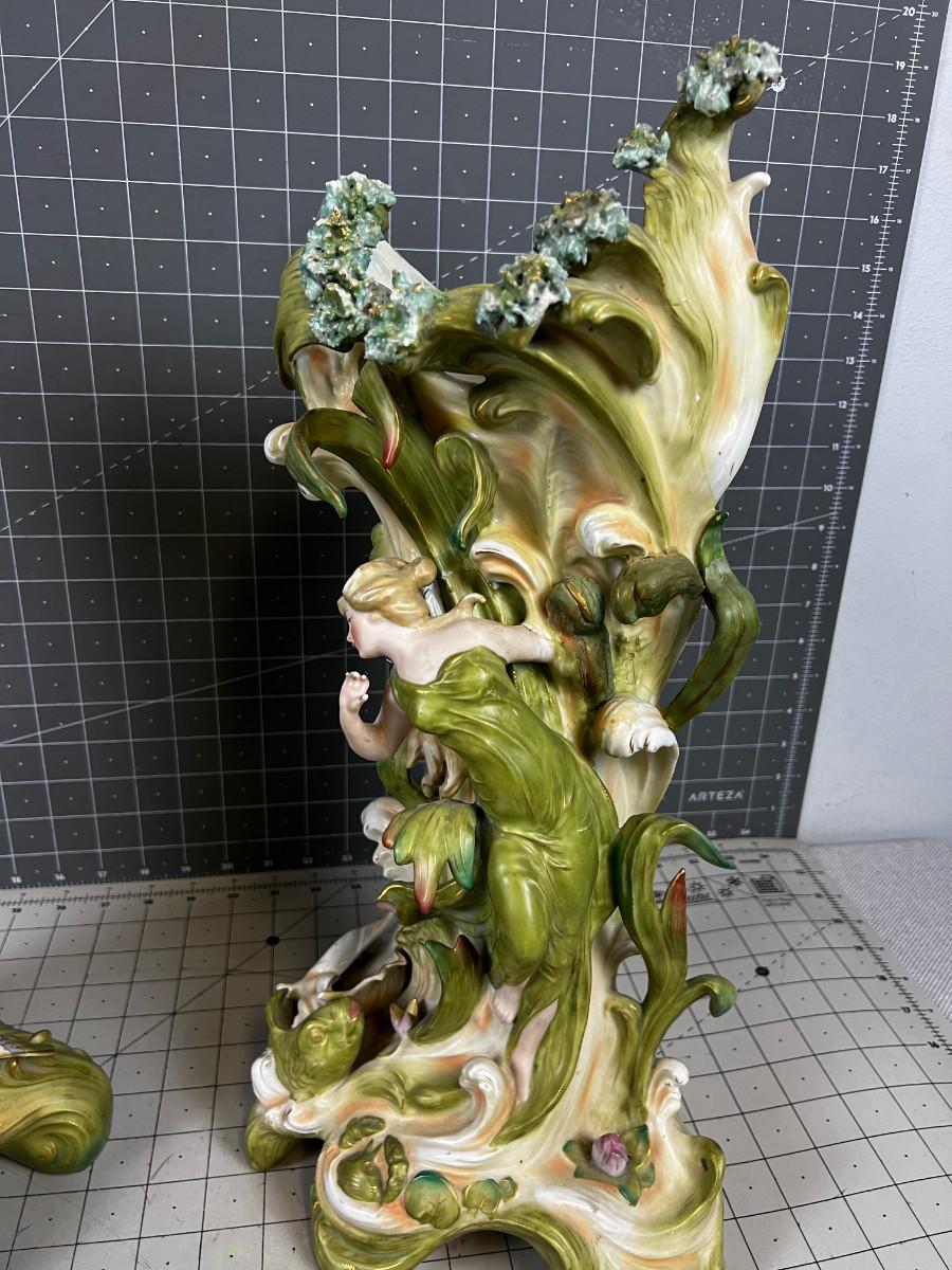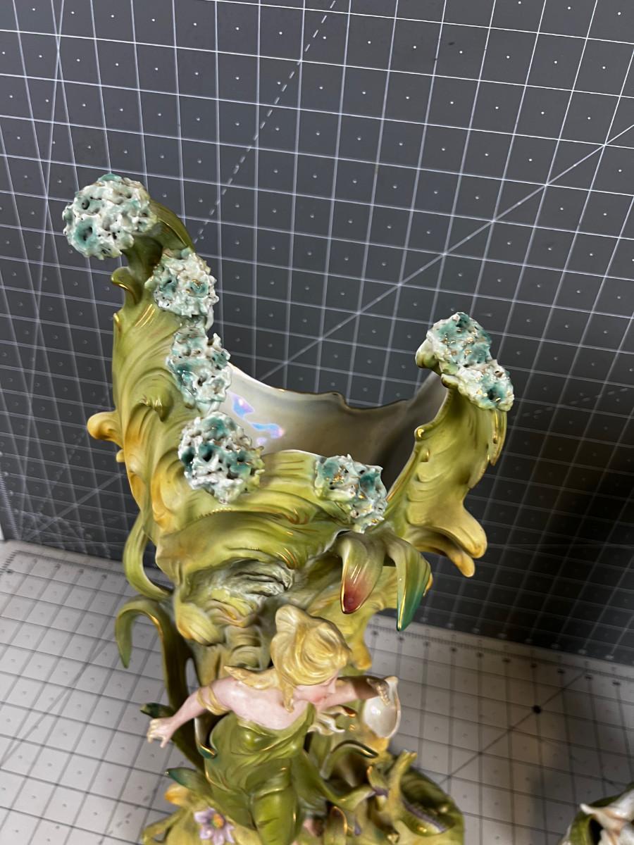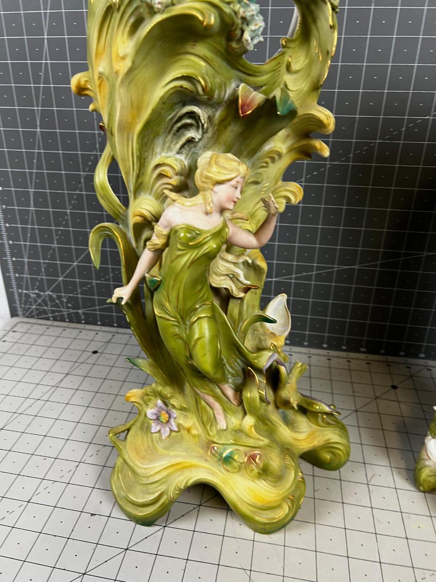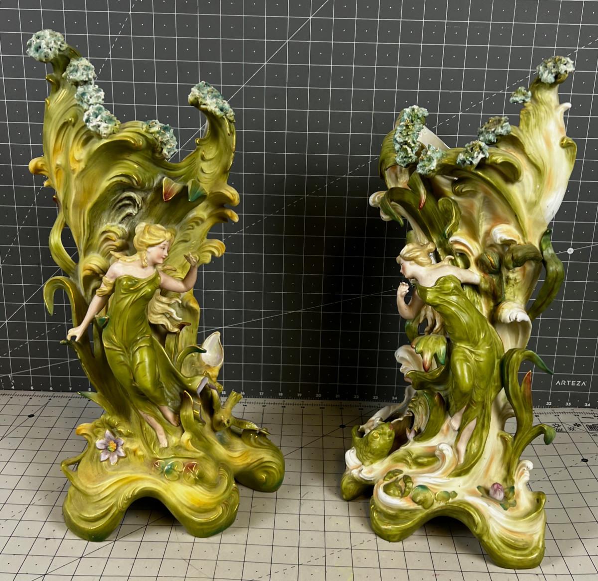 Art Nouveau Saxony Vase PAIR Green with Fabulous Ladies