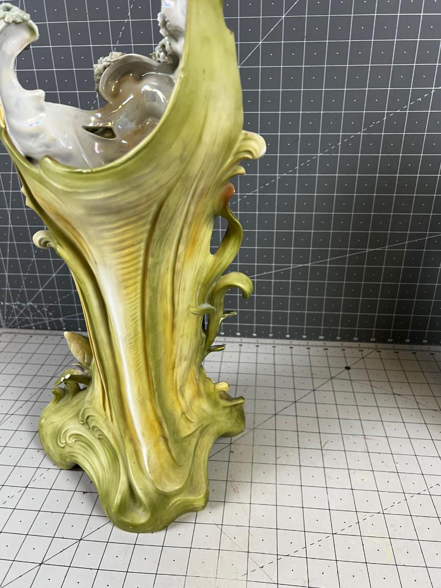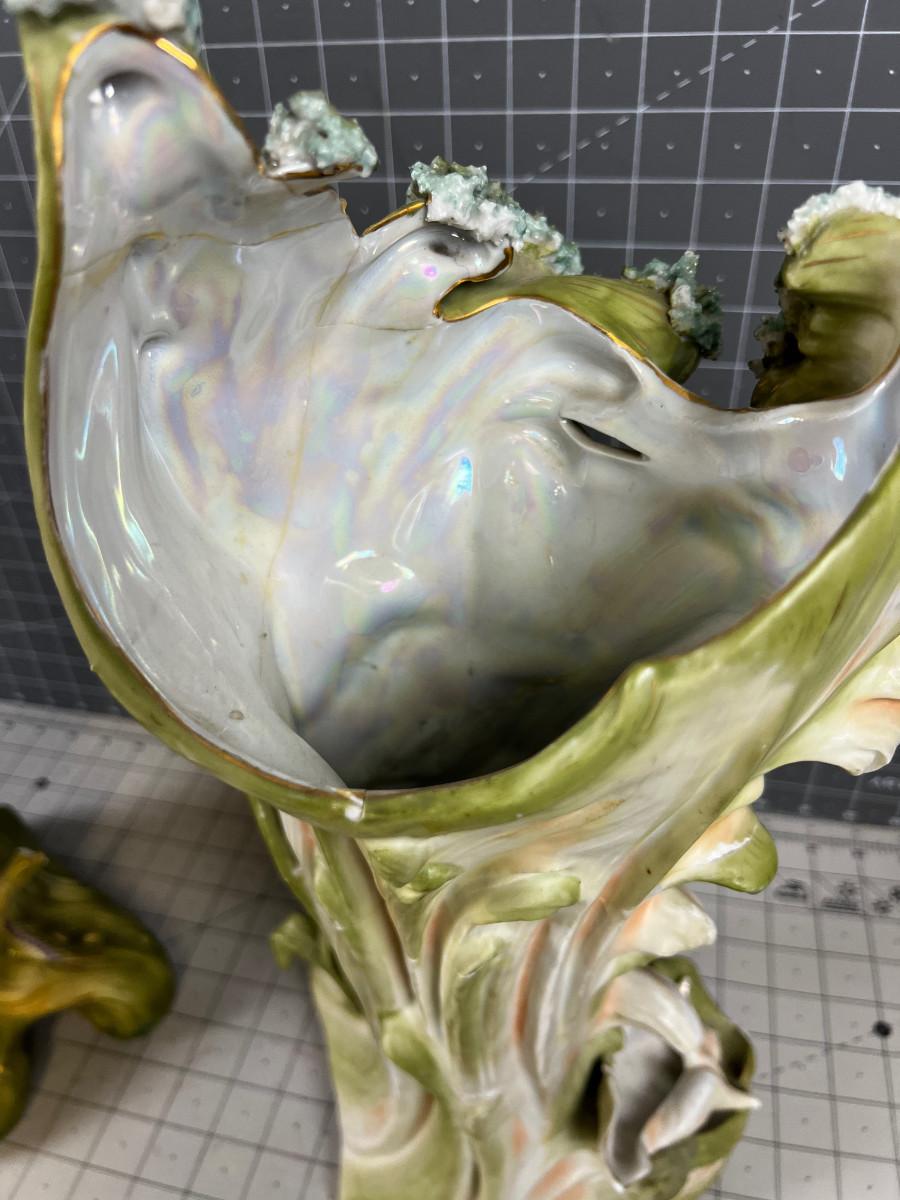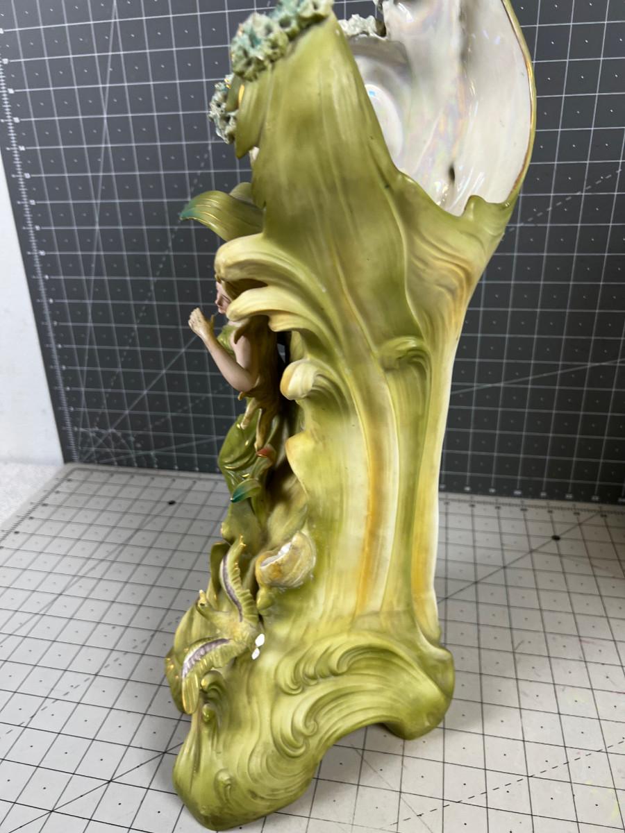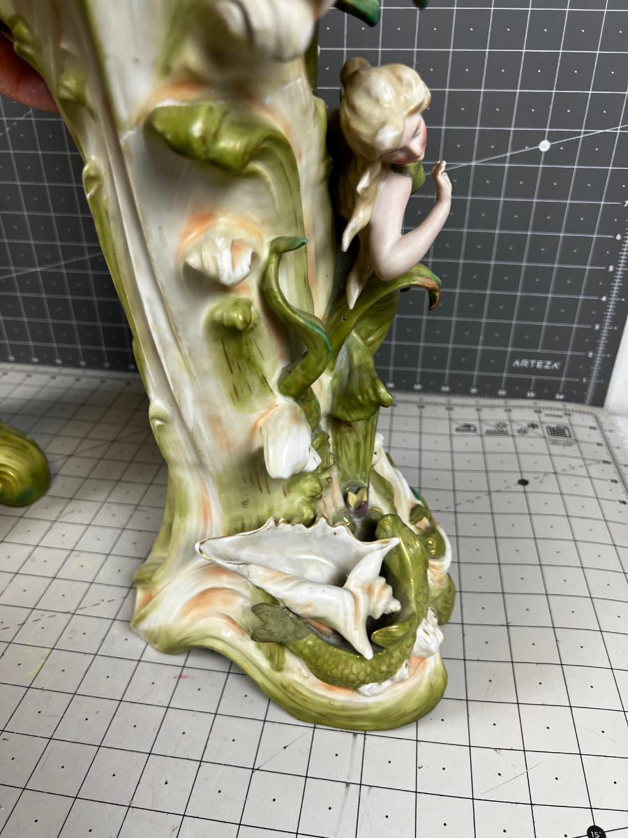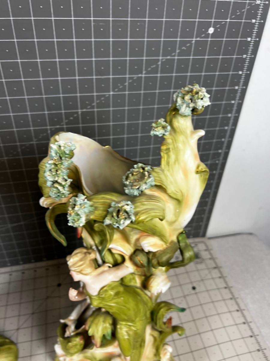 Art Nouveau Saxony Vase PAIR Green with Fabulous Ladies