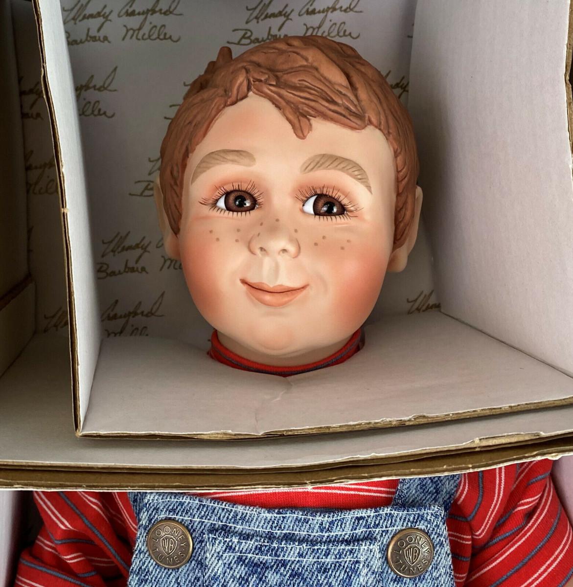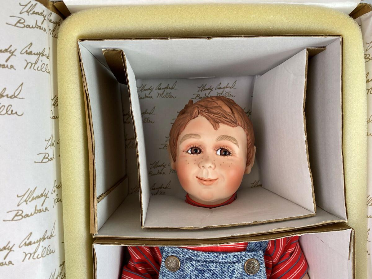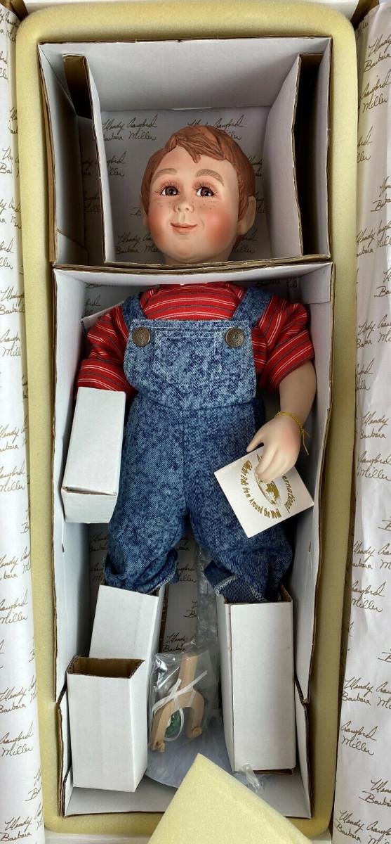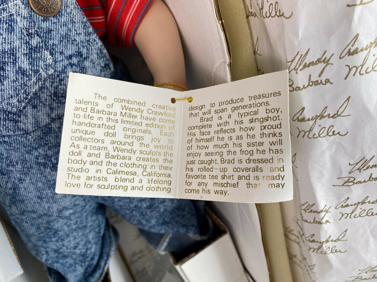 A rare Brad Limited Edition Exclusive Artist International Porcelain Collectible 20" Doll created by Wendy Crawford and Barbara Miller..an original for World Gallery of Dolls & Collectibles...Brad is described as a typical boy complete with his slingshot...New in box...