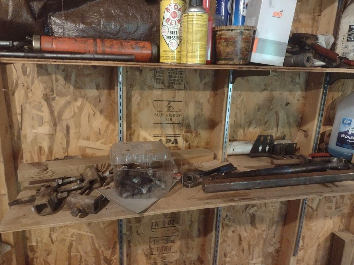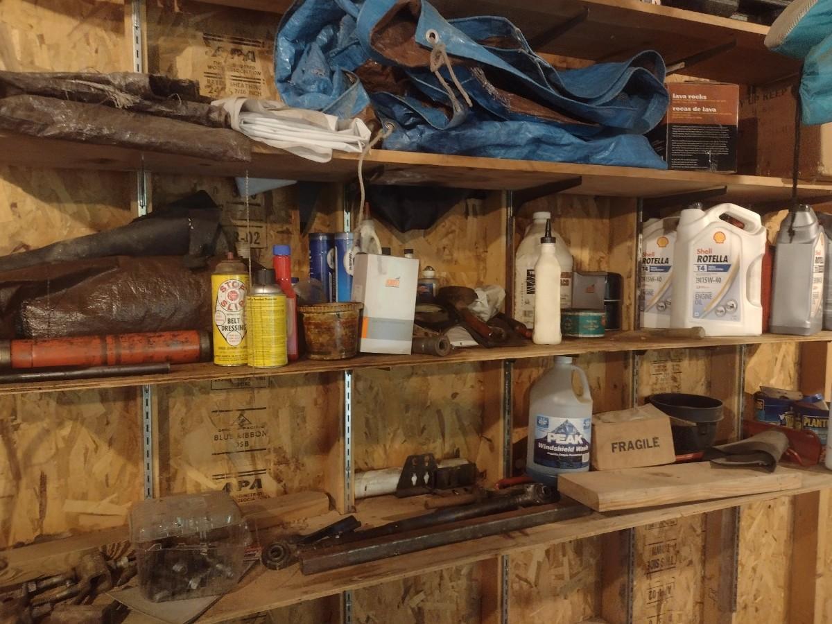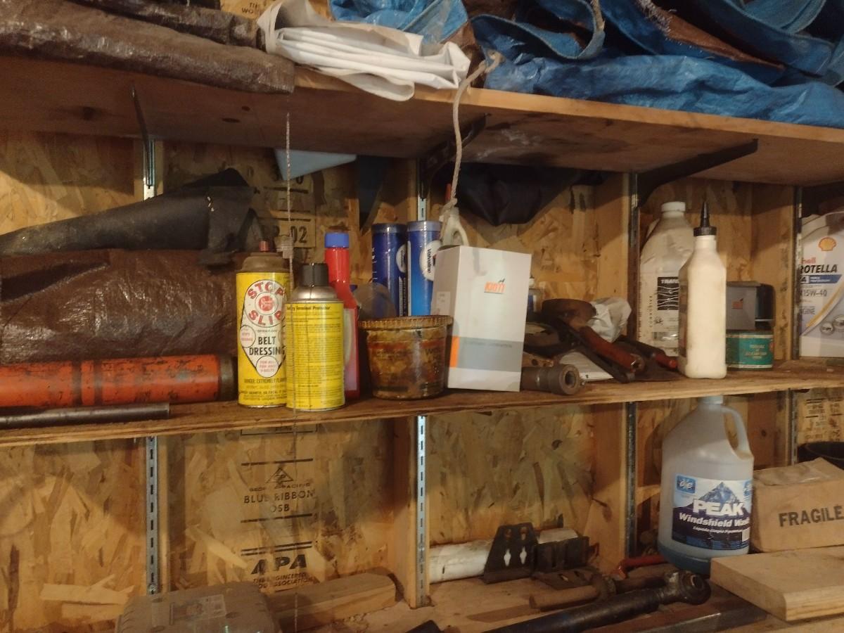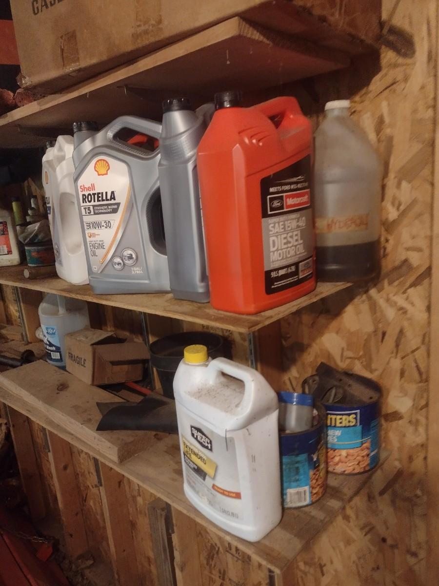 Assortment of Shop Accessories and Oil (Shelves not included)