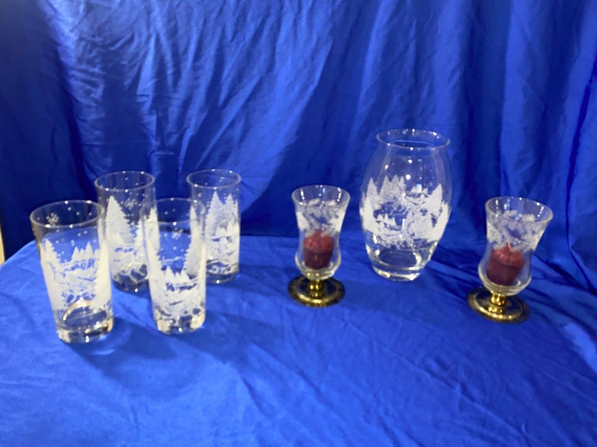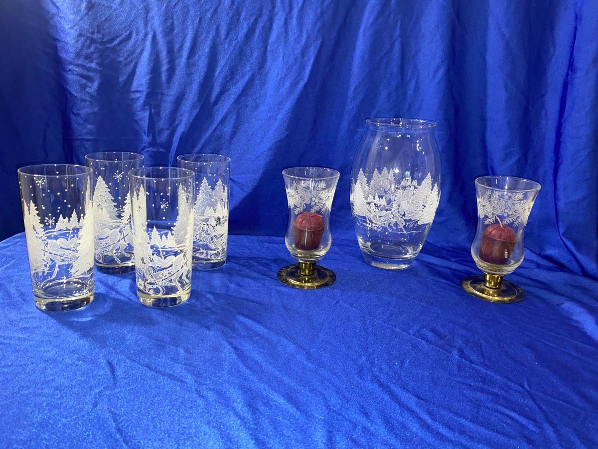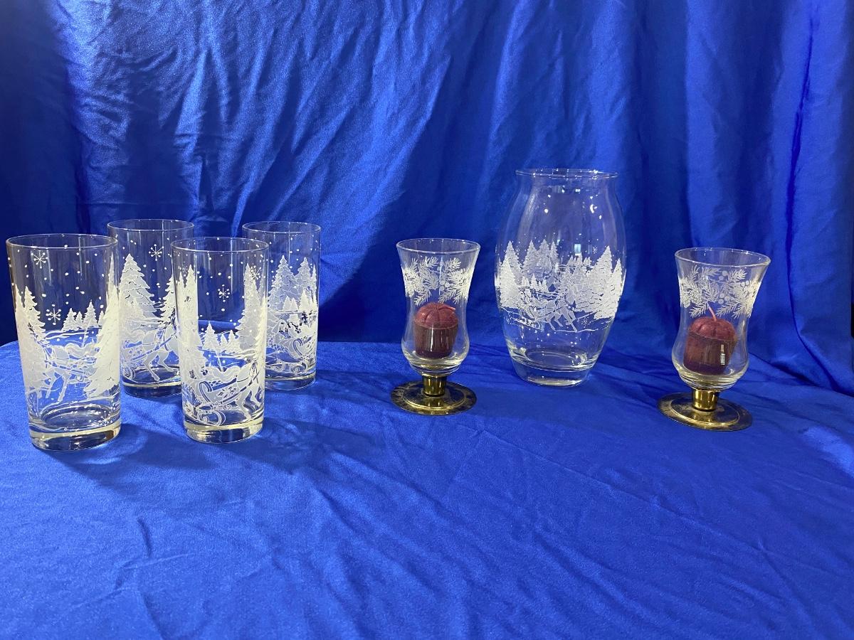 AVON’S LUMINARC WINTER SLEIGH RIDE VASE AND TUMBLERS