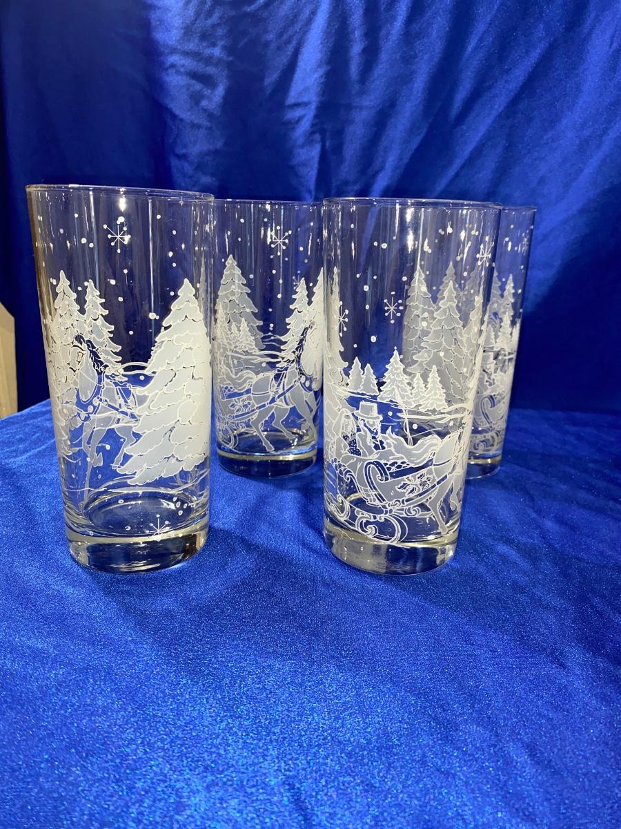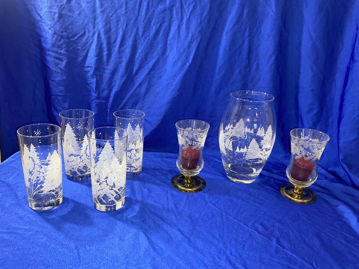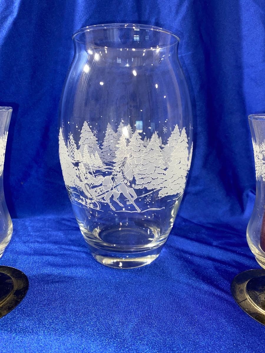 AVON’S LUMINARC WINTER SLEIGH RIDE VASE AND TUMBLERS